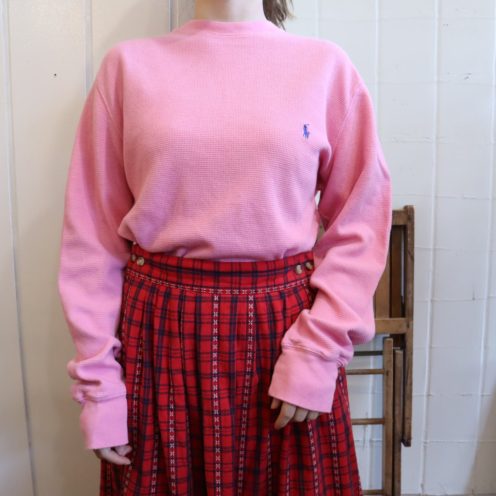 パキっと明るいピンクが可愛いラルフローレンのサーマルトップス。