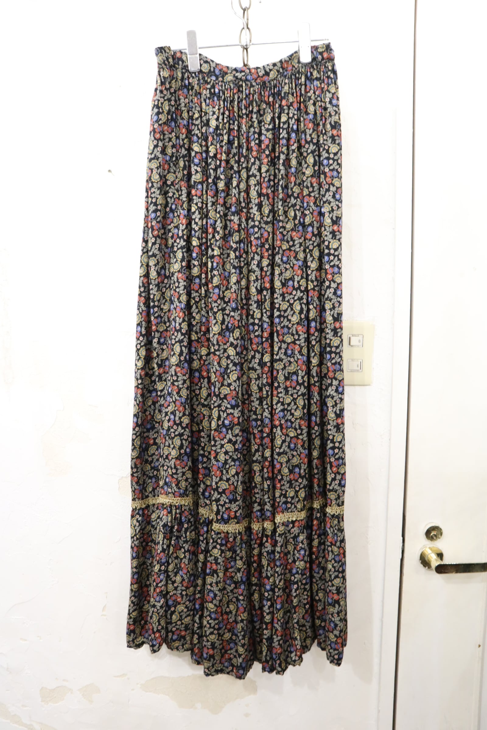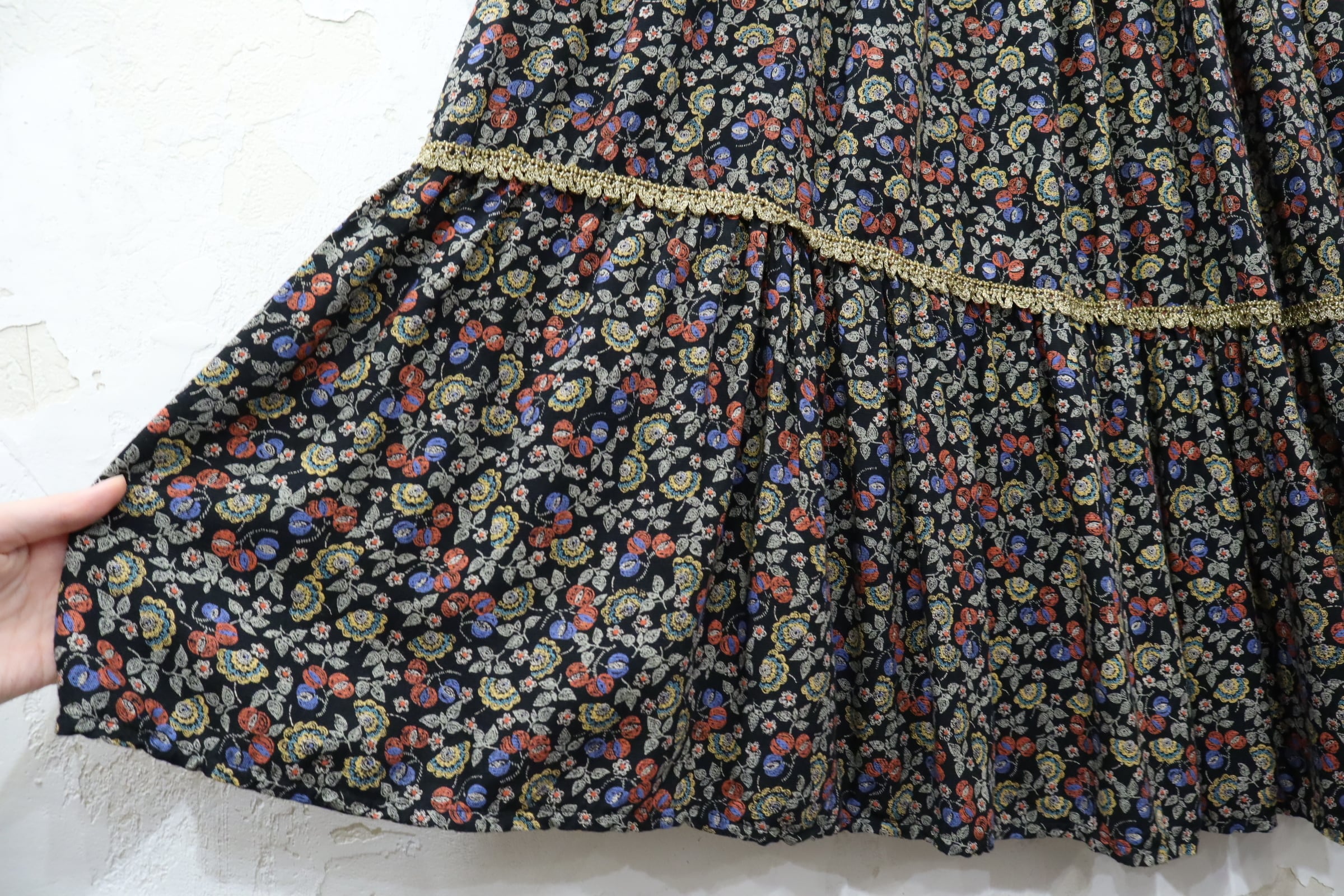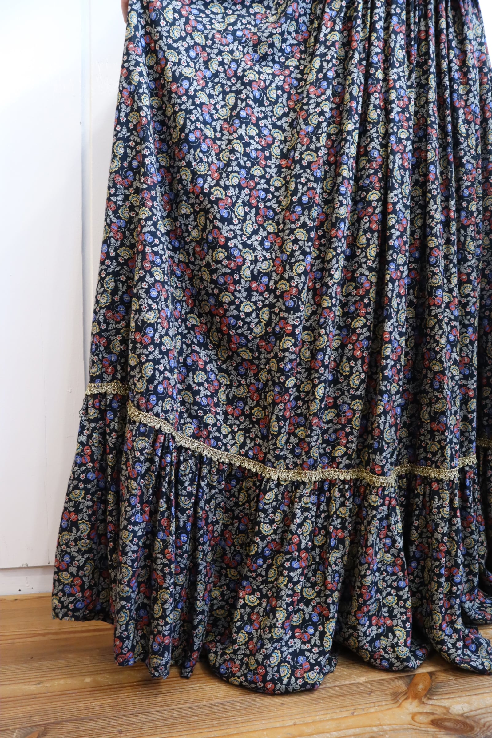 black×colorful×gold flower pattern long skirt [l-4174]