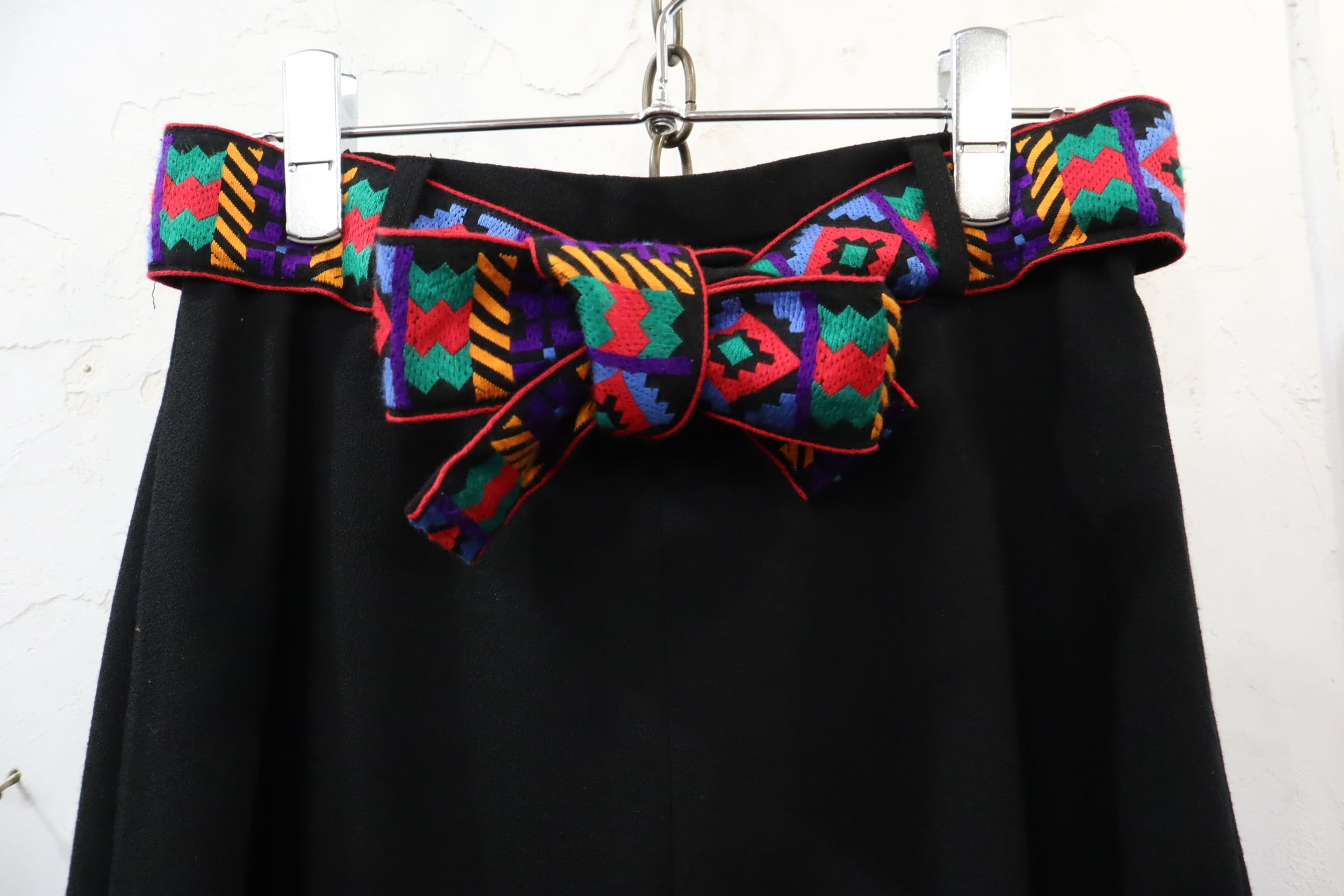black×colorful embroidery design ribbon long skirt [l-4176]