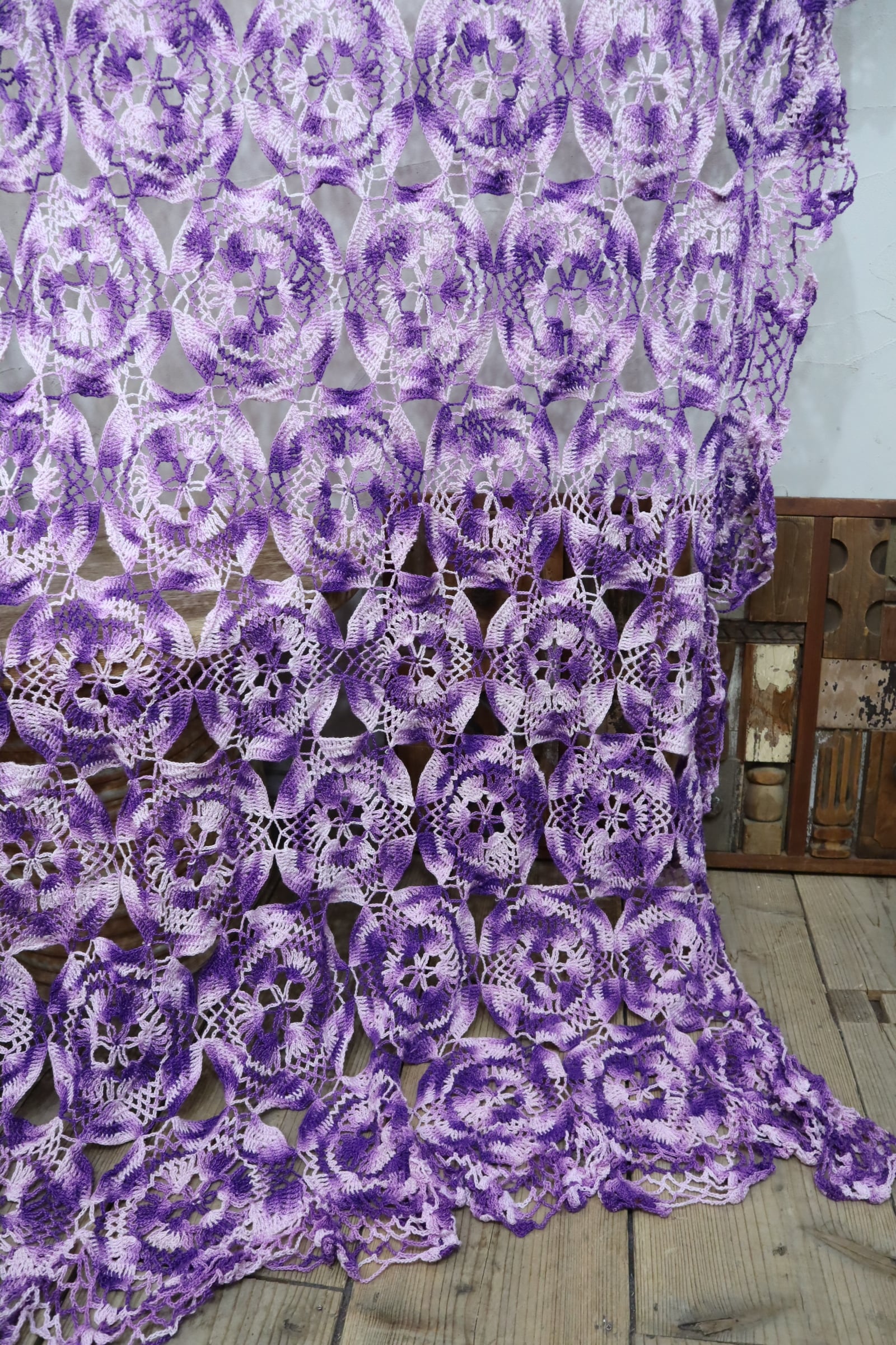 purple×pastelpurple granny crochet rug [l-4187]