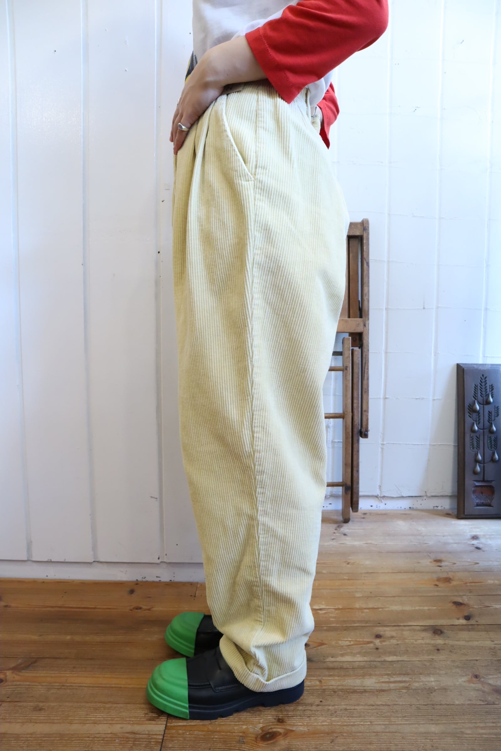 lightyellow plain corduroy pants [k-4189]