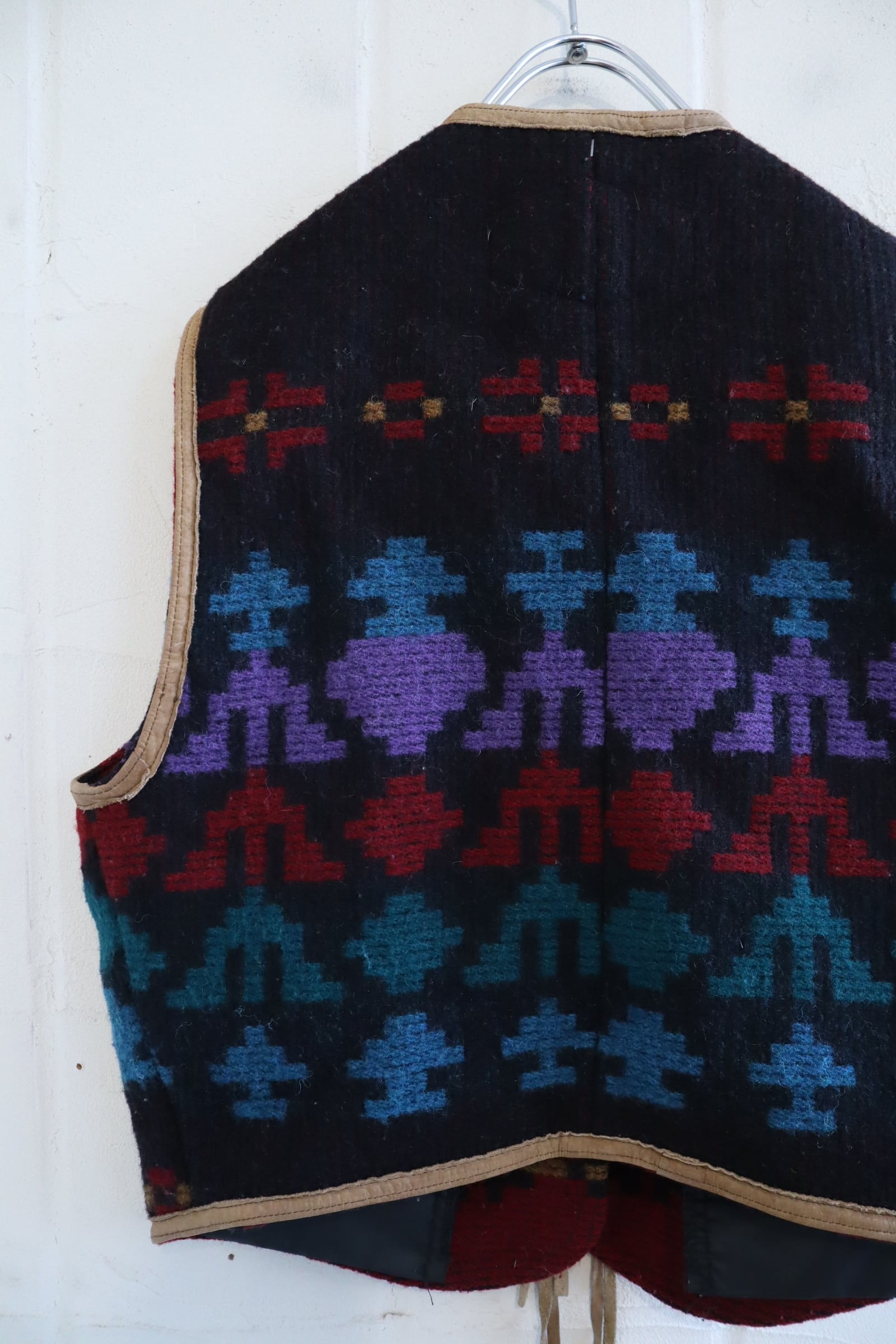 カラーリングや幾何学柄が素敵な80sウールベスト*