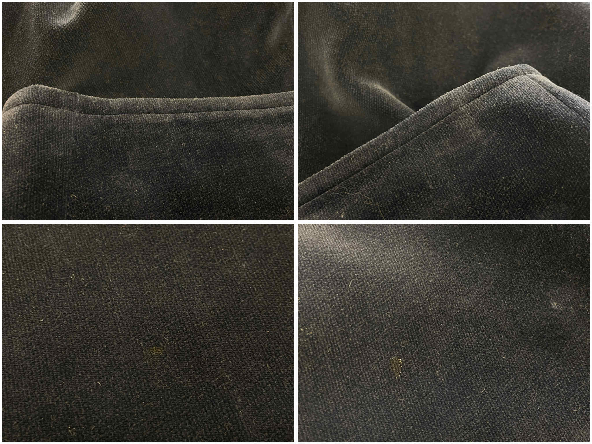 ウエストに若干ハンガーの跡、いくつか小さな汚れがございますが、あまり気にならないかと思われます。