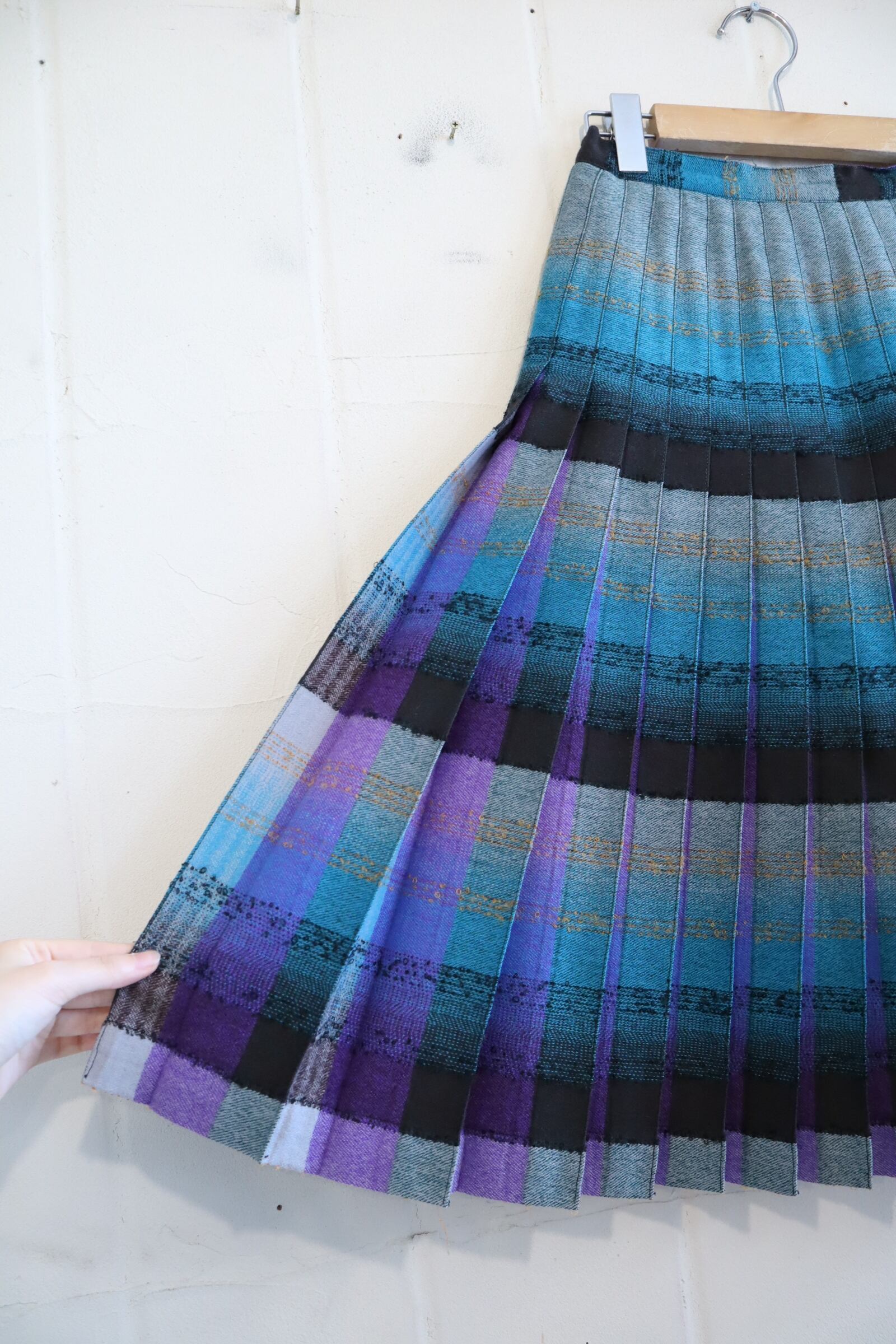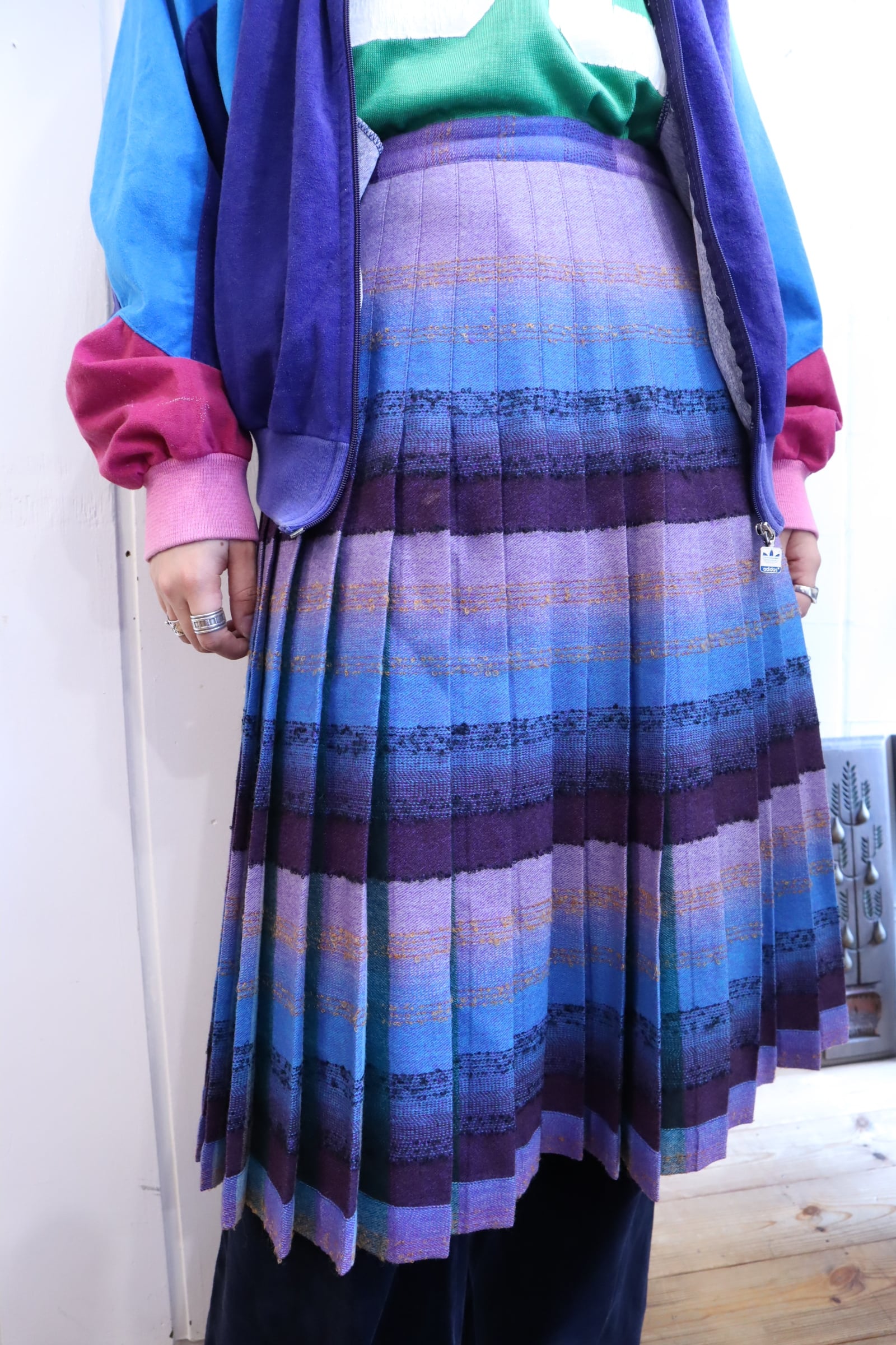 50s-60s blue×purple reversible pleats skirt [l-4204]