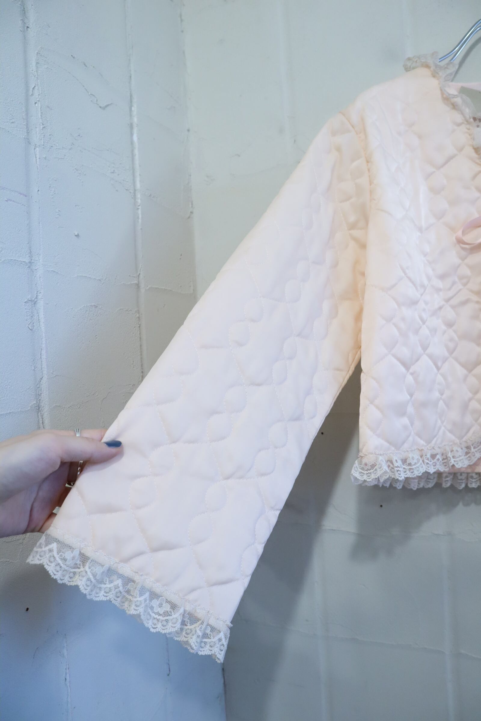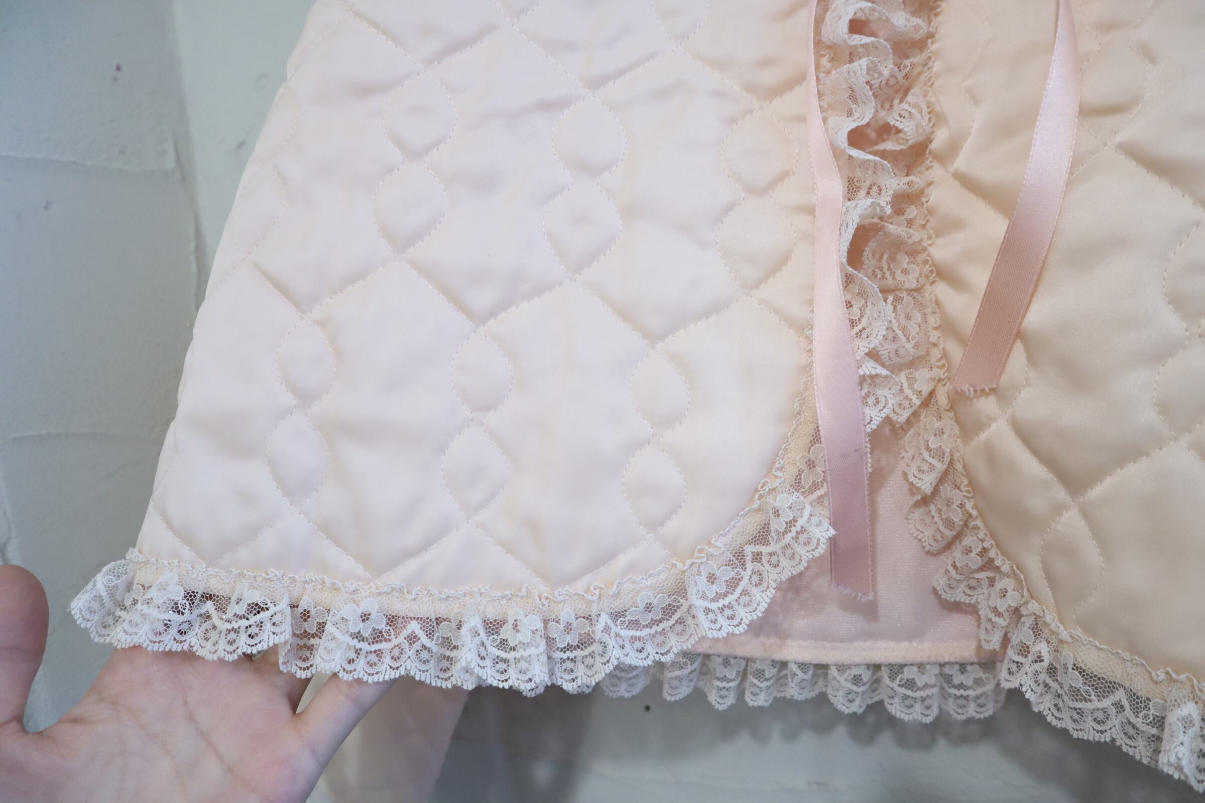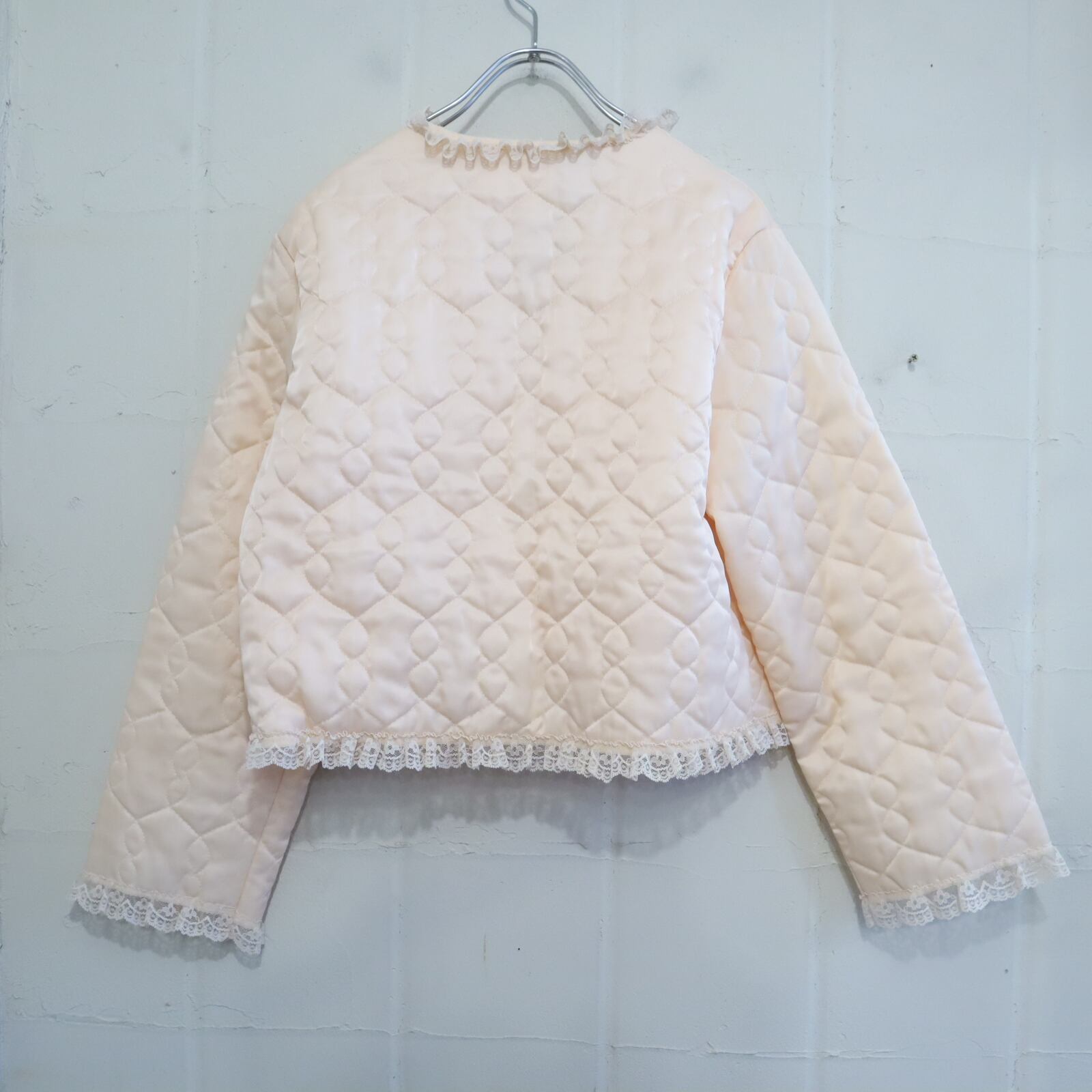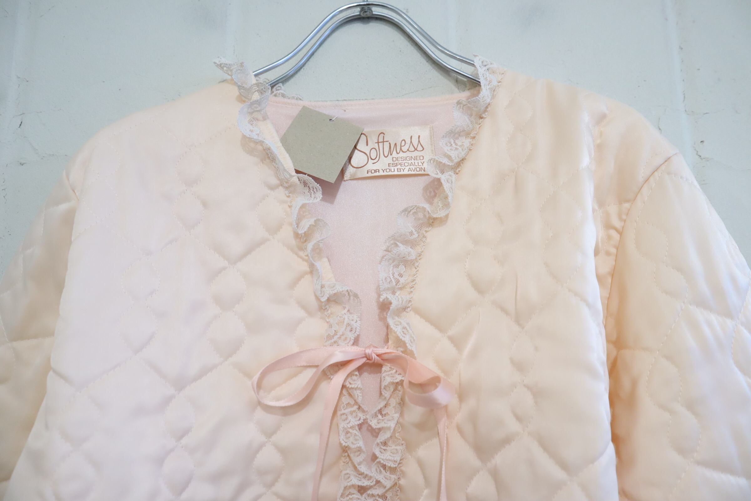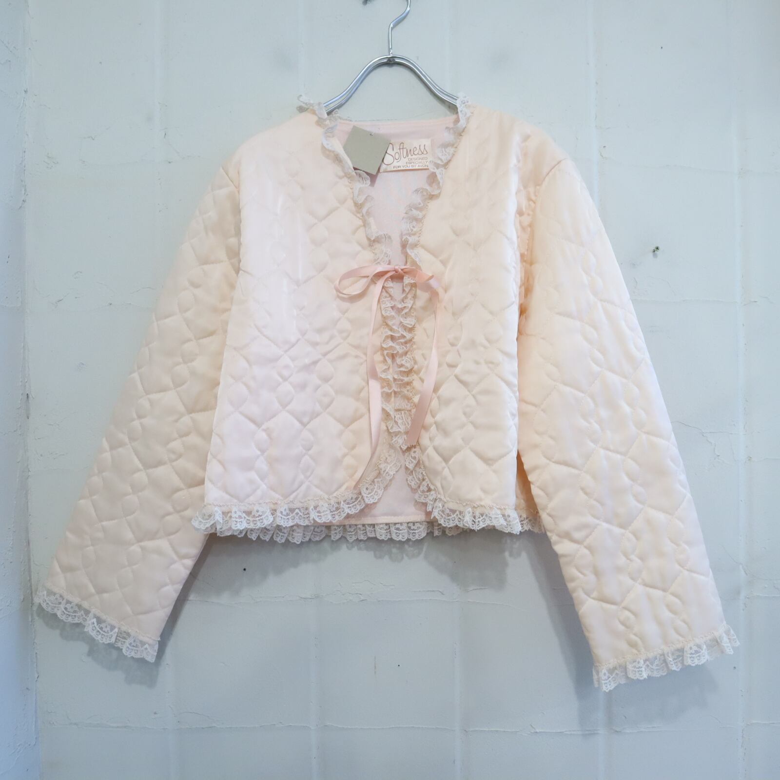 70s-80s babypink plain quilting bed jacket [l-4211]