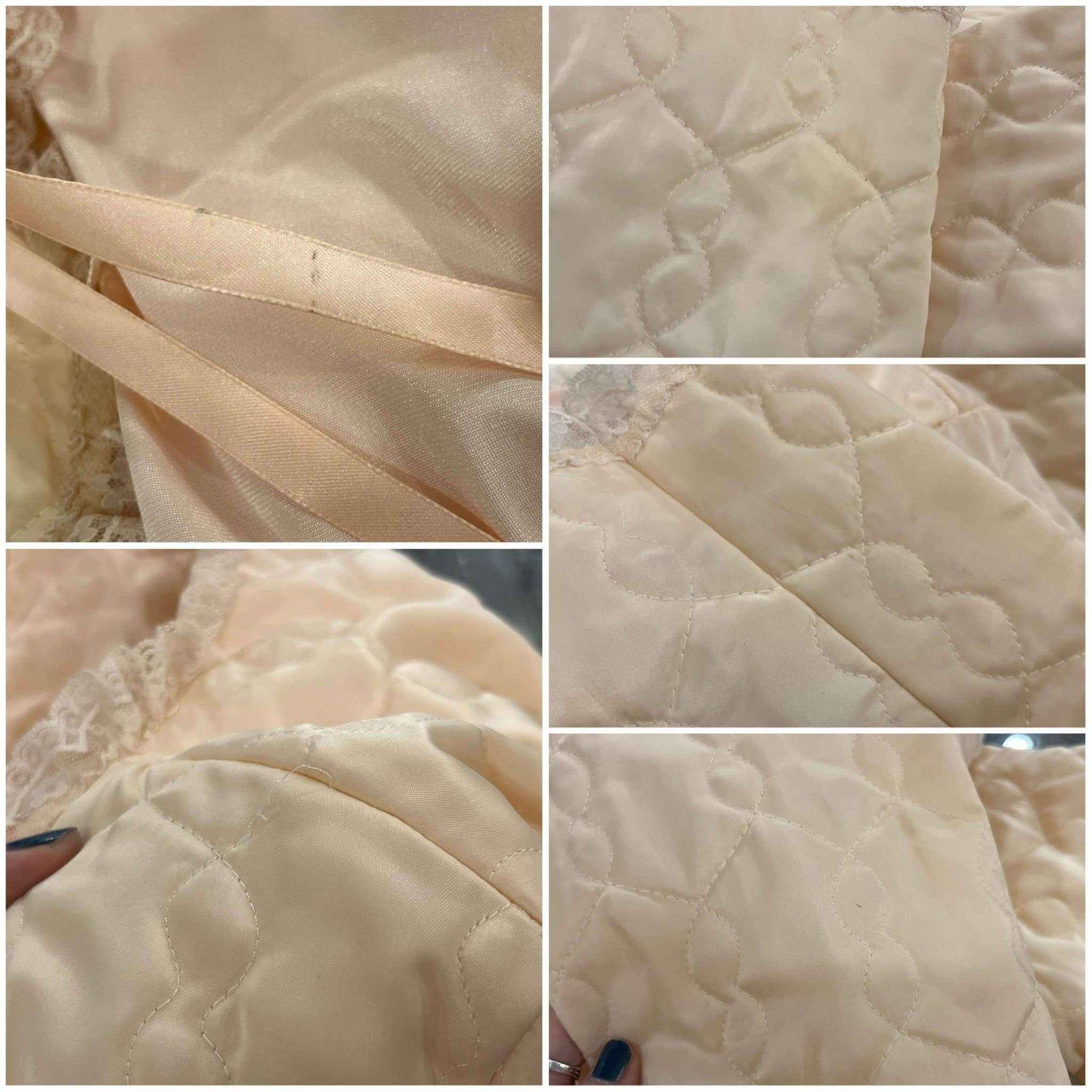 リボンや袖に汚れやうっすらとシミ、一部キルティング糸のホツレが見受けられますが、あまり気にならないかと思います。