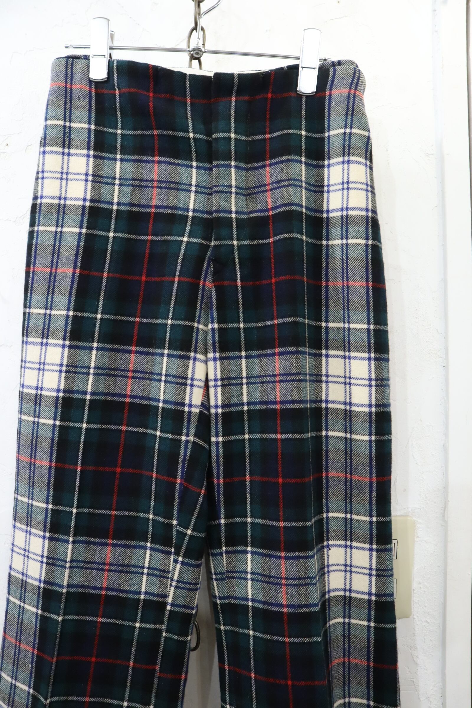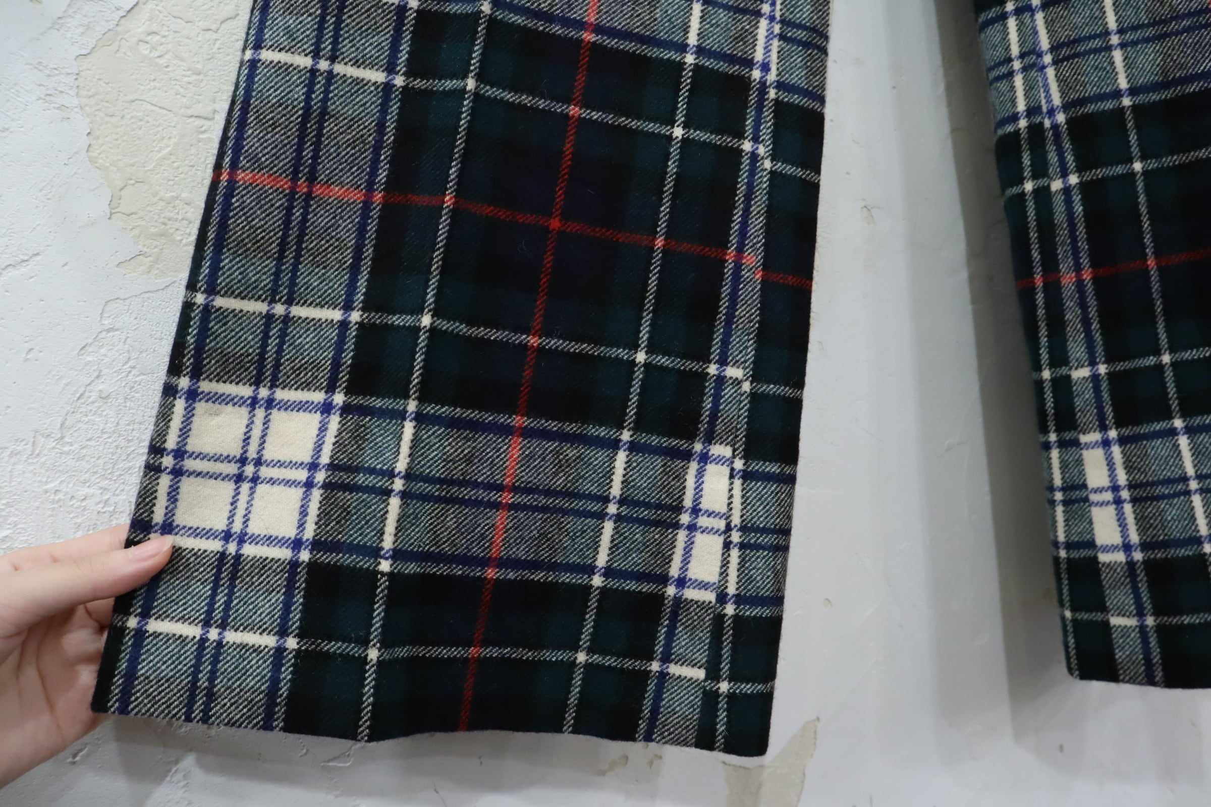 王道のダークグリーン×レッドのチェック柄が可愛いウールパンツ*
