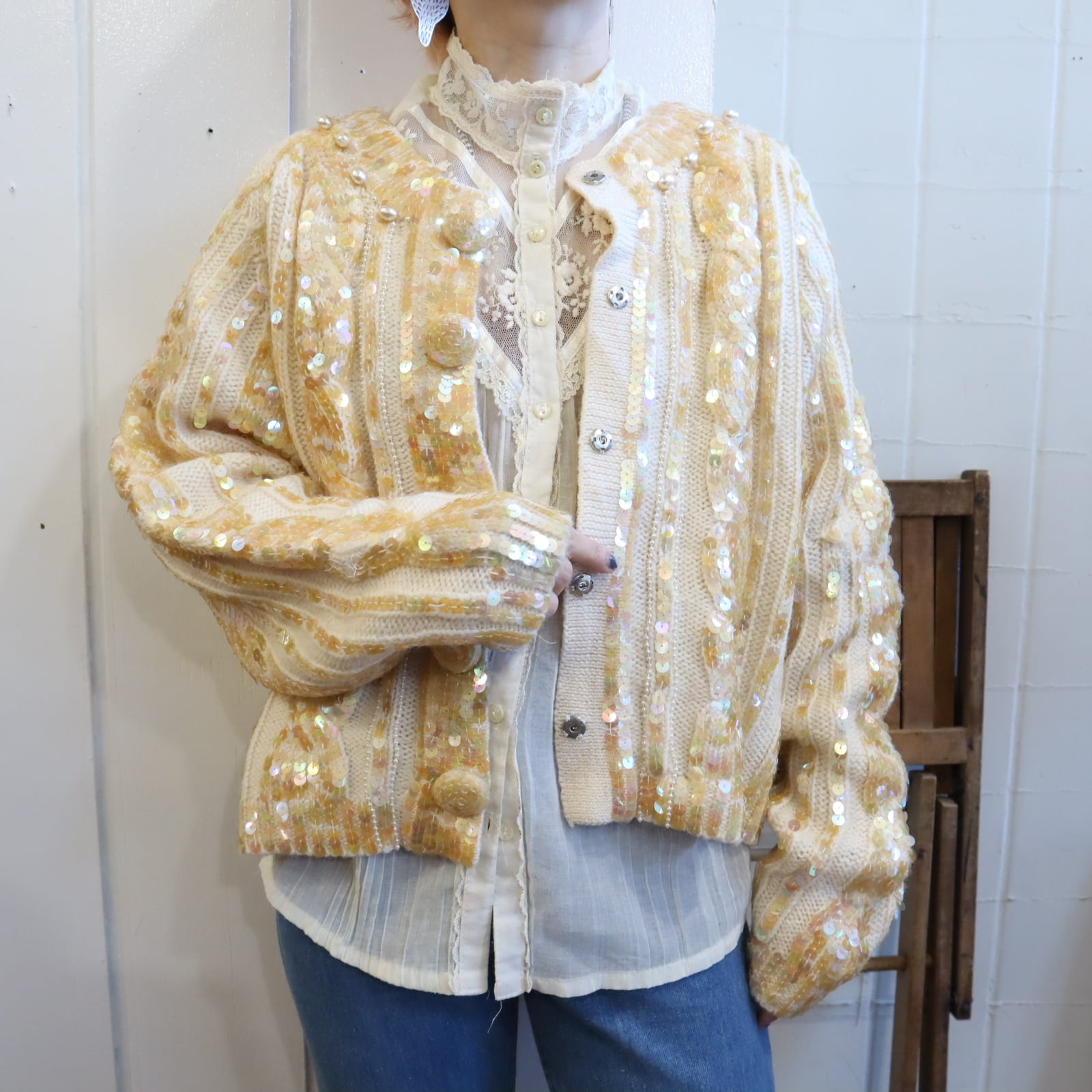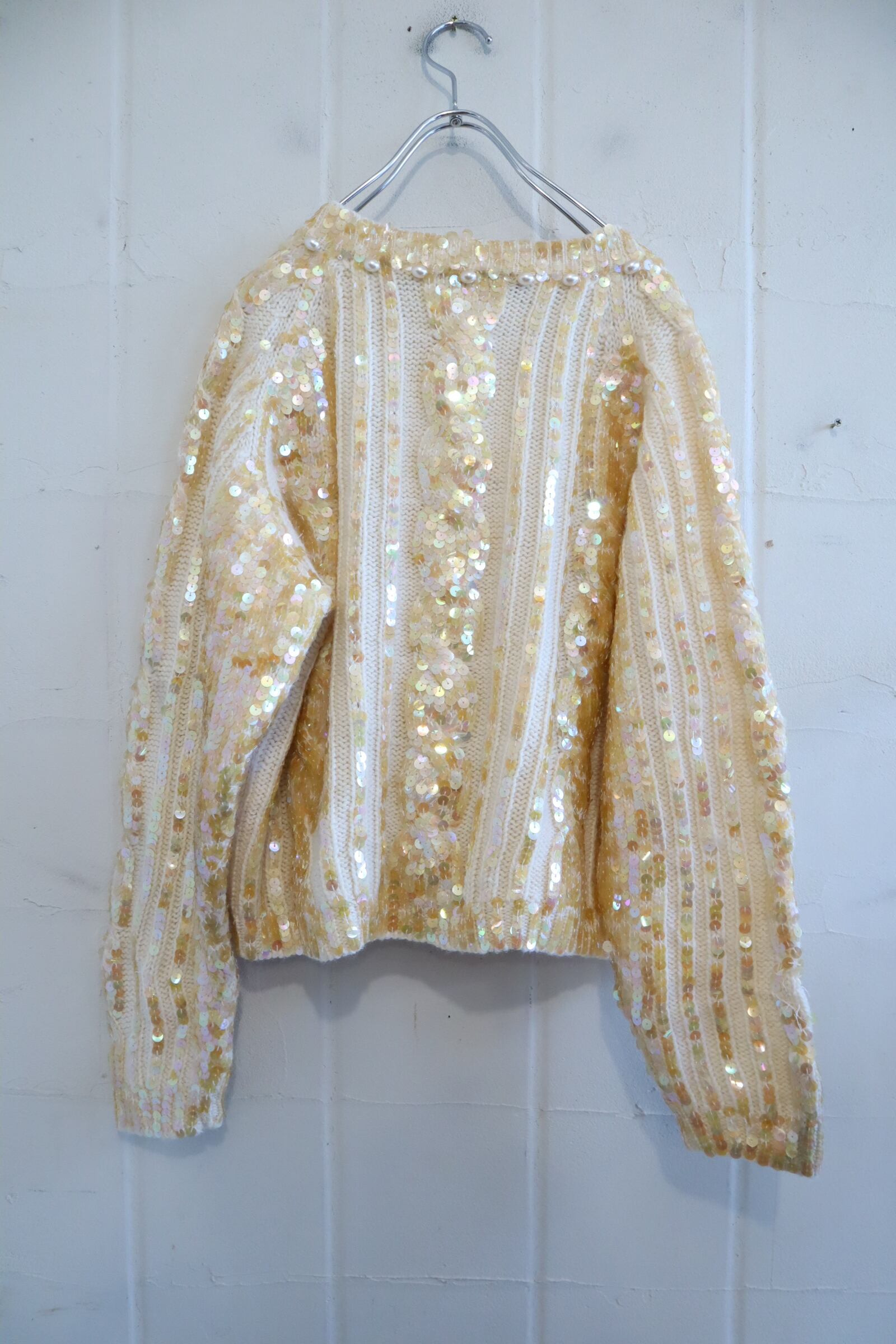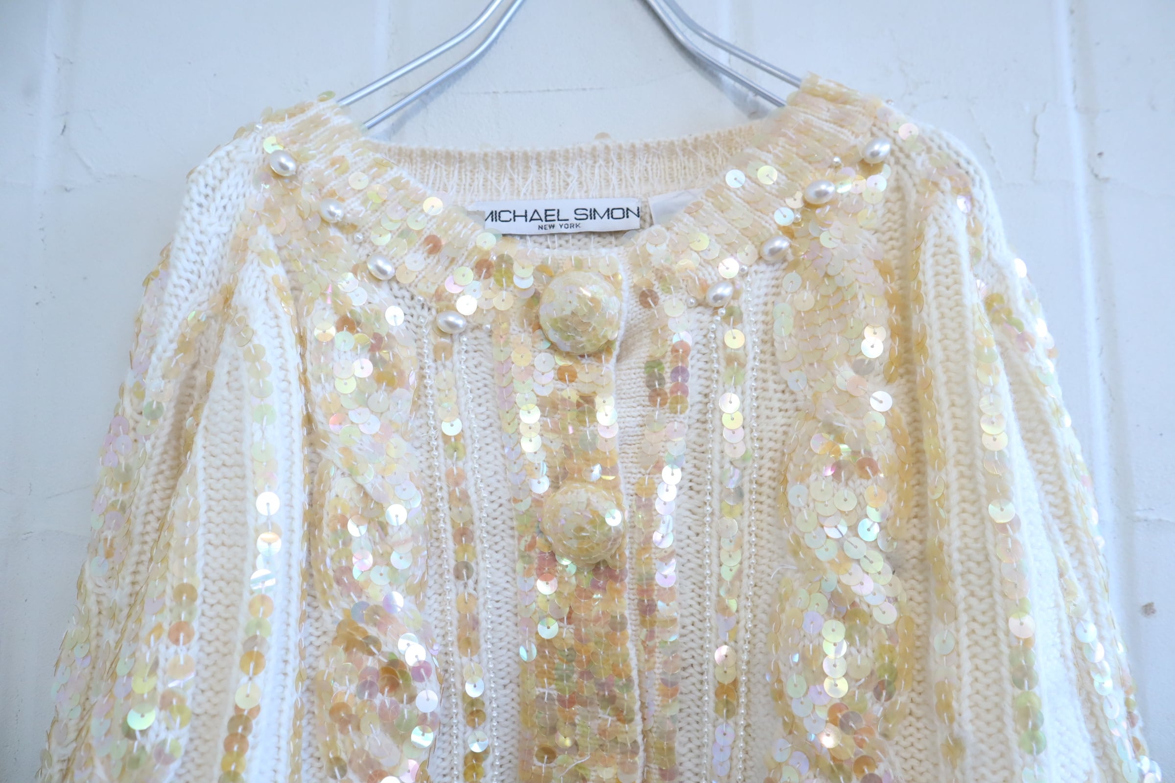 MICHAEL SIMON ivory×yellow sequins knit cardigan [l-4226]