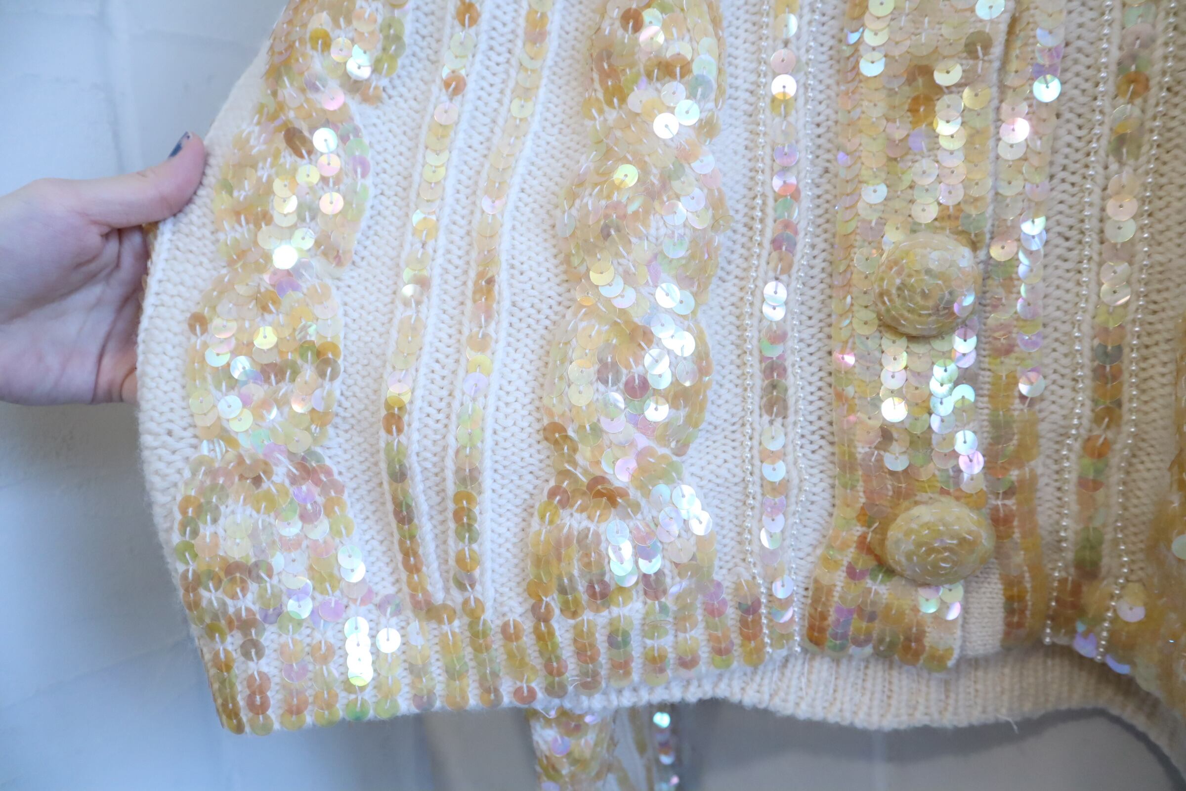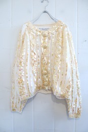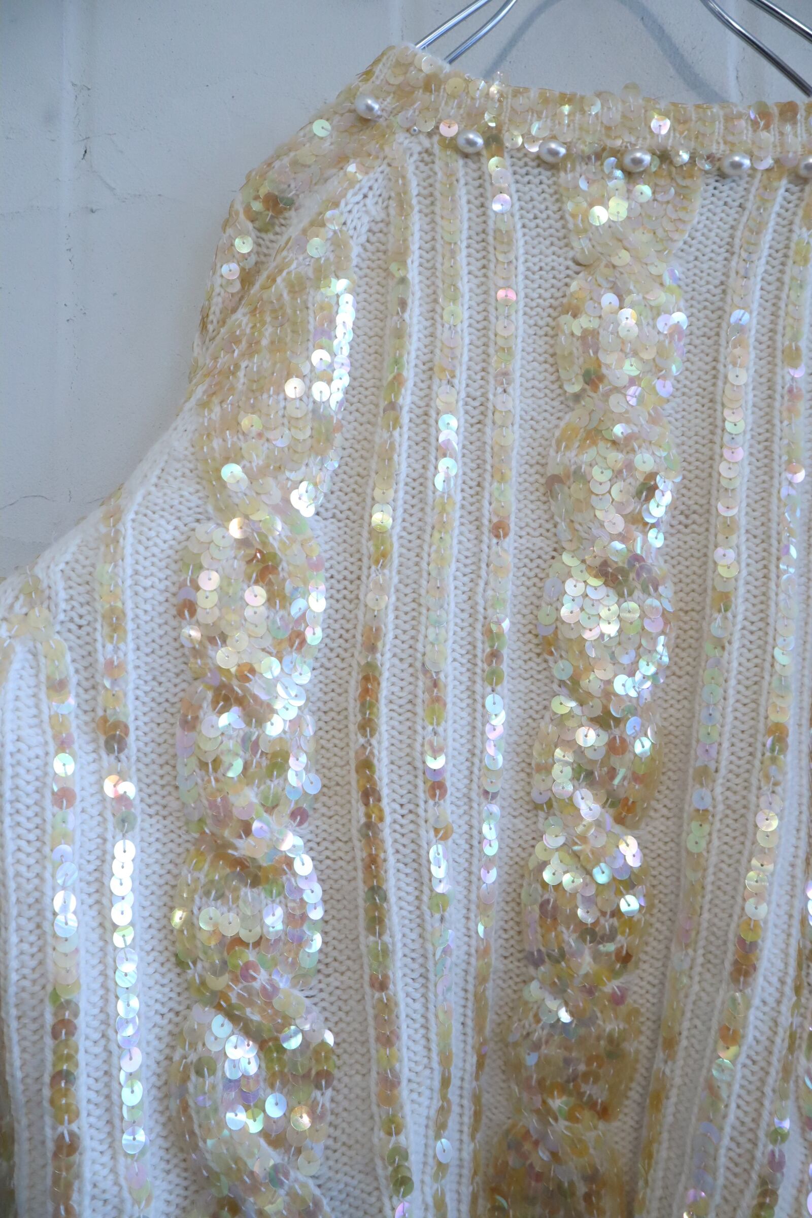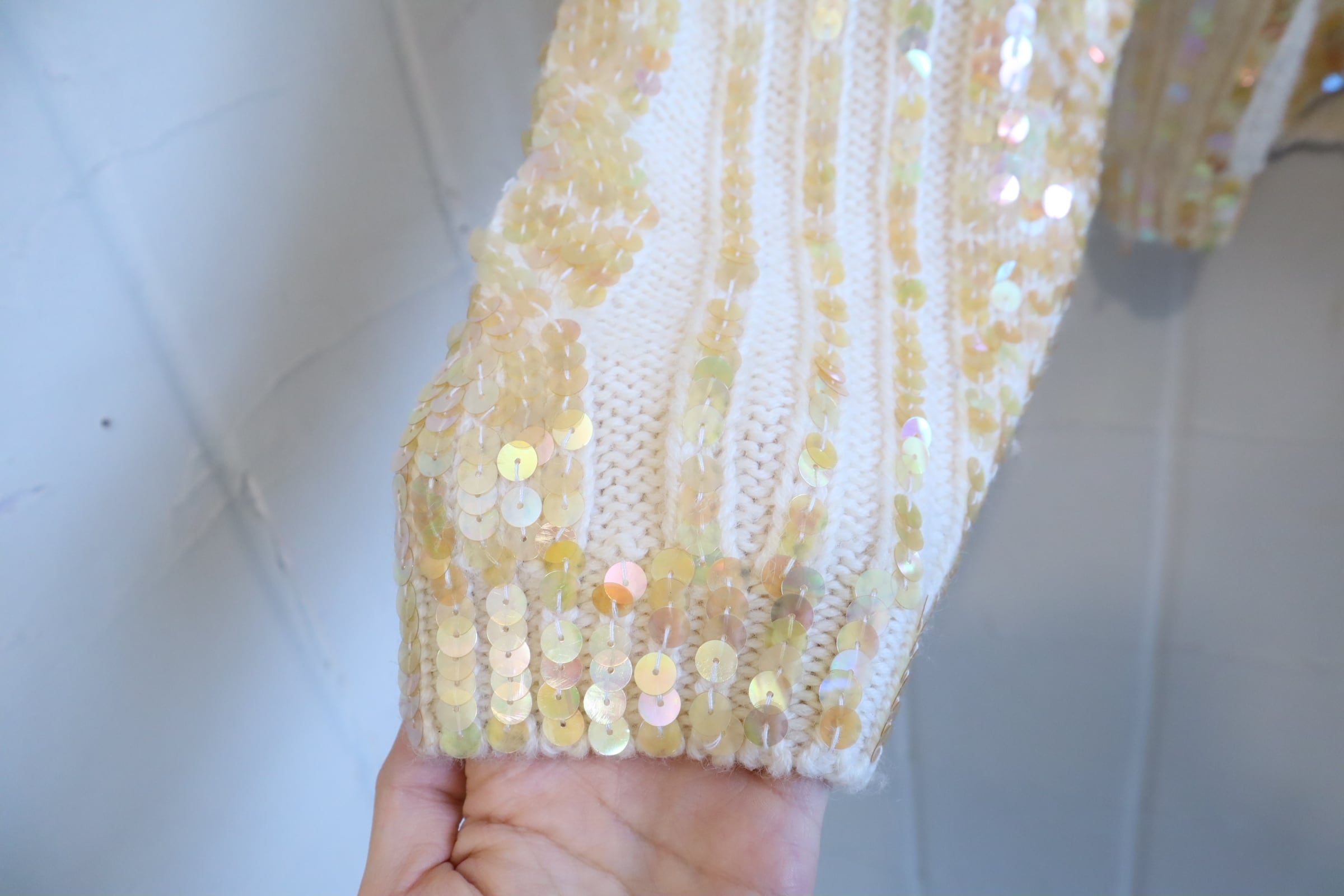 MICHAEL SIMON ivory×yellow sequins knit cardigan [l-4226]