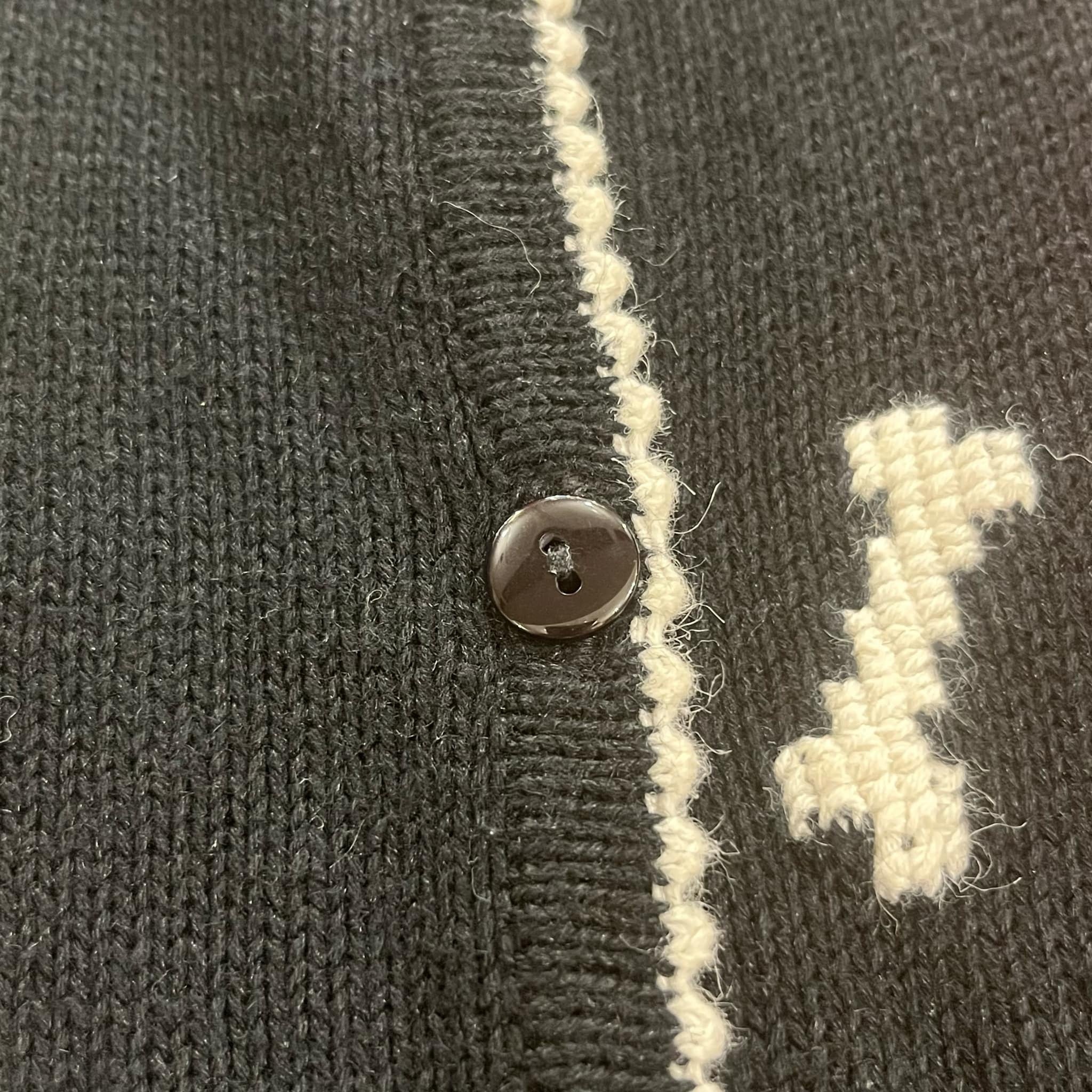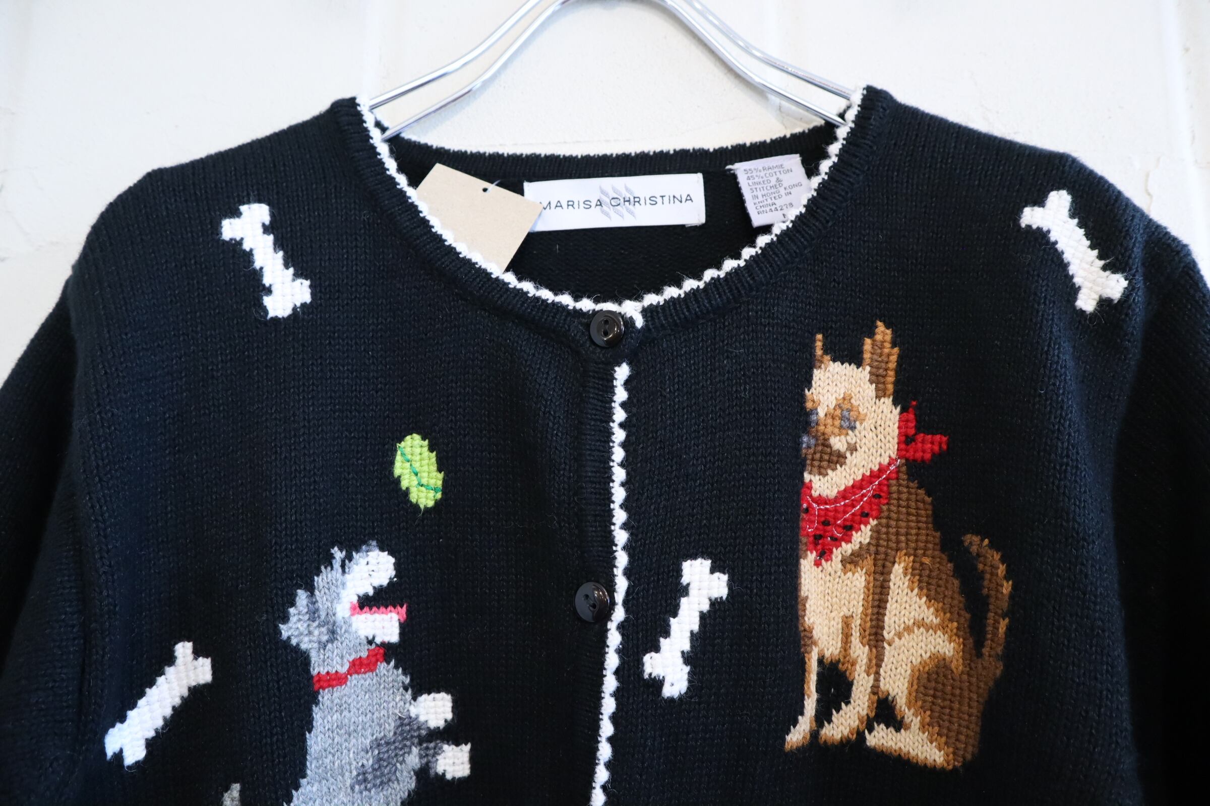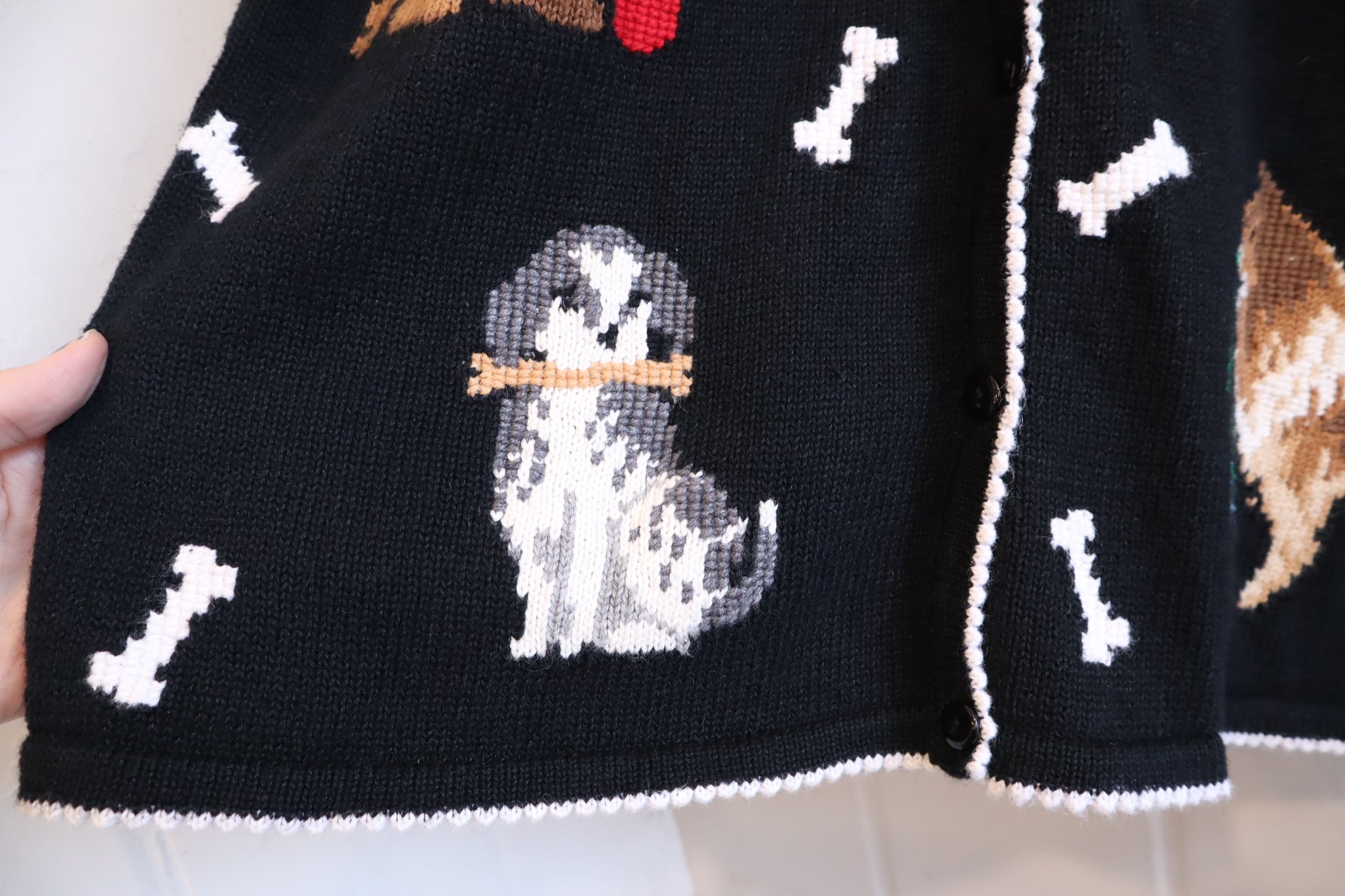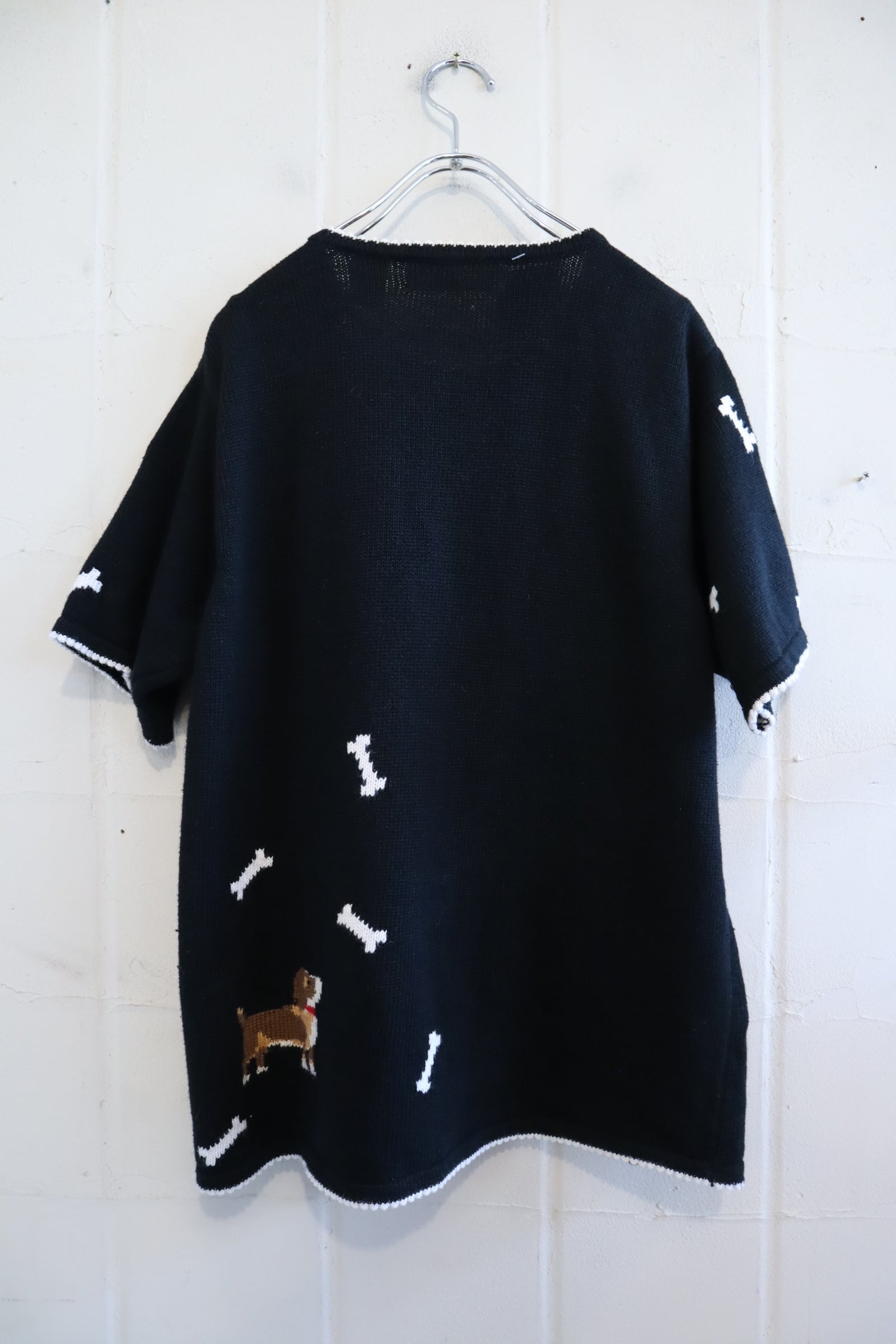 black×white dog motif short sleeve knit cardigan [l-4227]