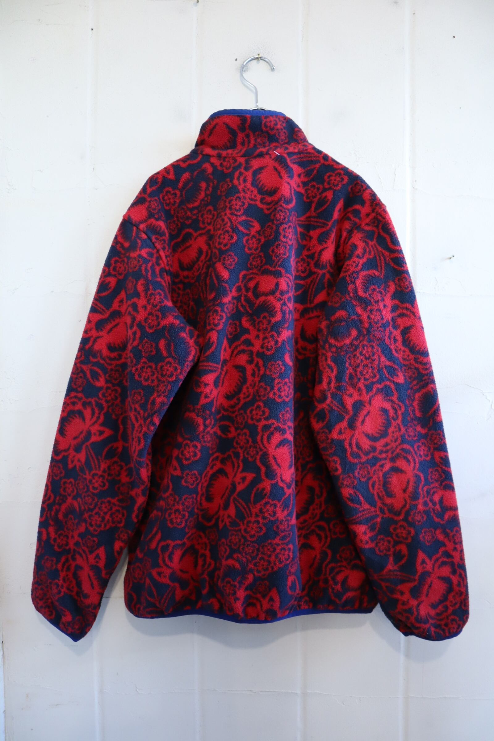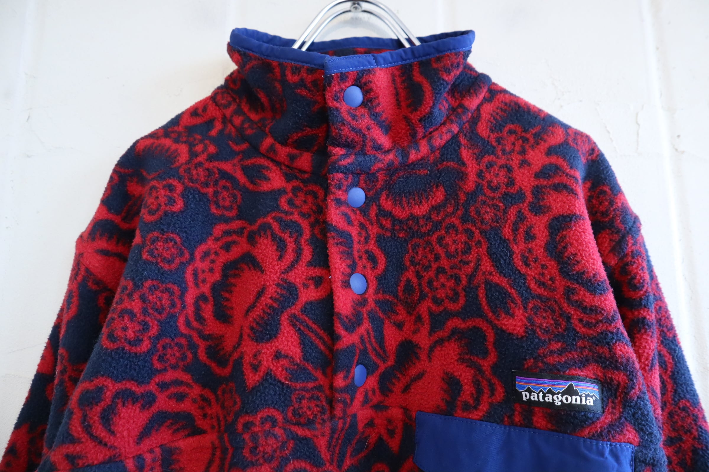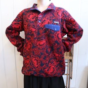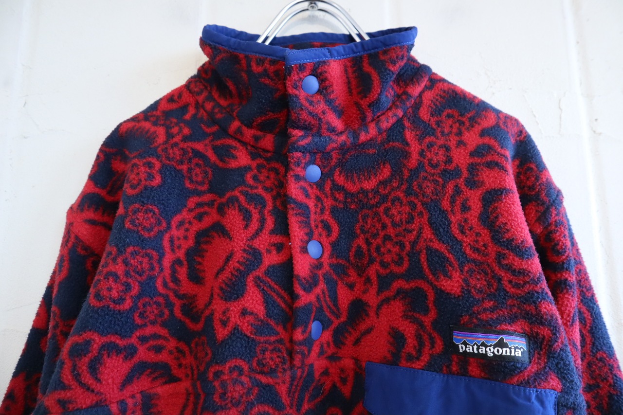 Patagonia red×navy flower pattern pullover snap-t fleece [l-4231]