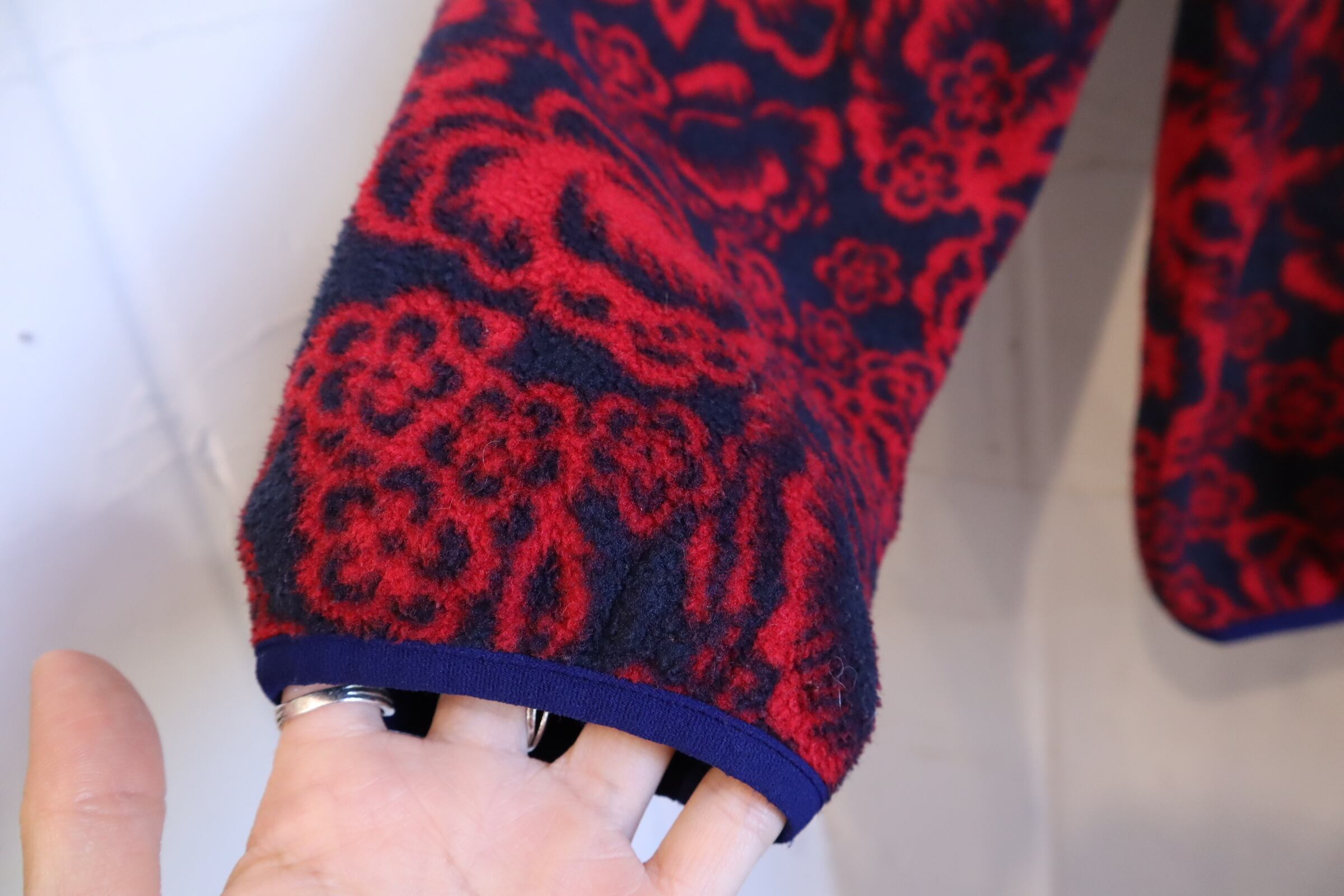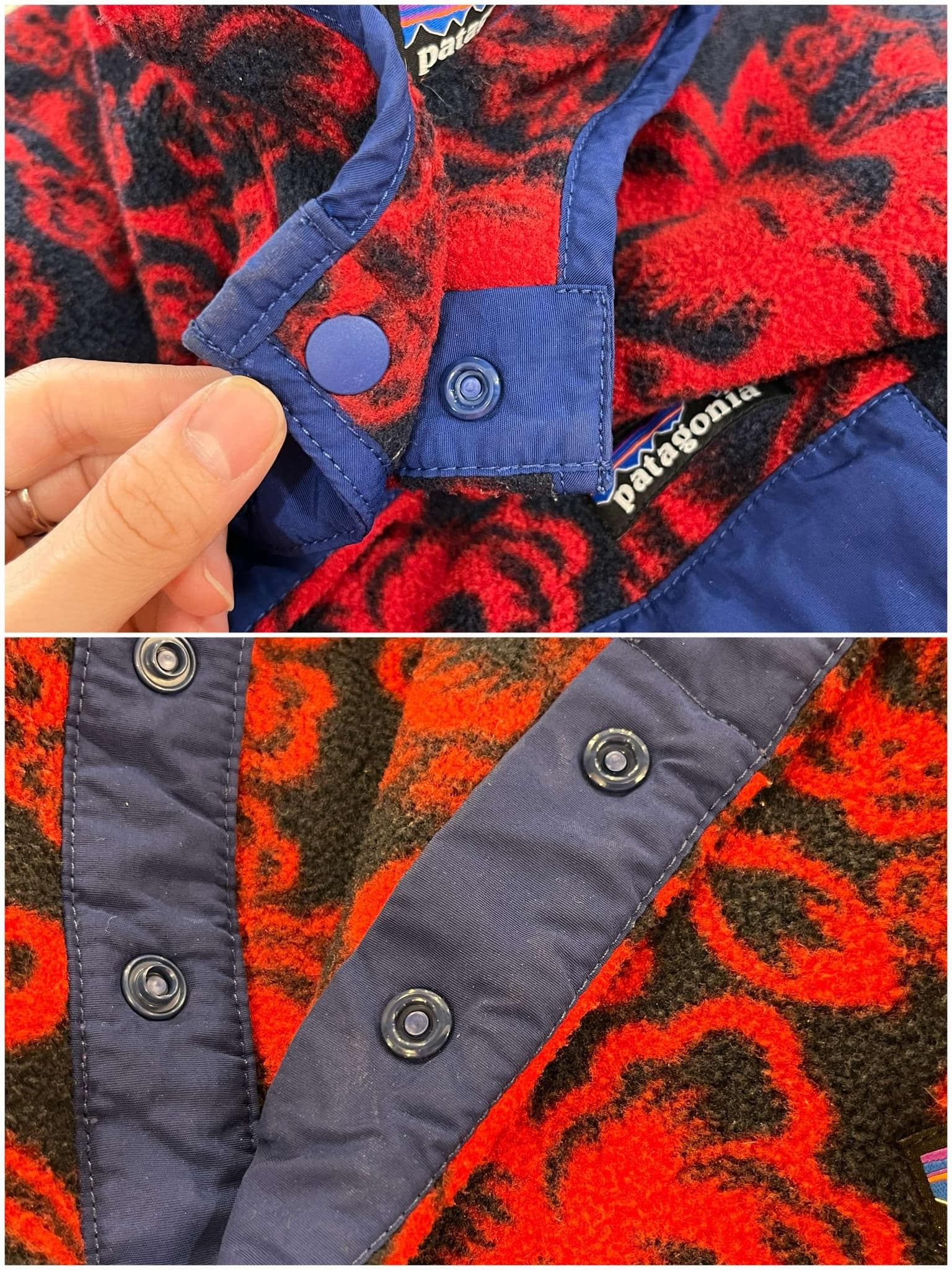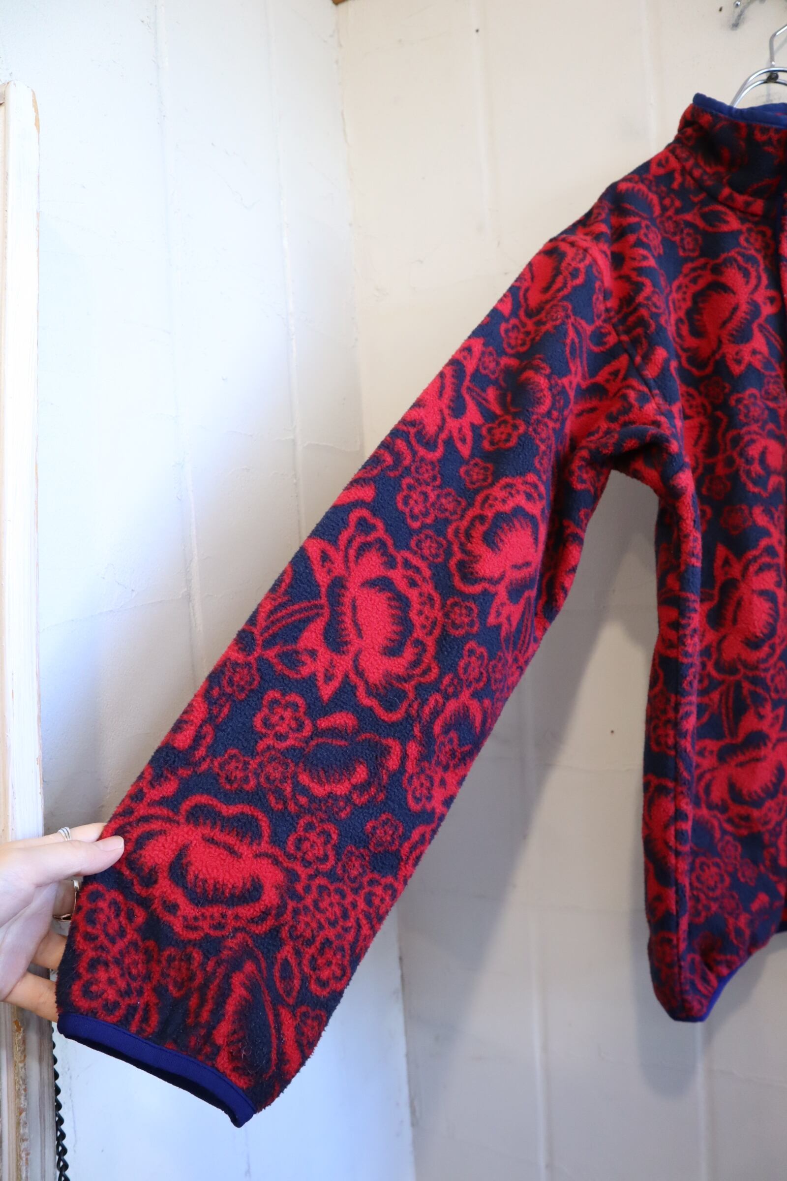 Patagonia red×navy flower pattern pullover snap-t fleece [l-4231]