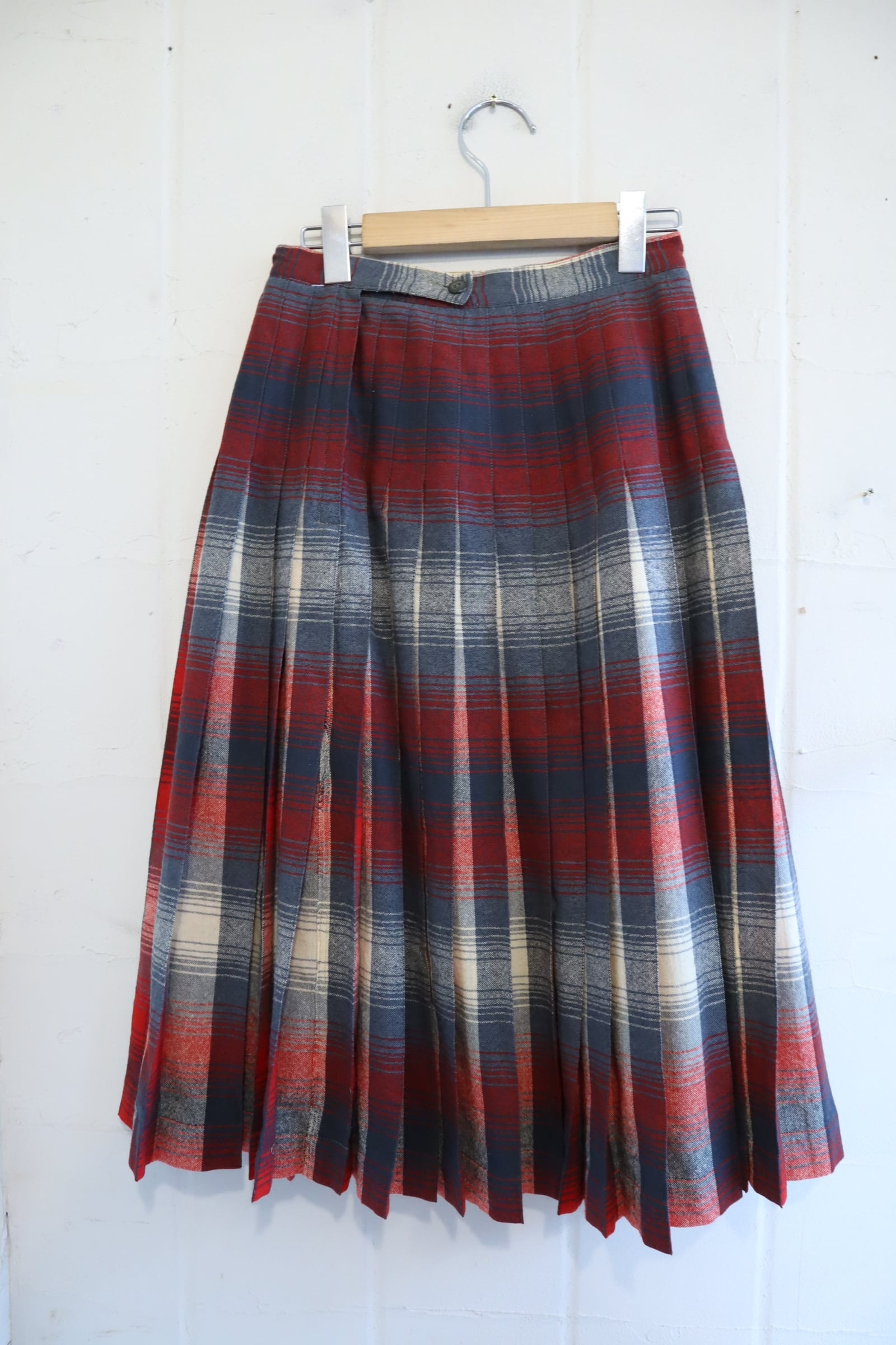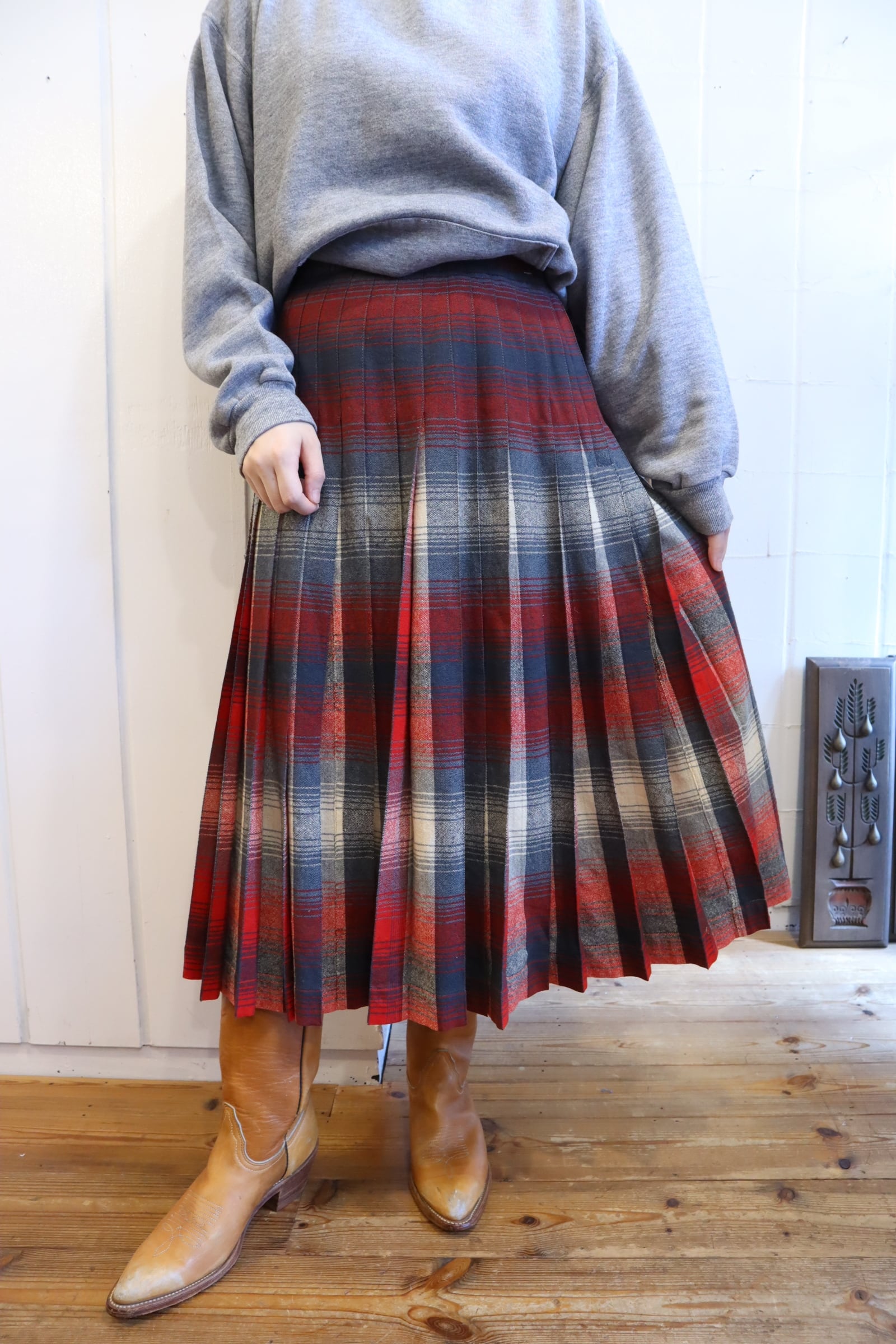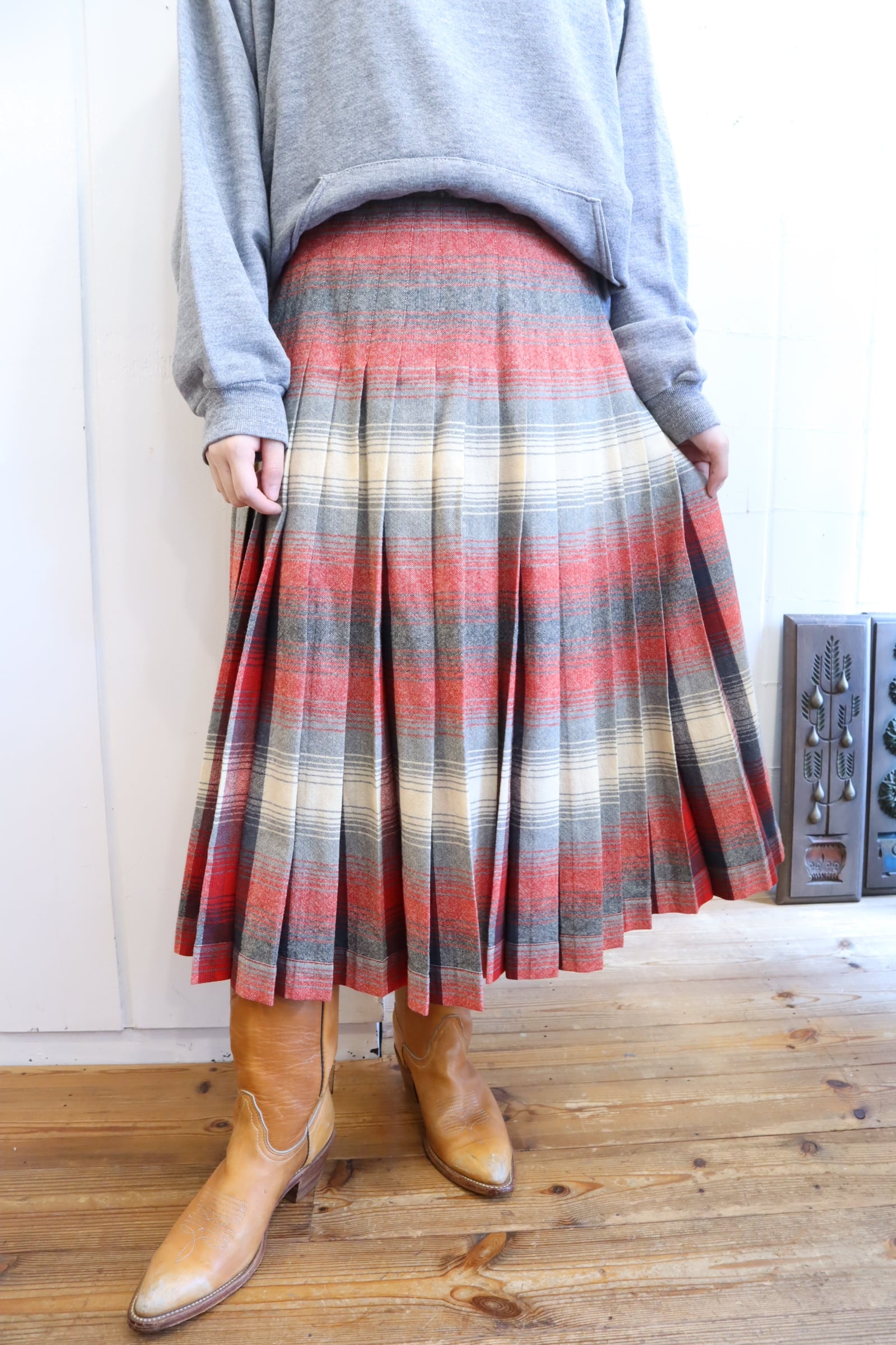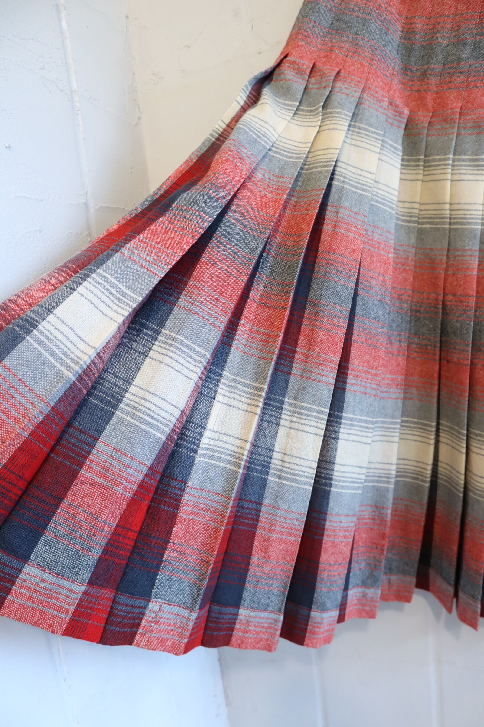 50s-60s PENDLETON red×gray reversible pleats skirt [l-4243]