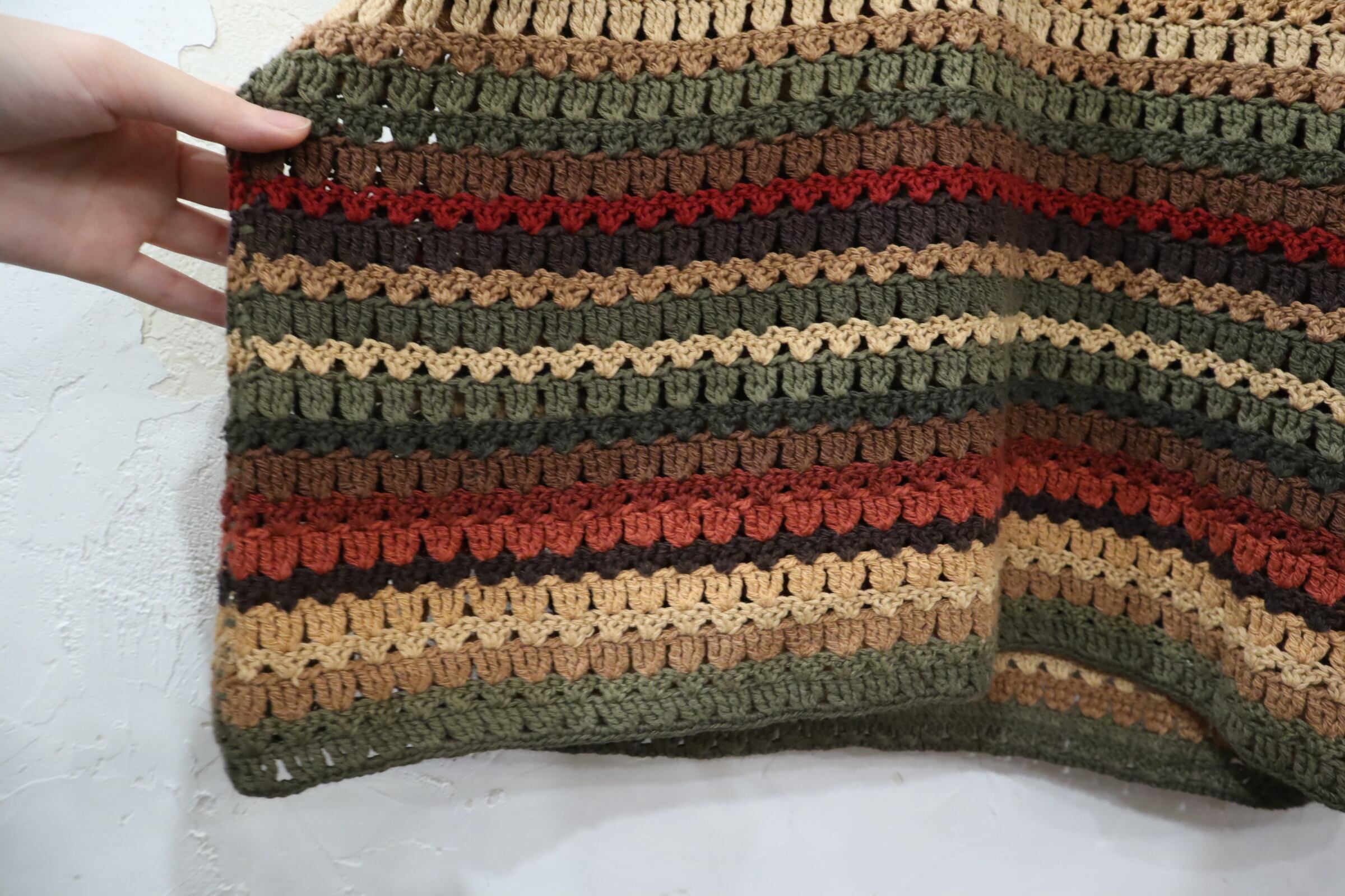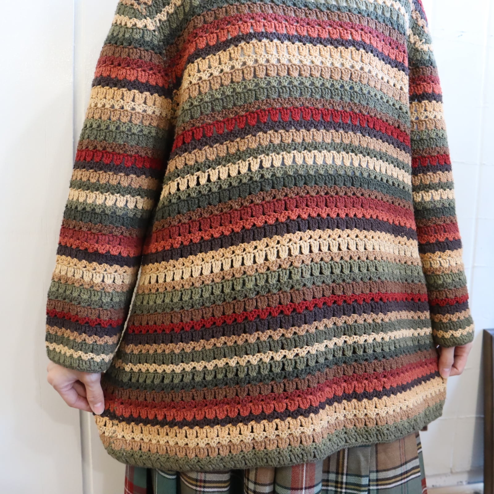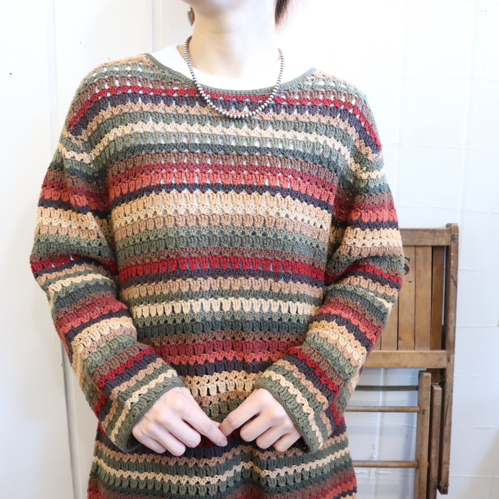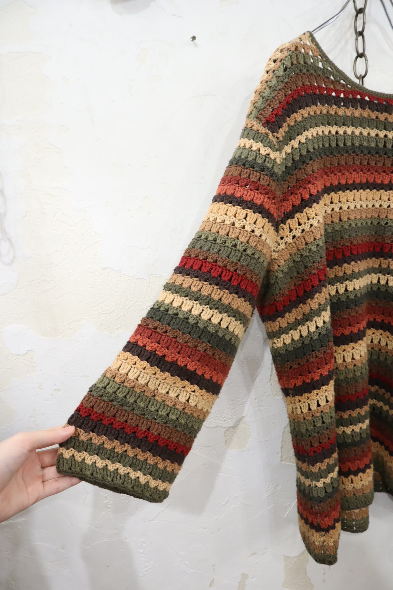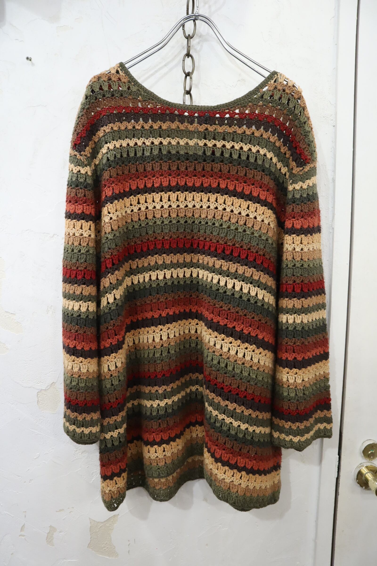 Ralph Lauren khaki×dullorange border crochet knit pullover [l-4246]