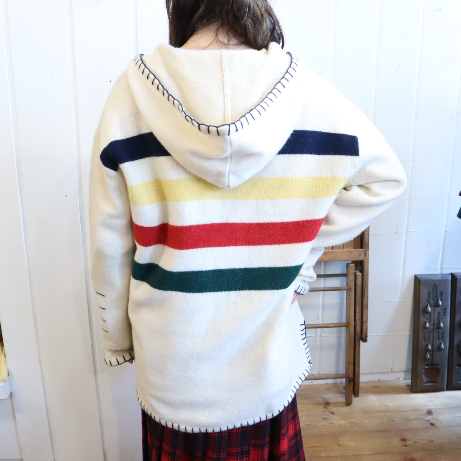 Ralph Lauren ivory×red border hood knit pullover [l-4247]