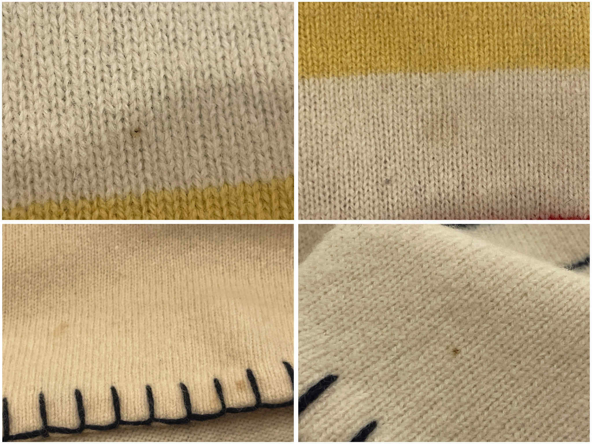 いくつかシミ・キズ・小穴・生地の薄れがございますが、古着の味として着て頂けるかと思います。