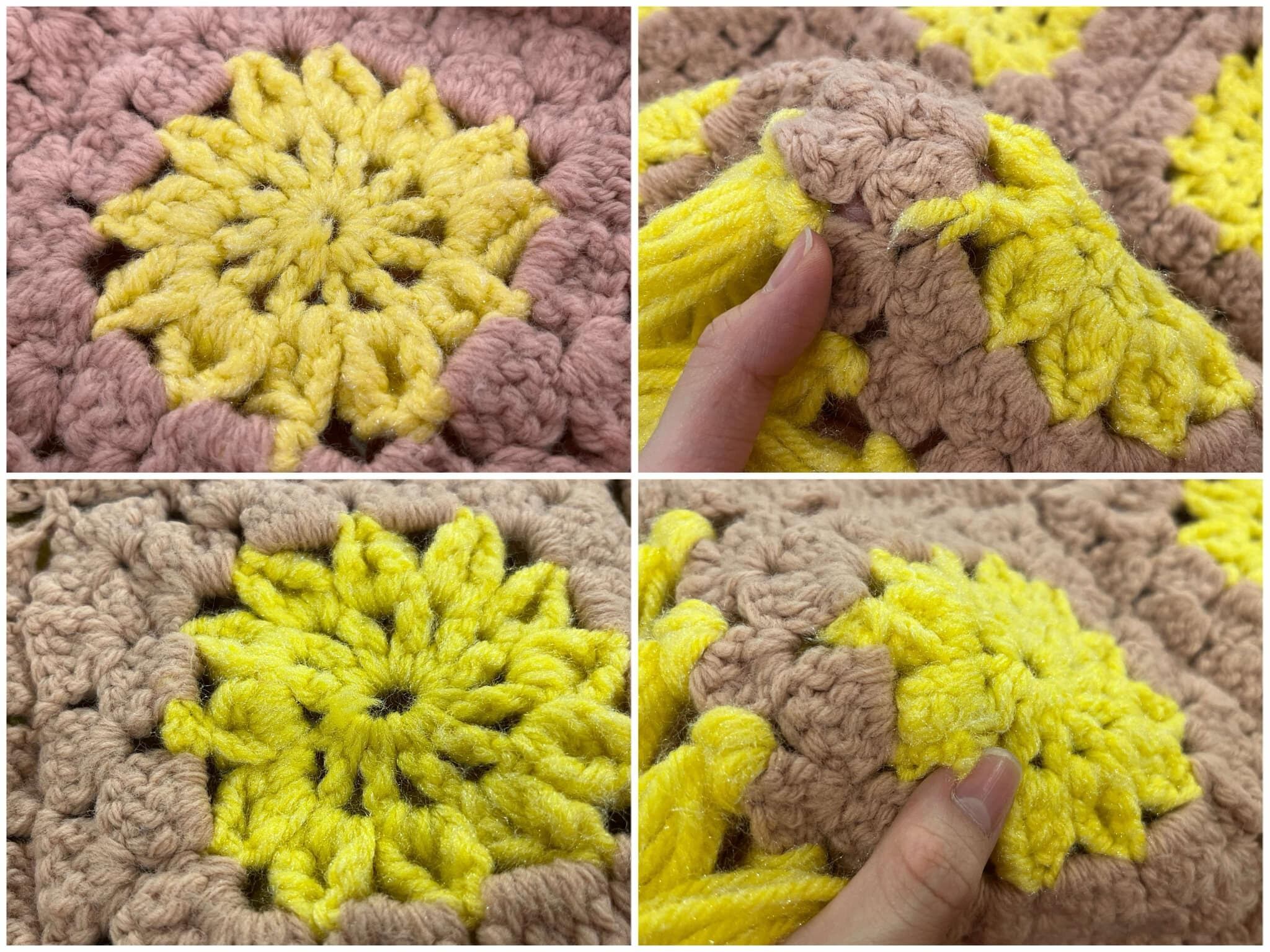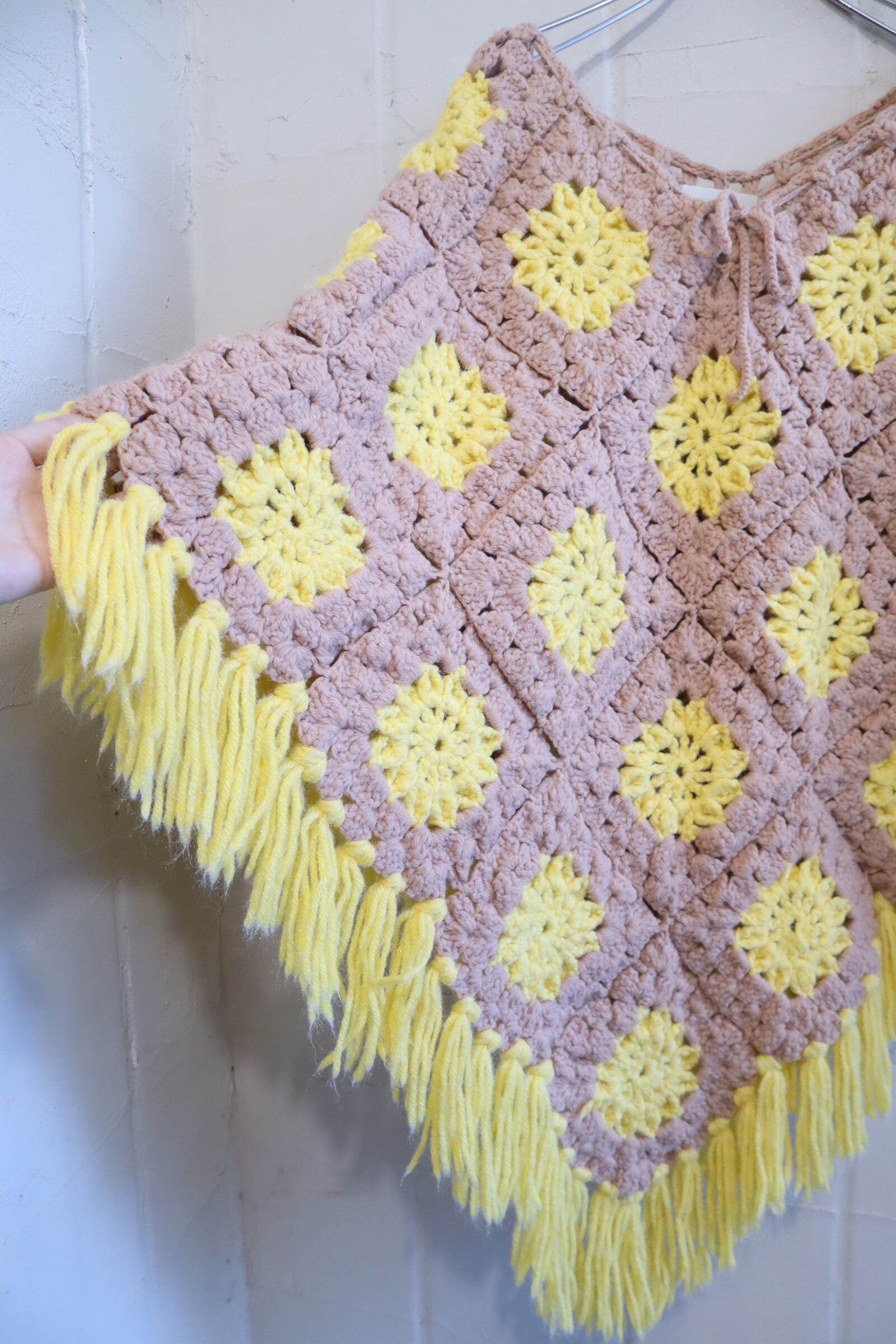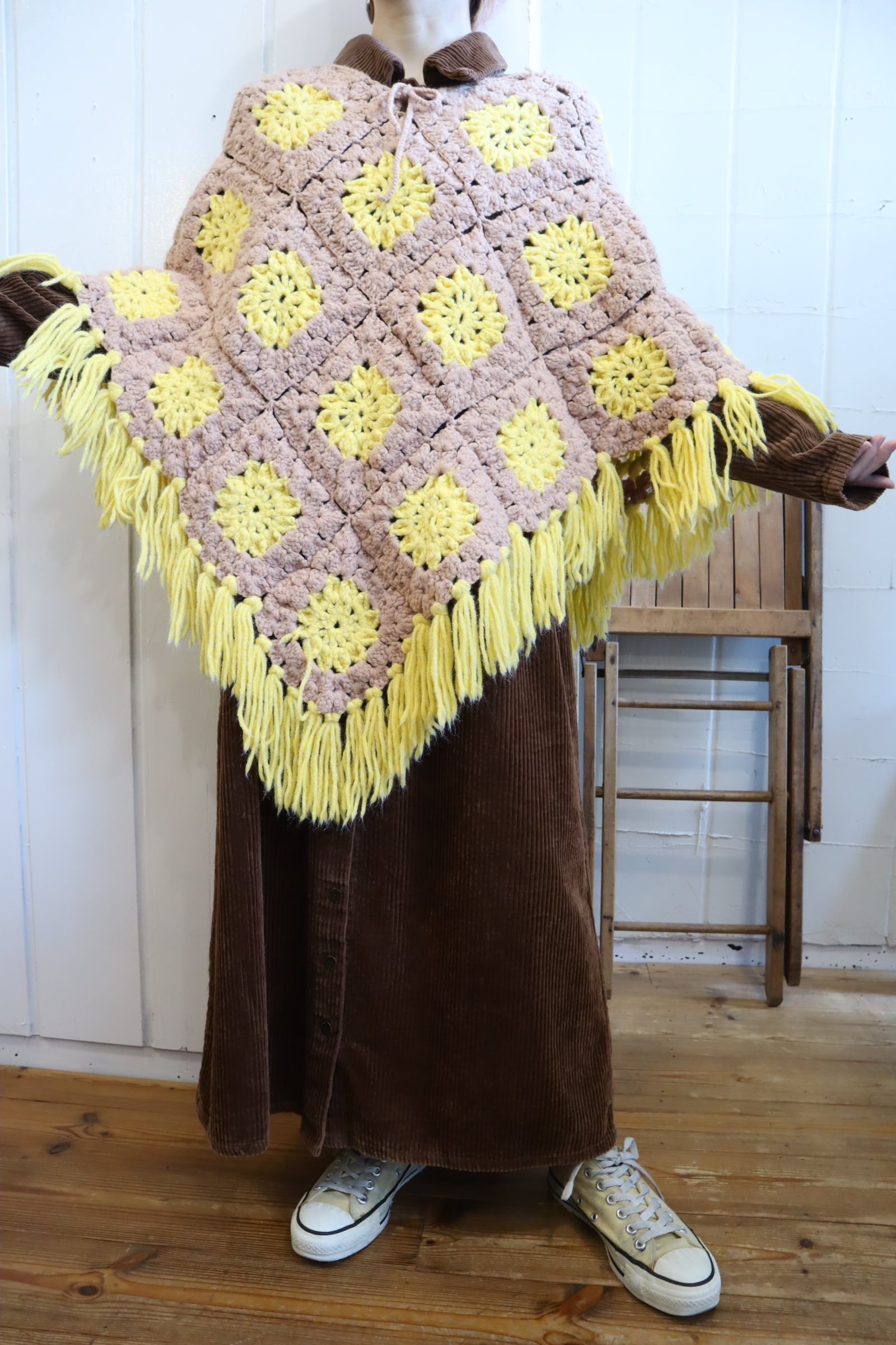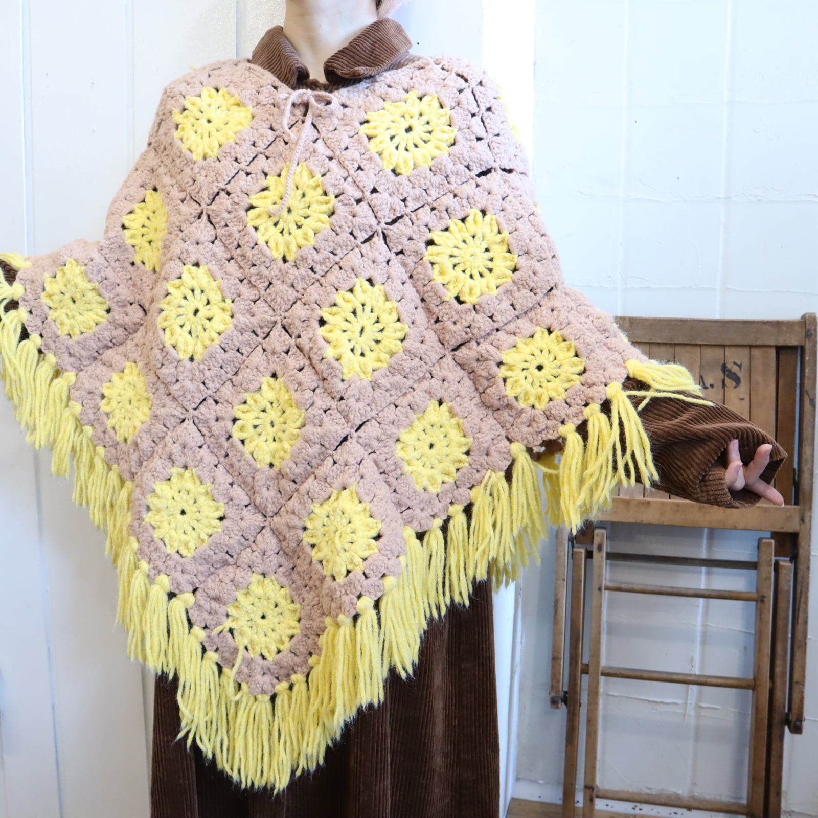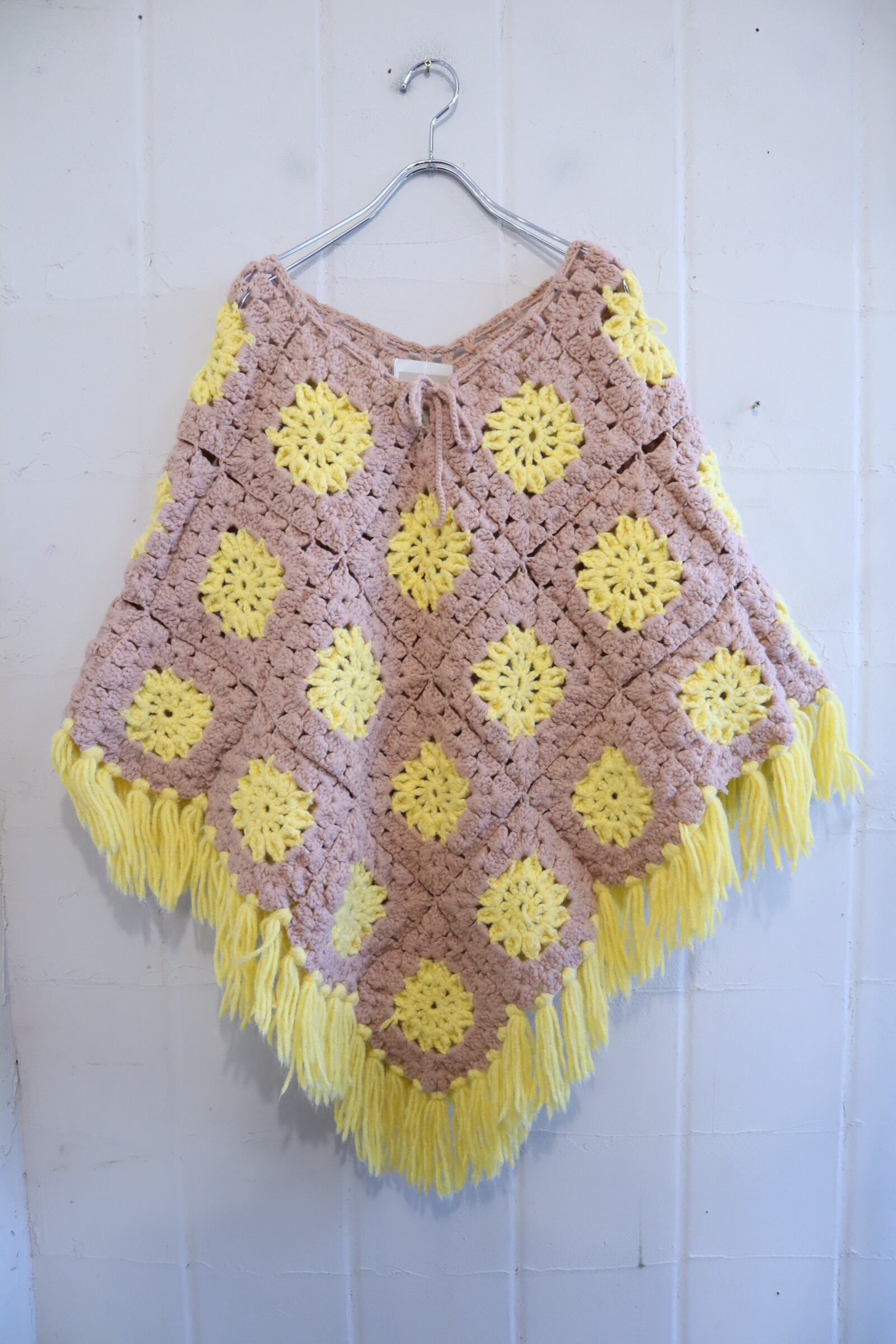 お色合わせが可愛いグラニースクエアニットポンチョです。