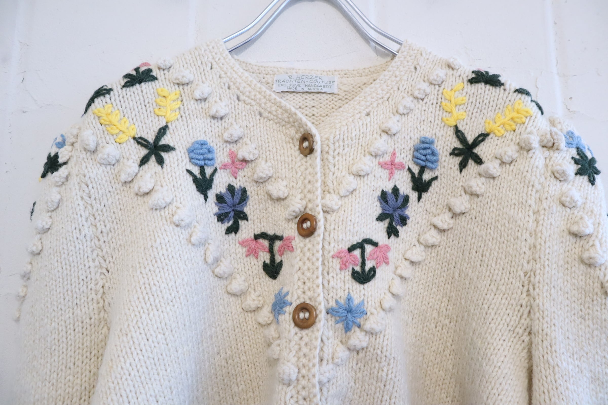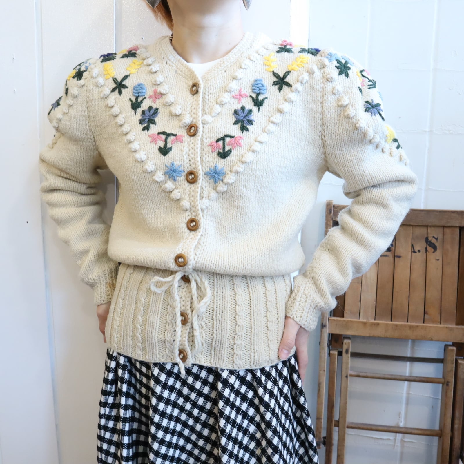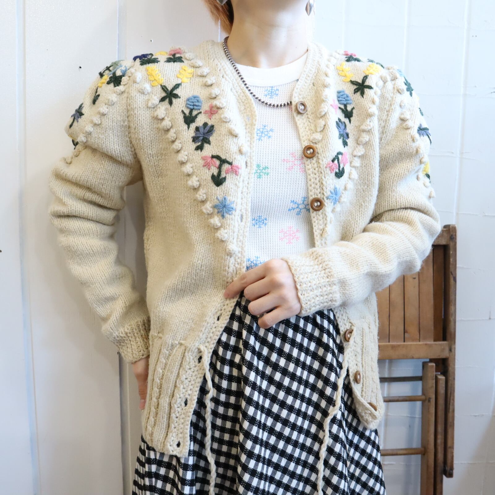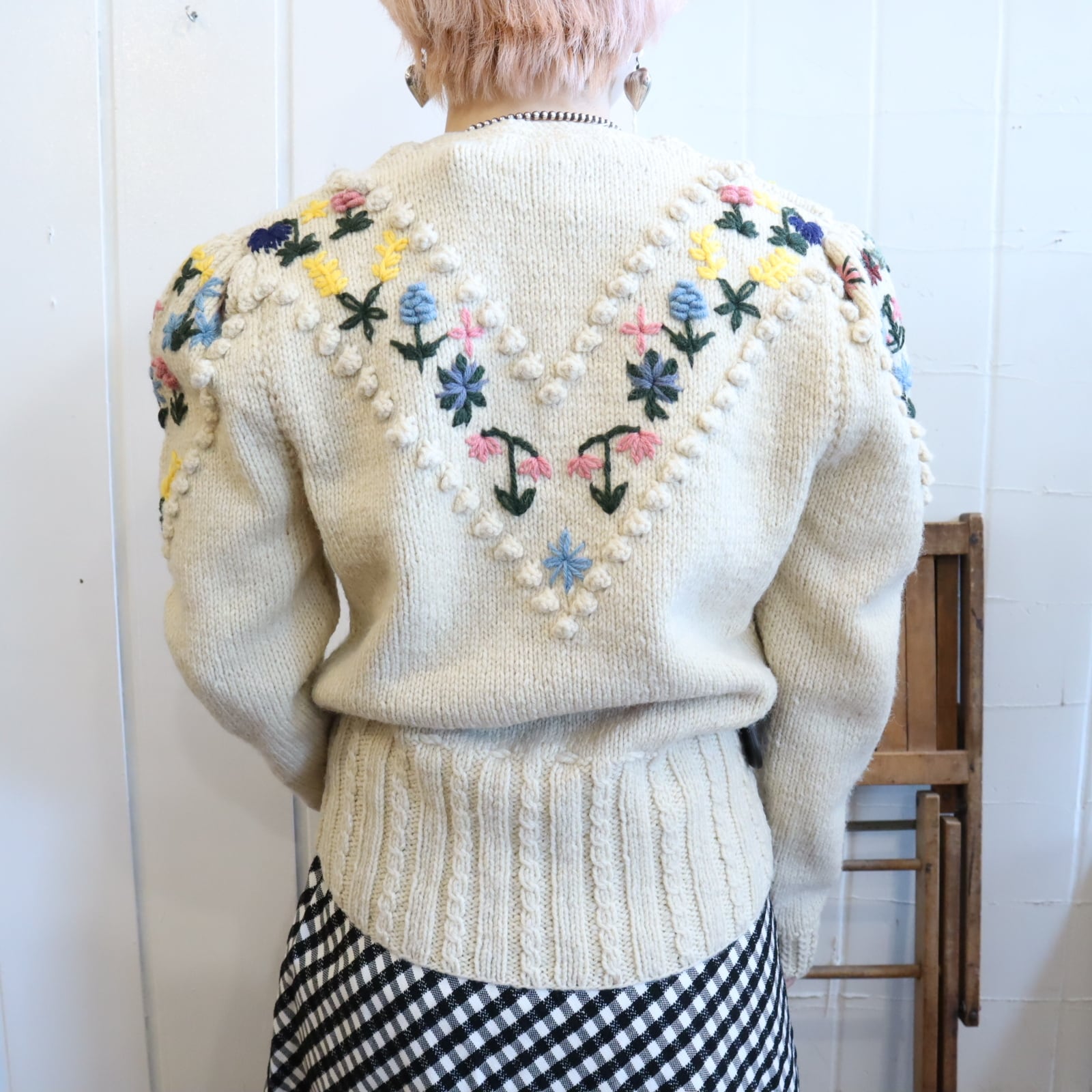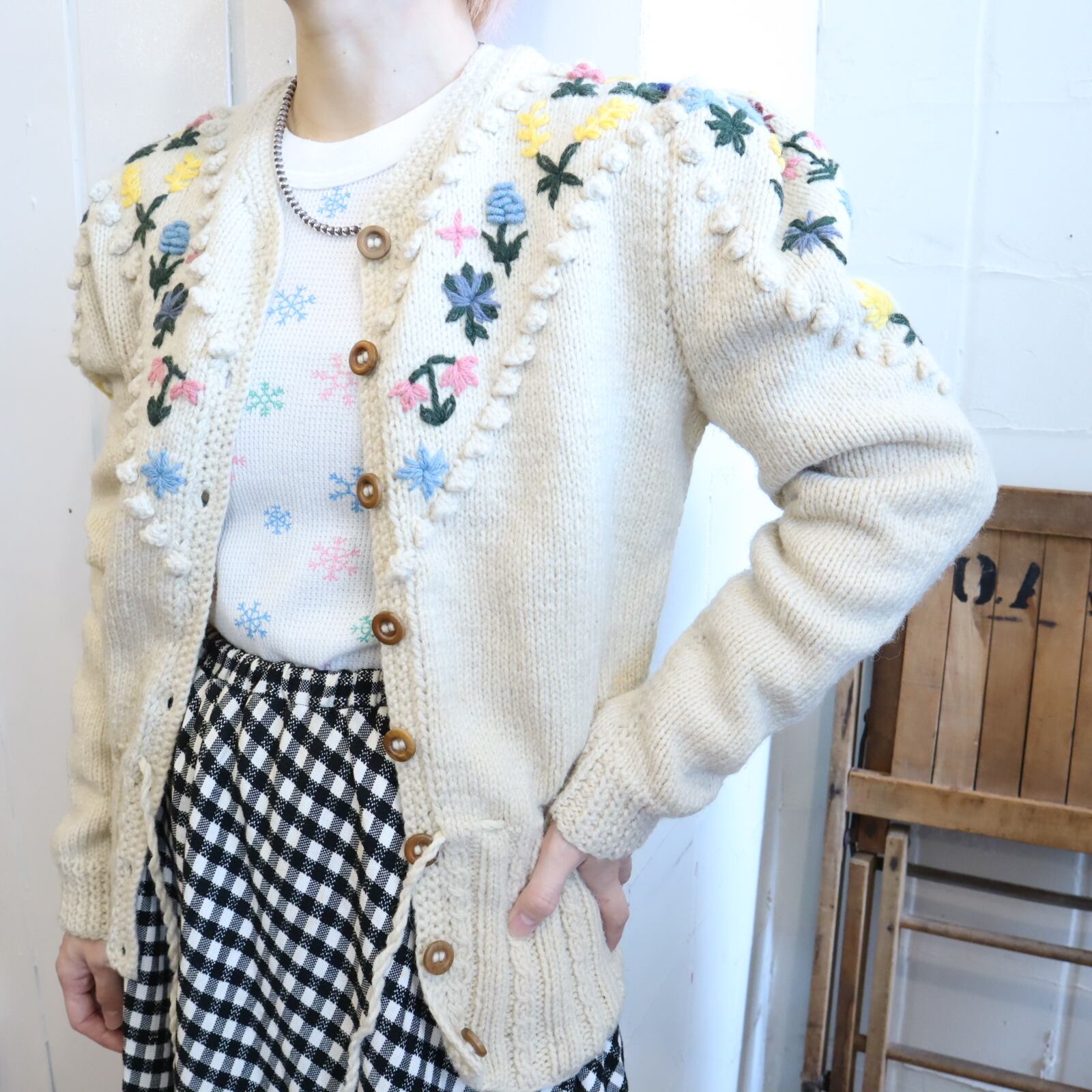 offwhite×colorful flower embroidery knit cardigan [l-4254]