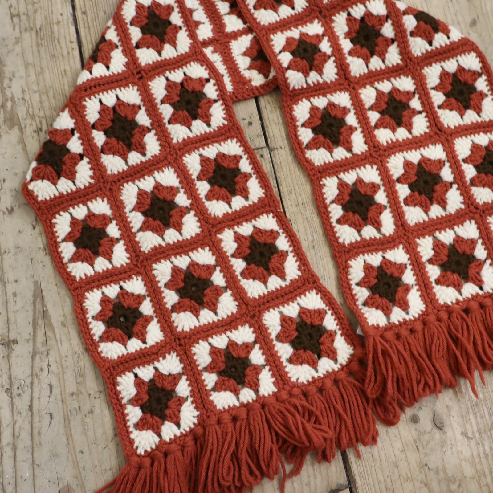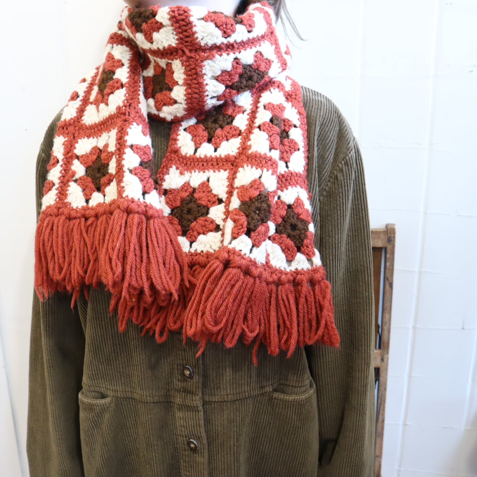 フリンジ付きで可愛いグラニースクエアニットマフラーです。