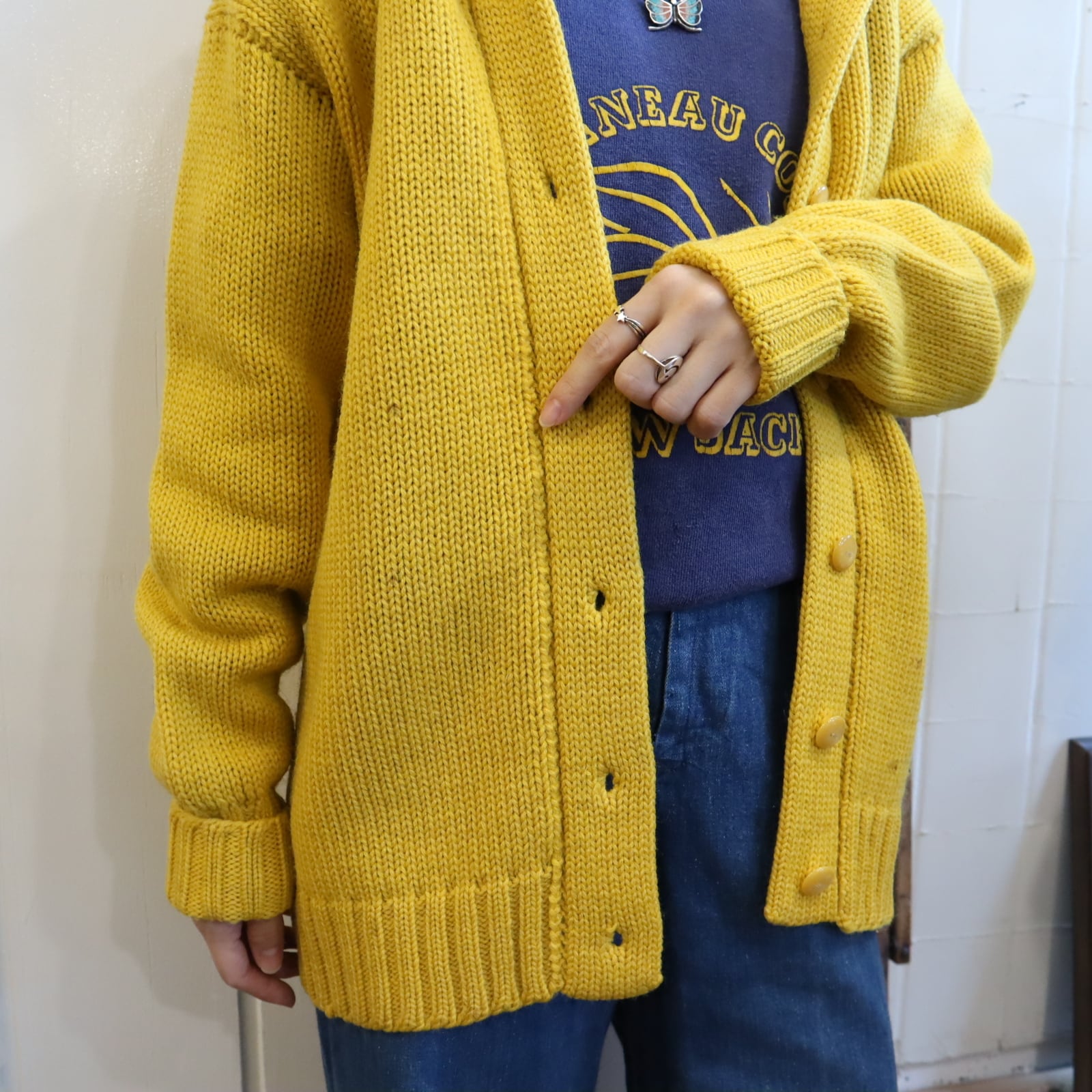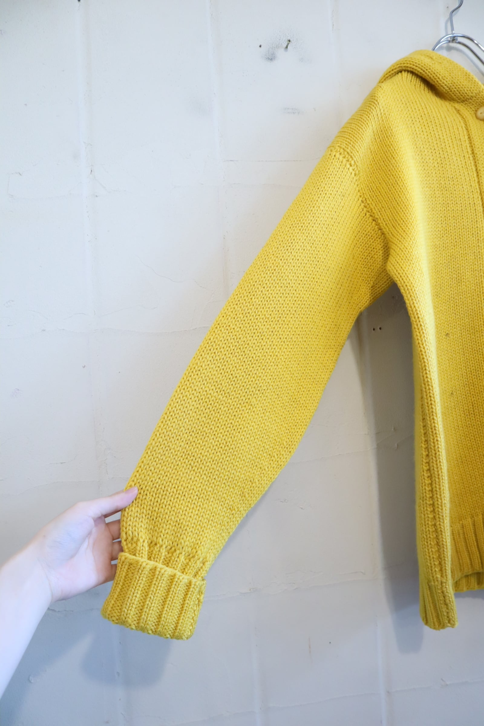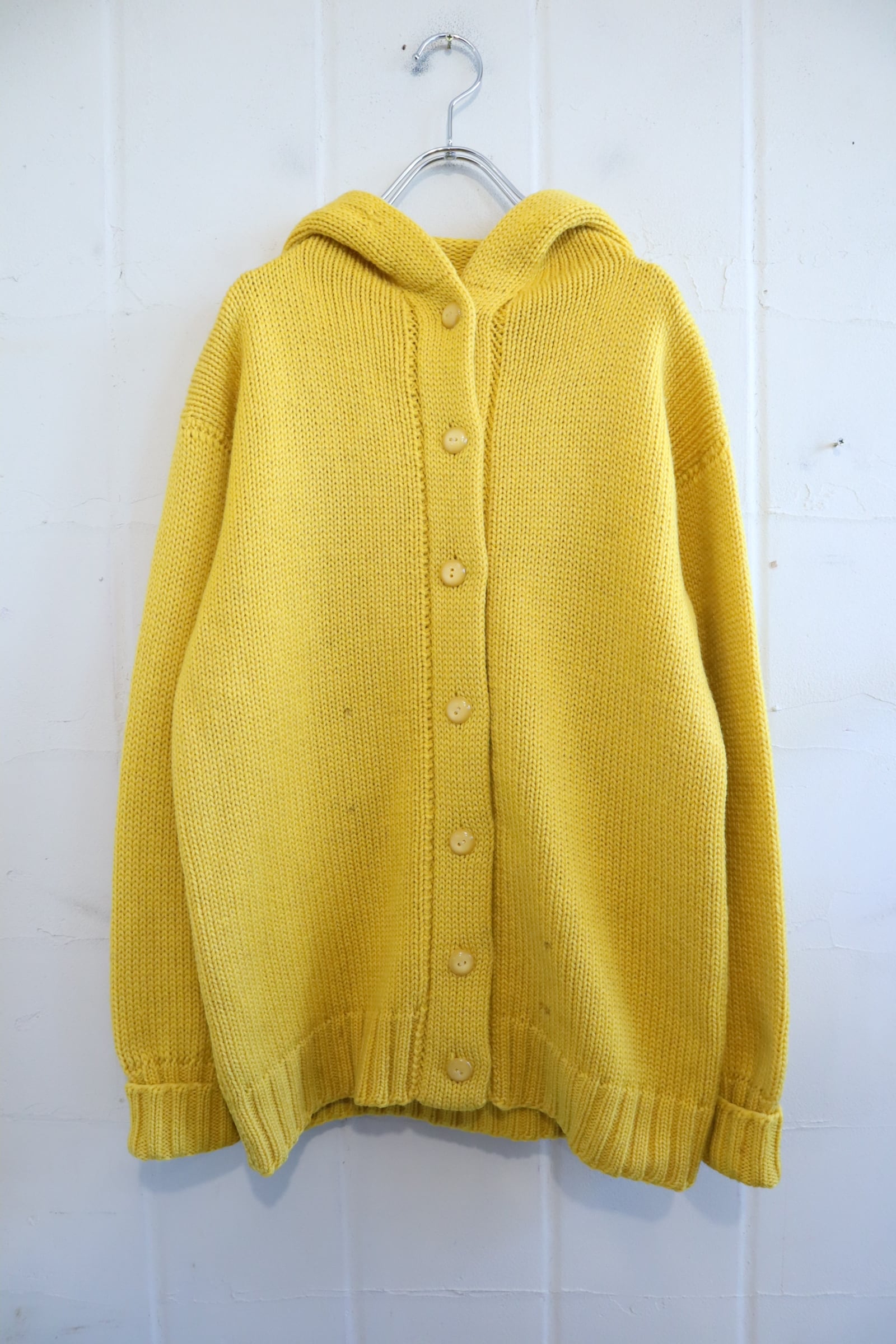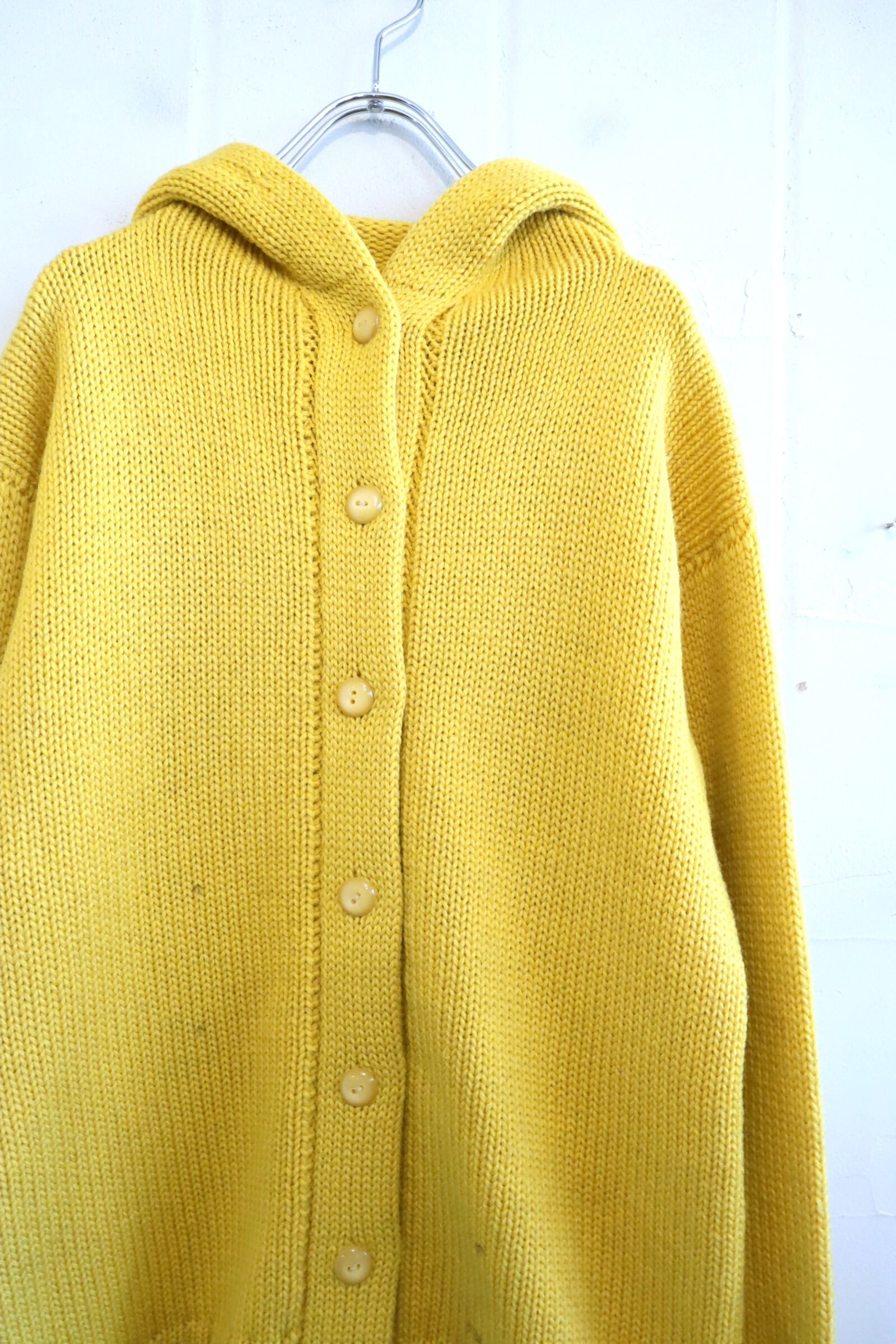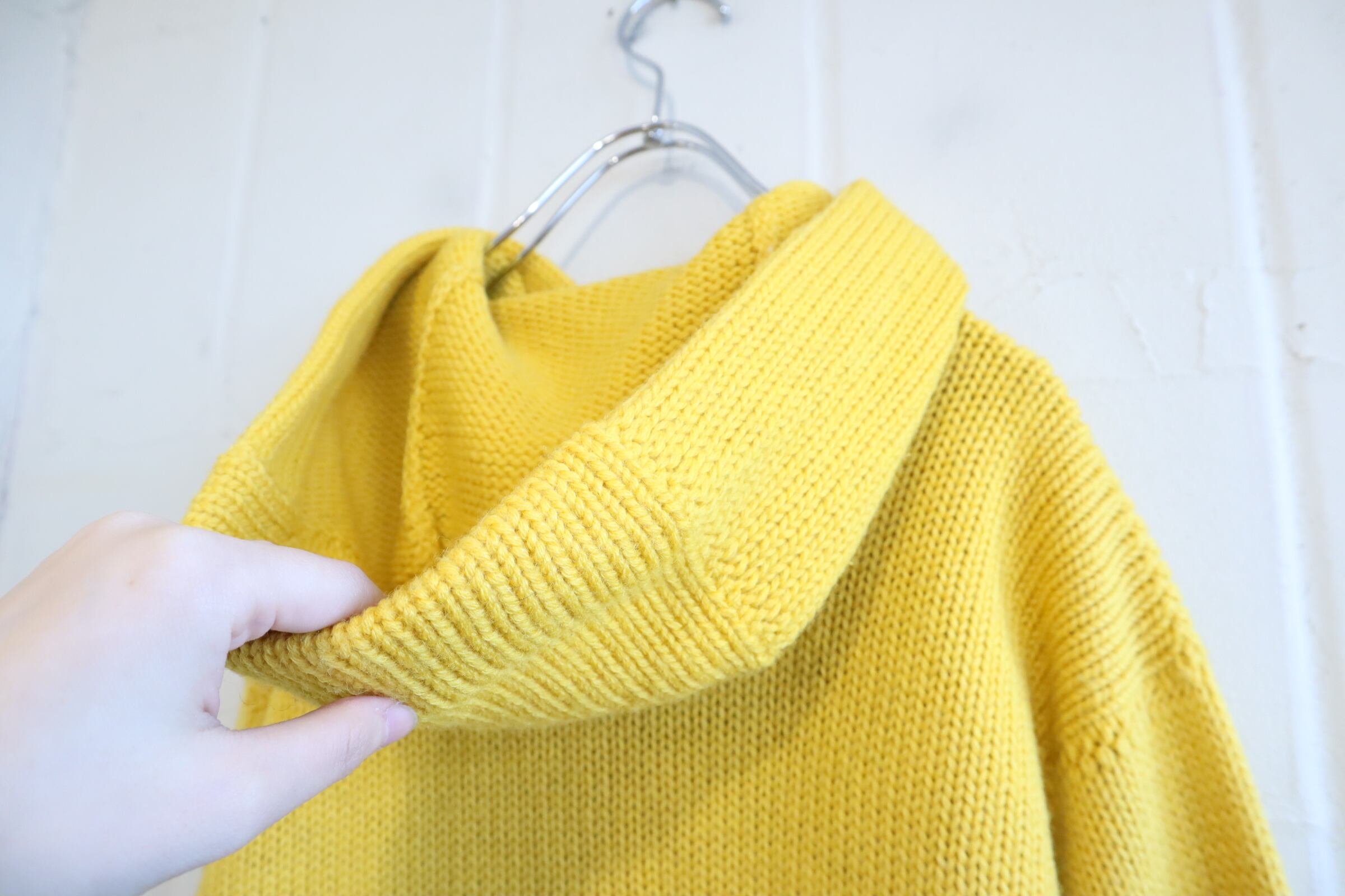 yellow plain lettered hoodie knit cardigan [l-4271]