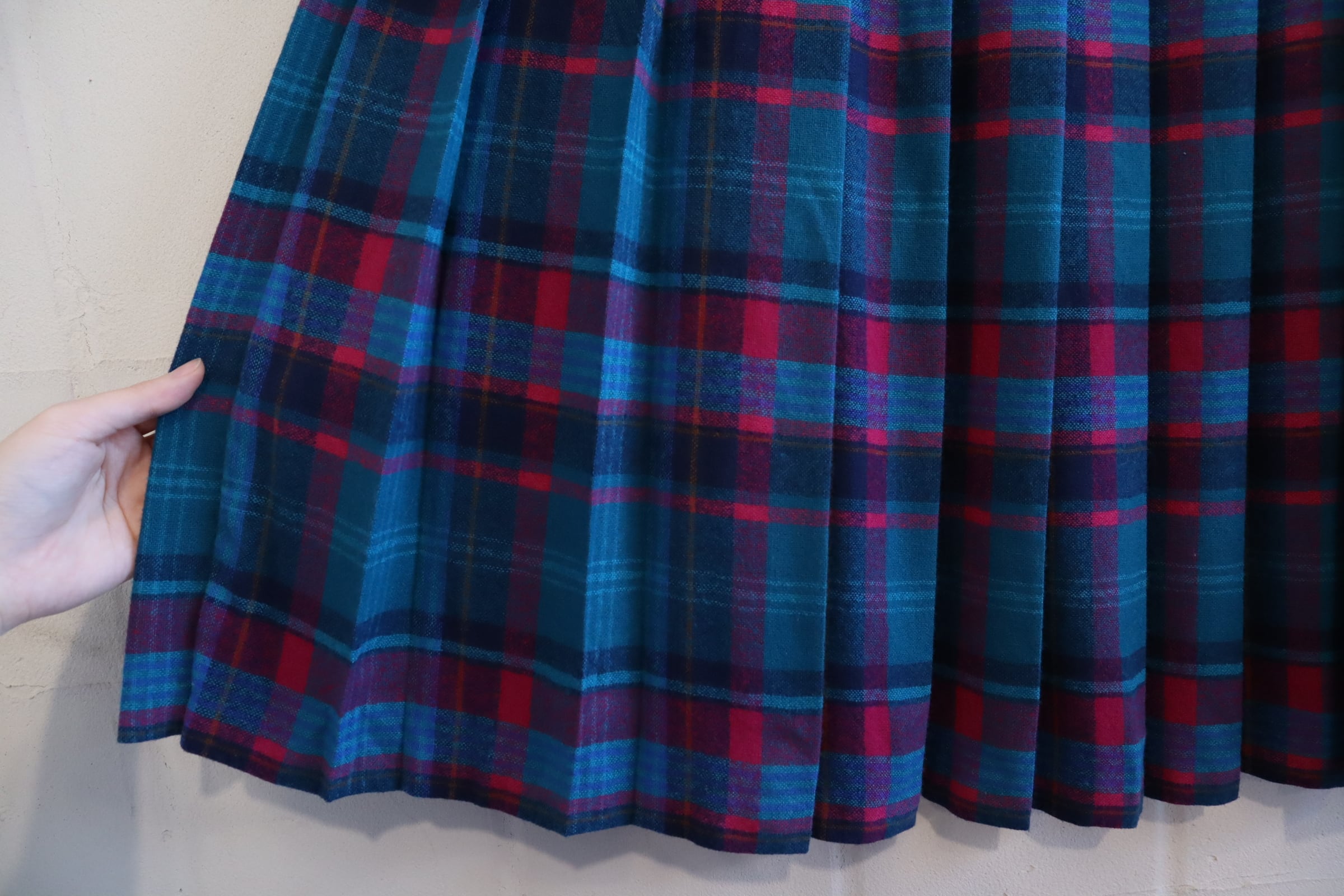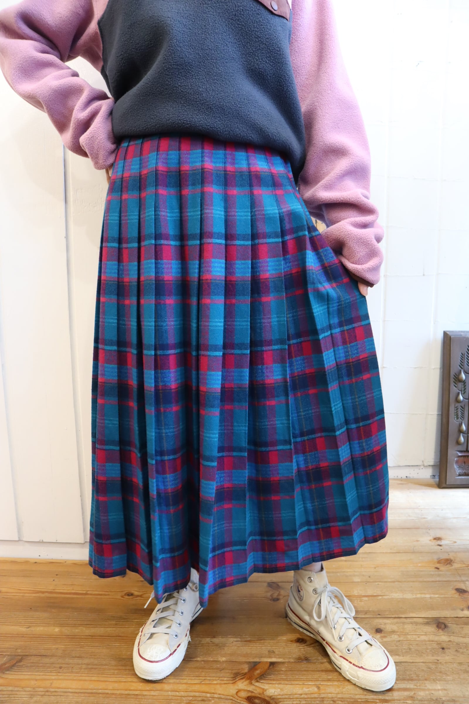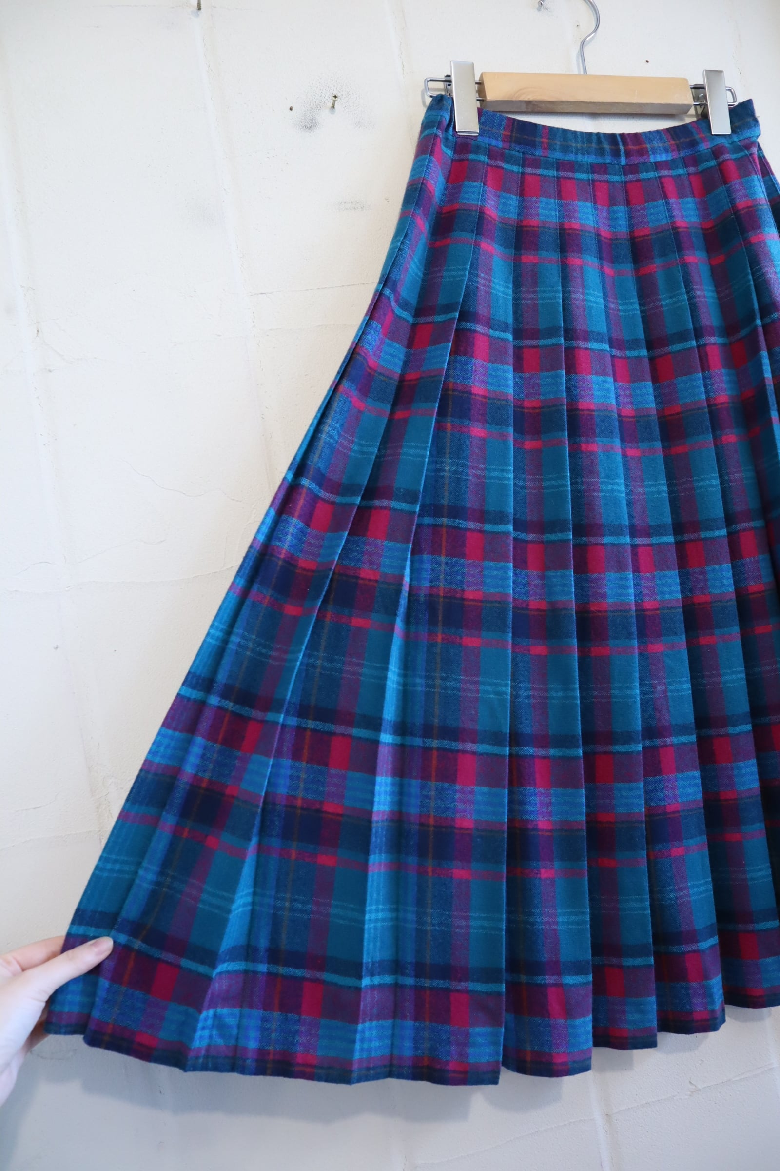70s PENDLETON bluegreen×pink pleats skirt [l-4270]