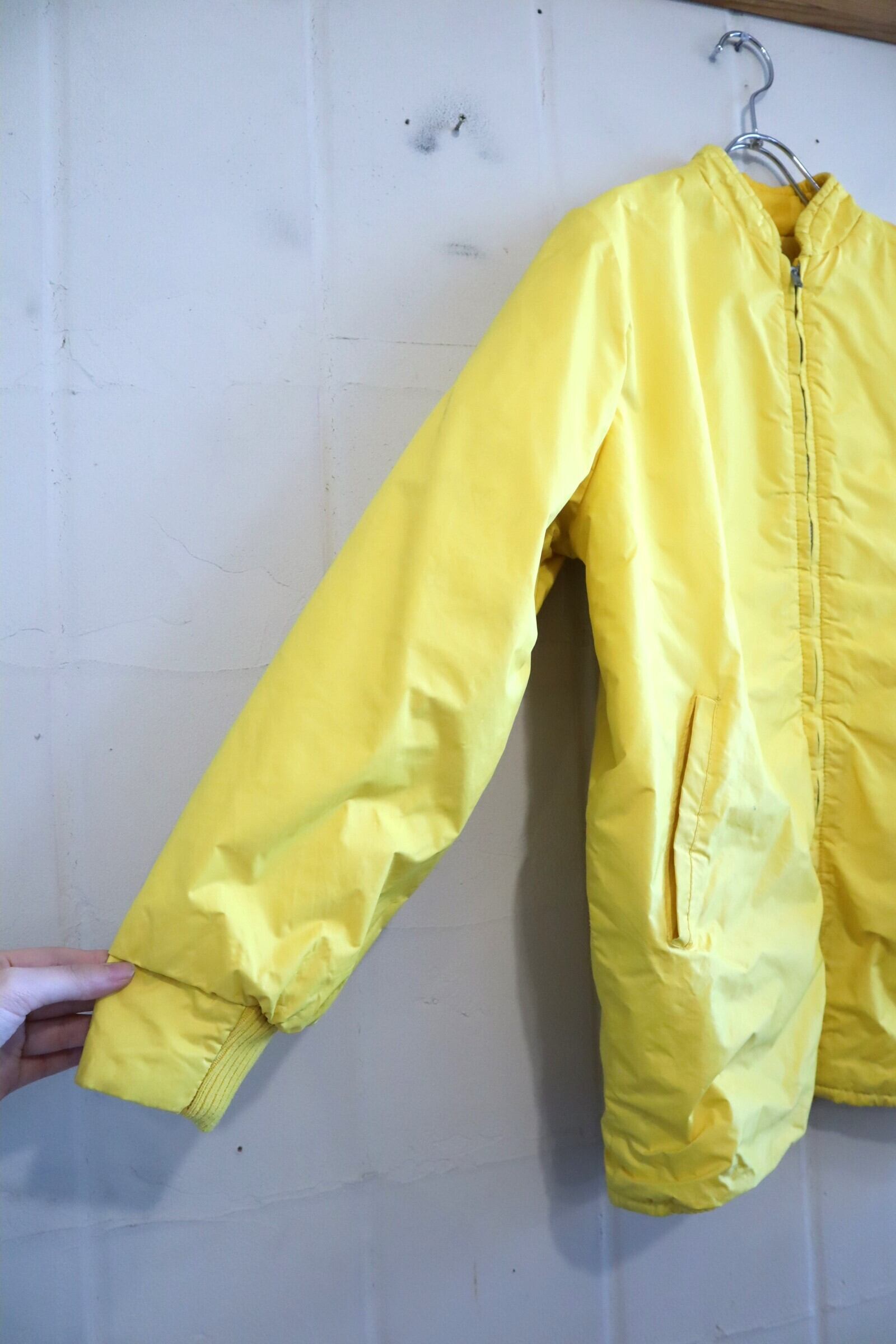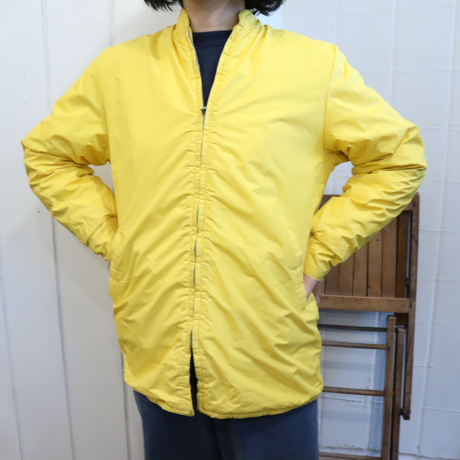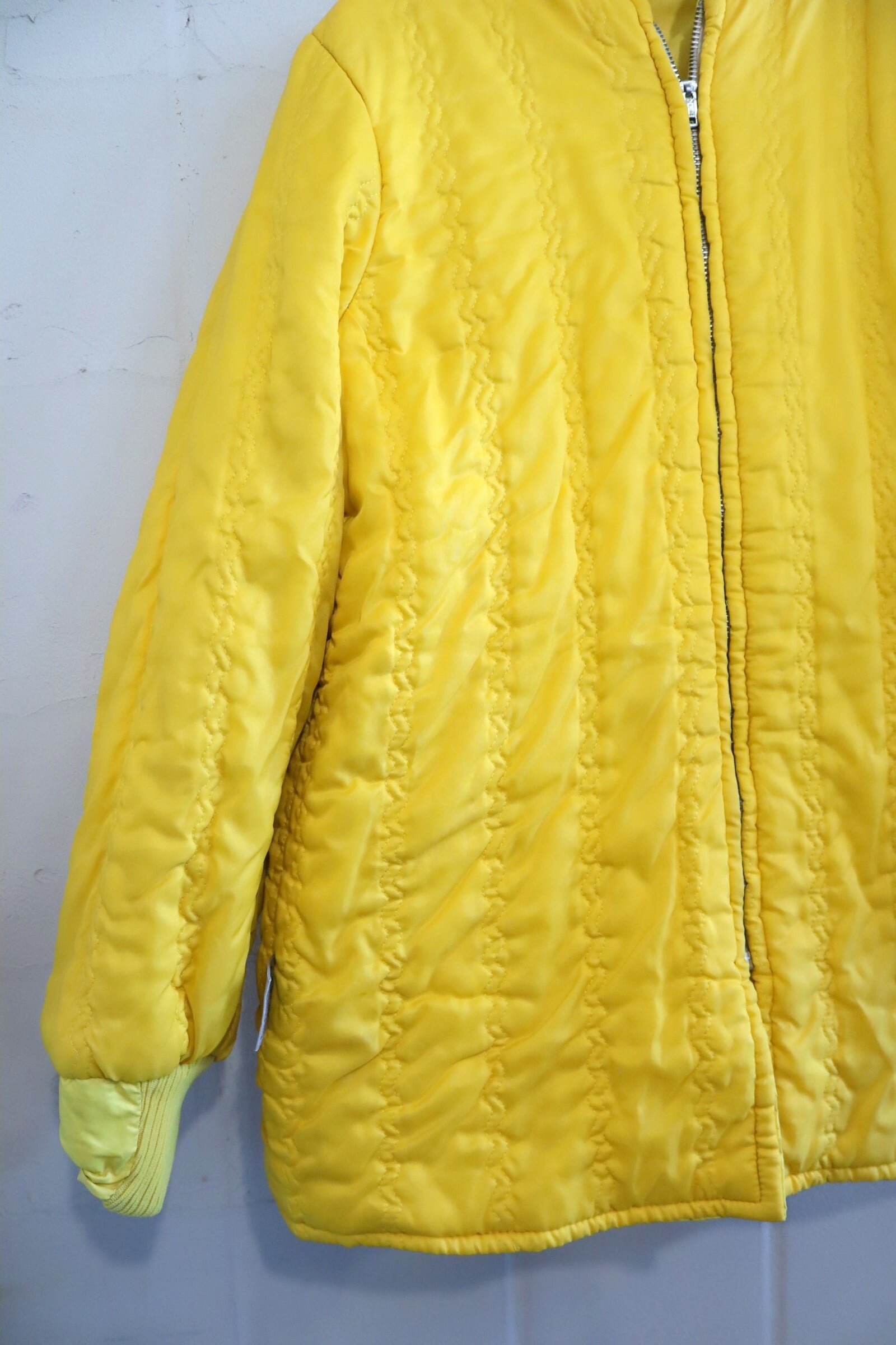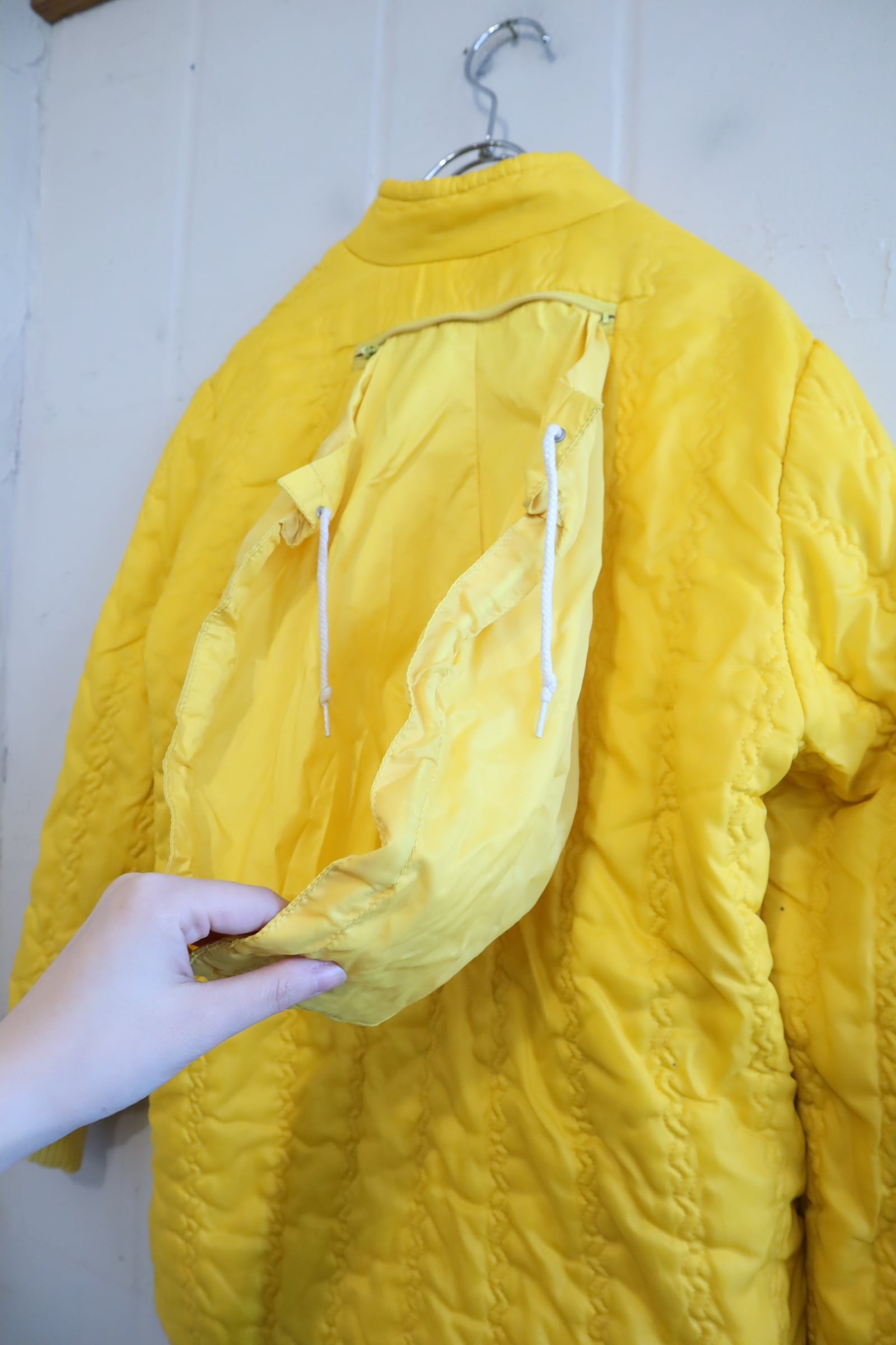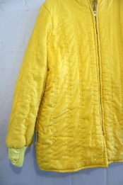 ビビッドイエローにリバーシブルデザインが可愛いキルトジャケット。