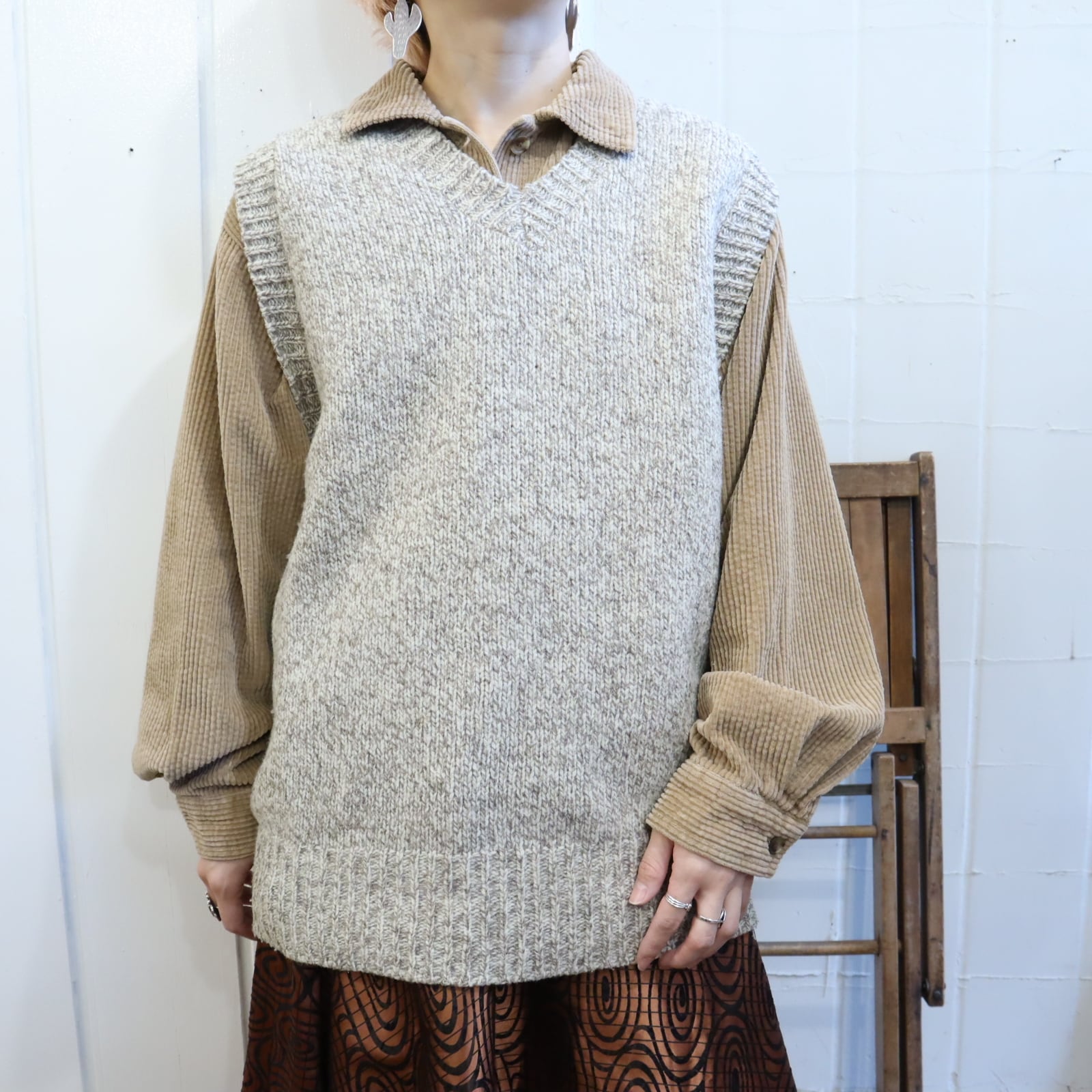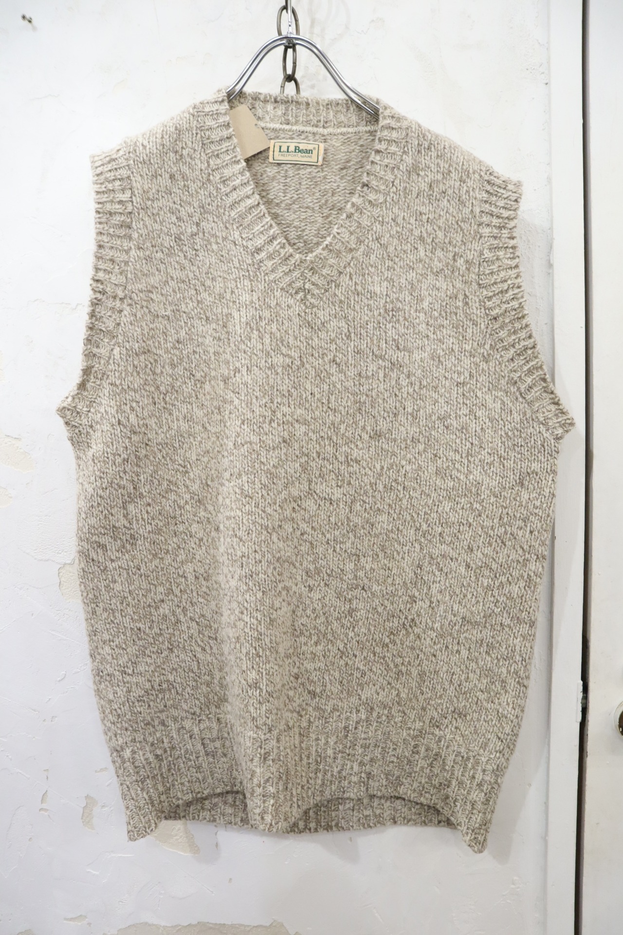 L.L.Bean beige×offwhite knit vest [l-4273]