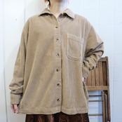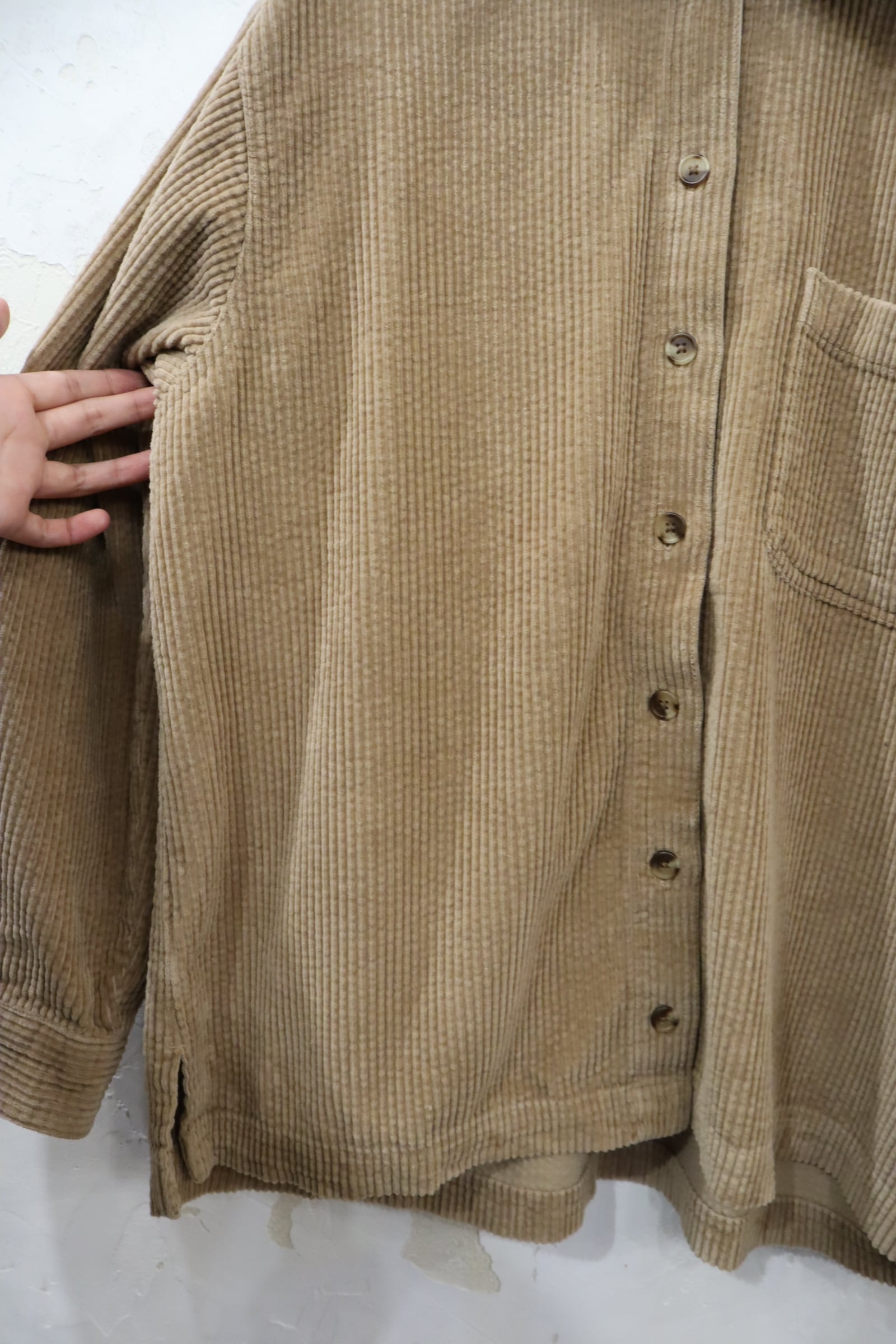 L.L.Bean beige plain corduroy shirt [l-4274]