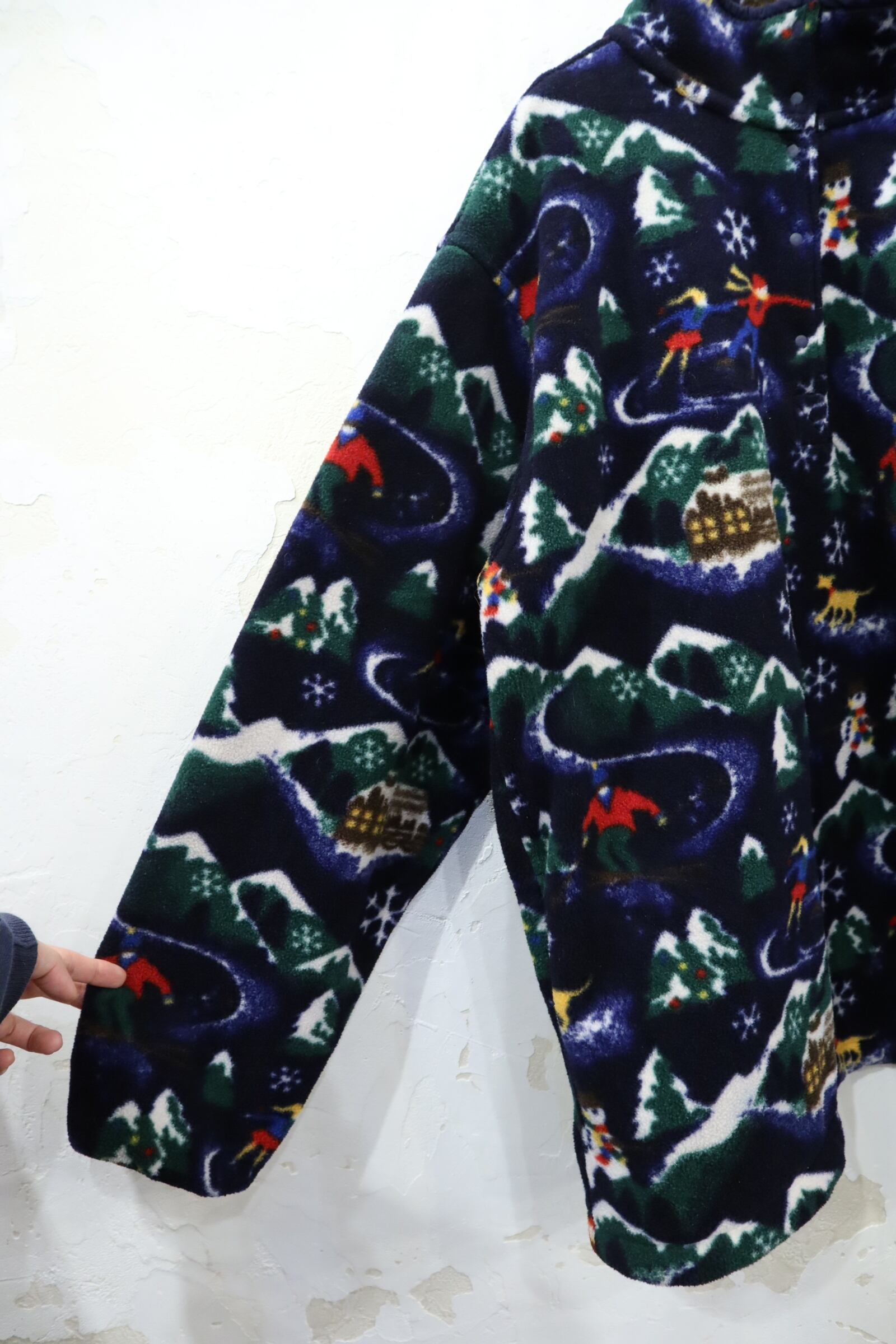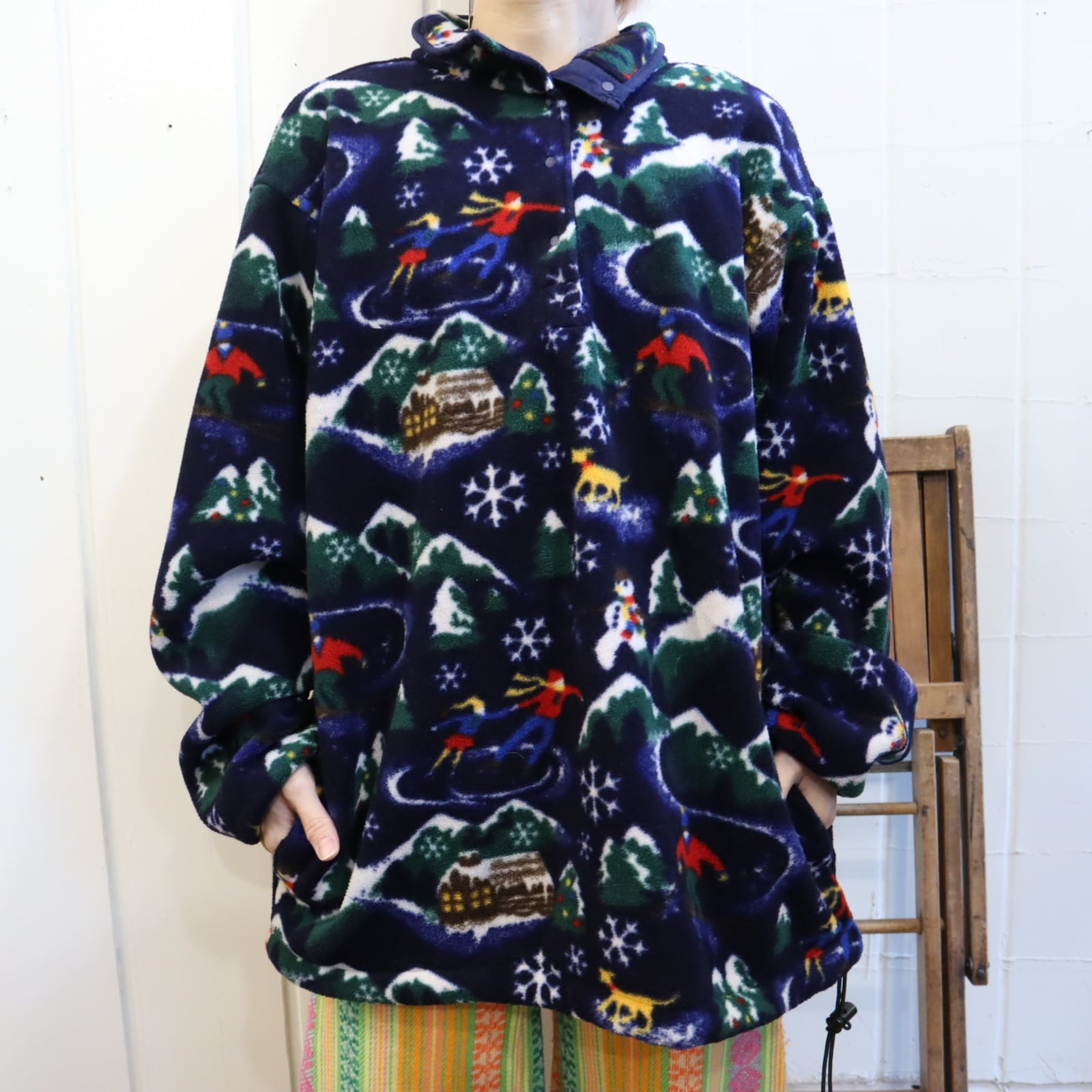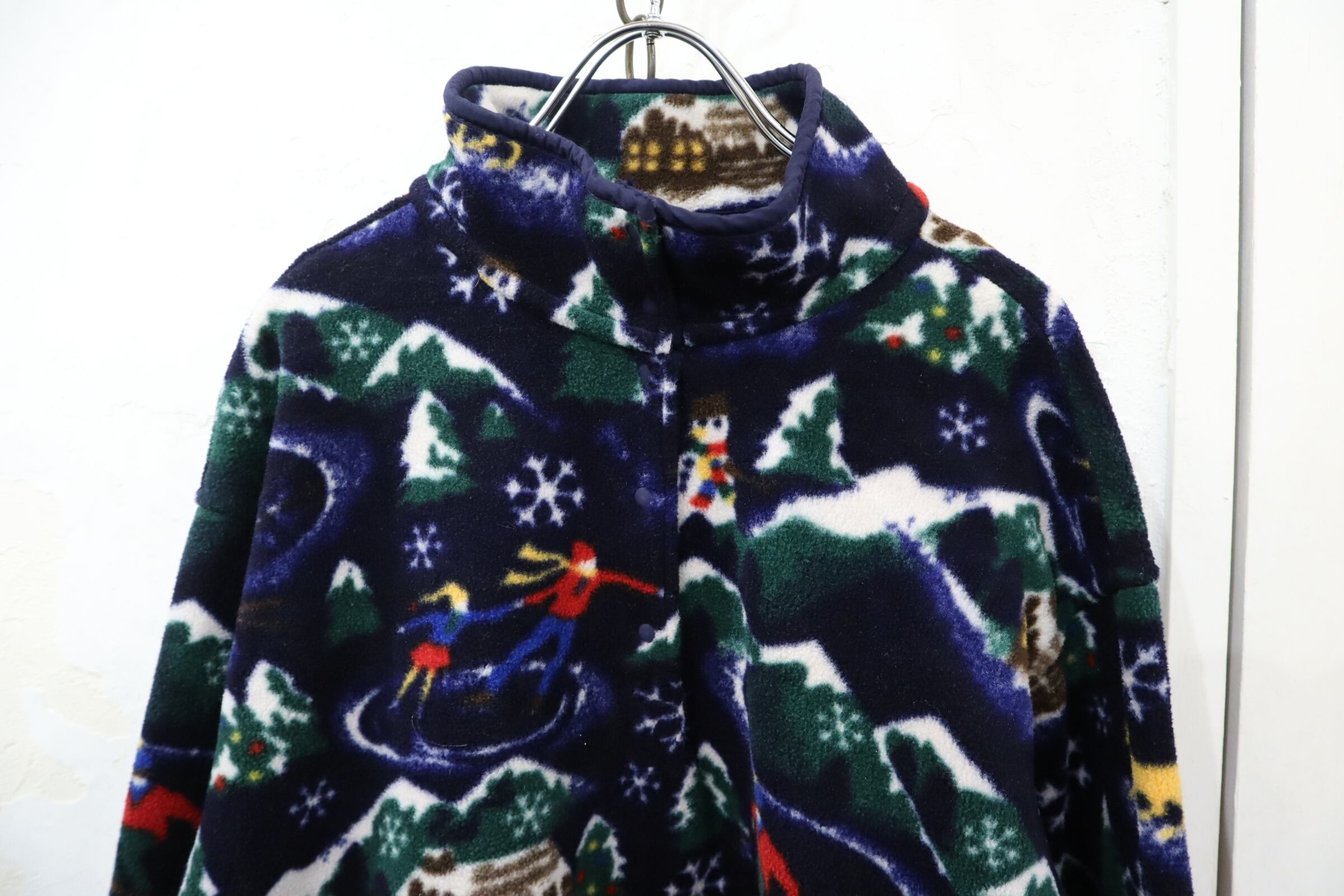 L.L.Bean navy×colorful total pattern fleece [l-4275]
