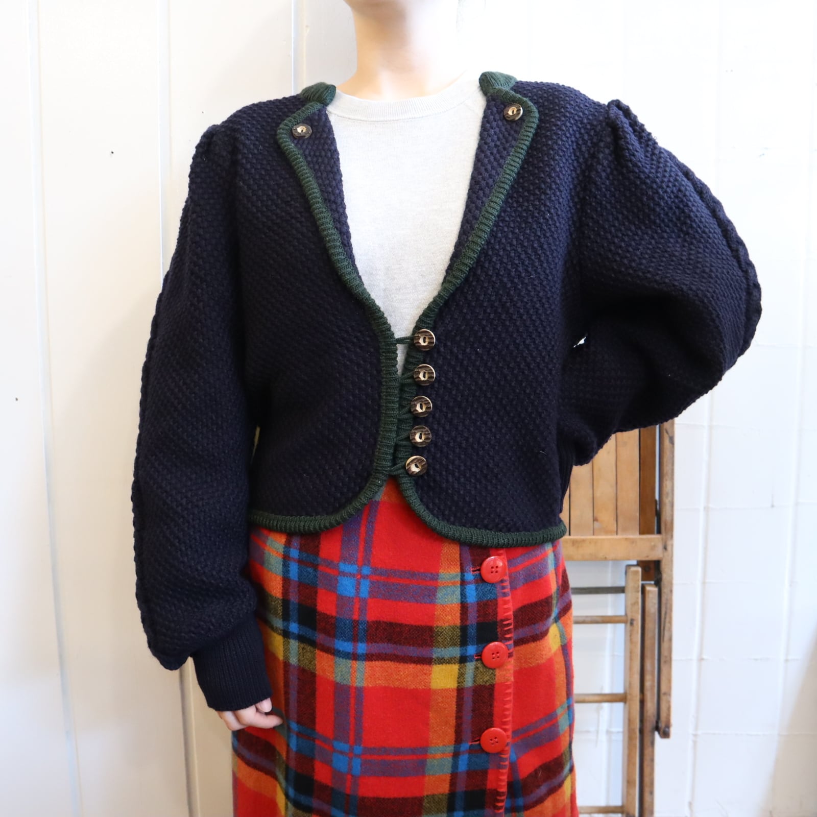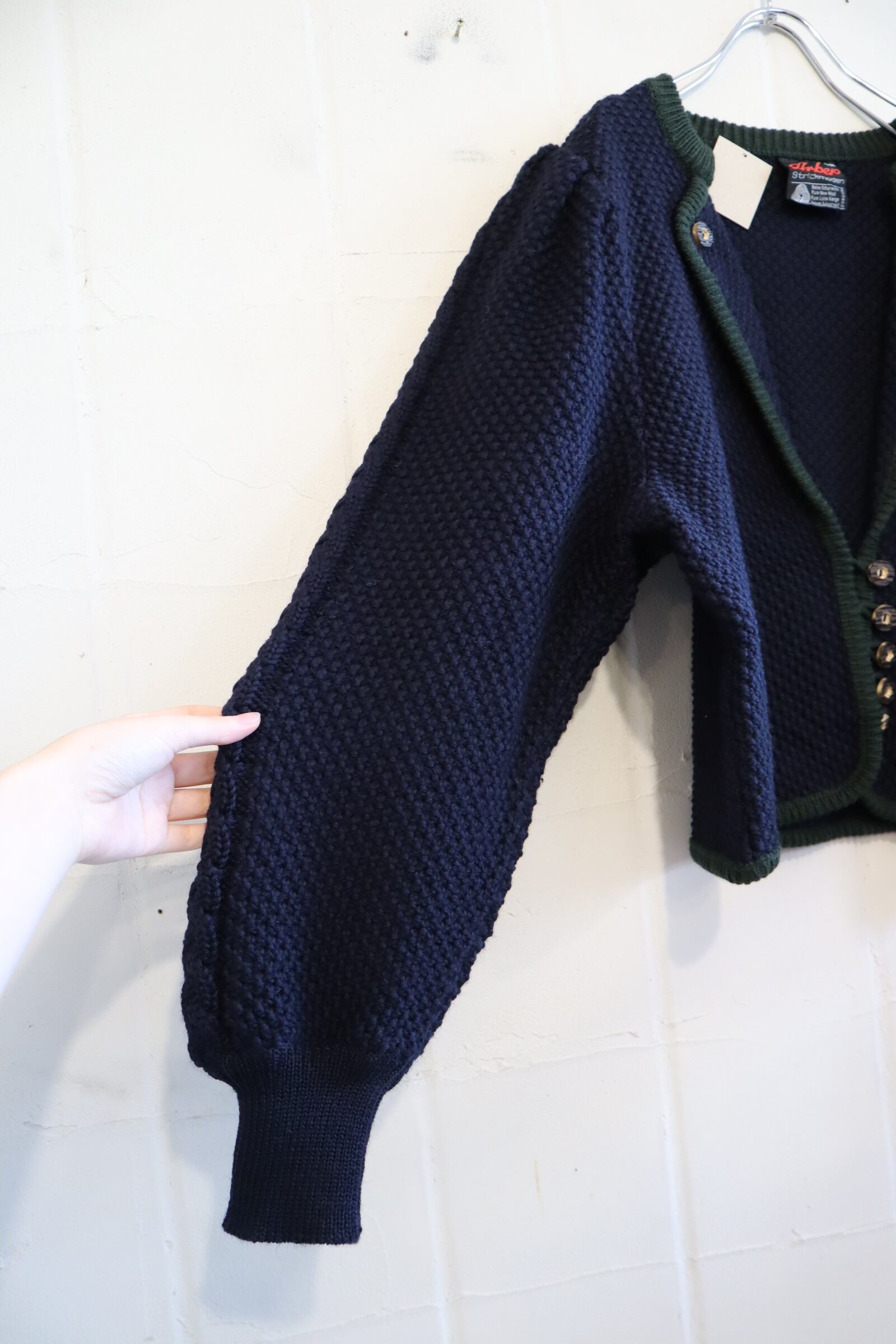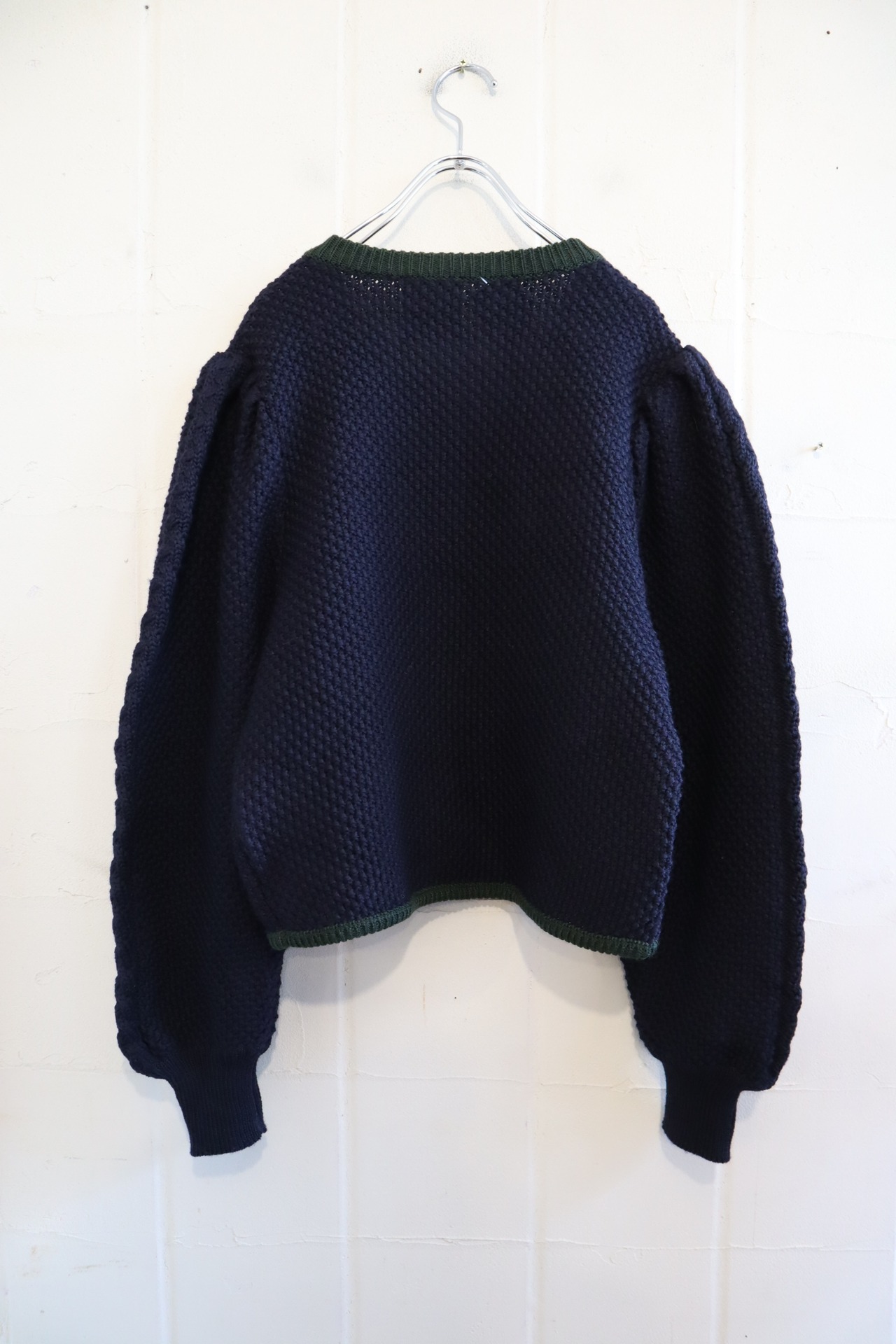 navy×green puffsleeve tyrol knit cardigan [l-4277]