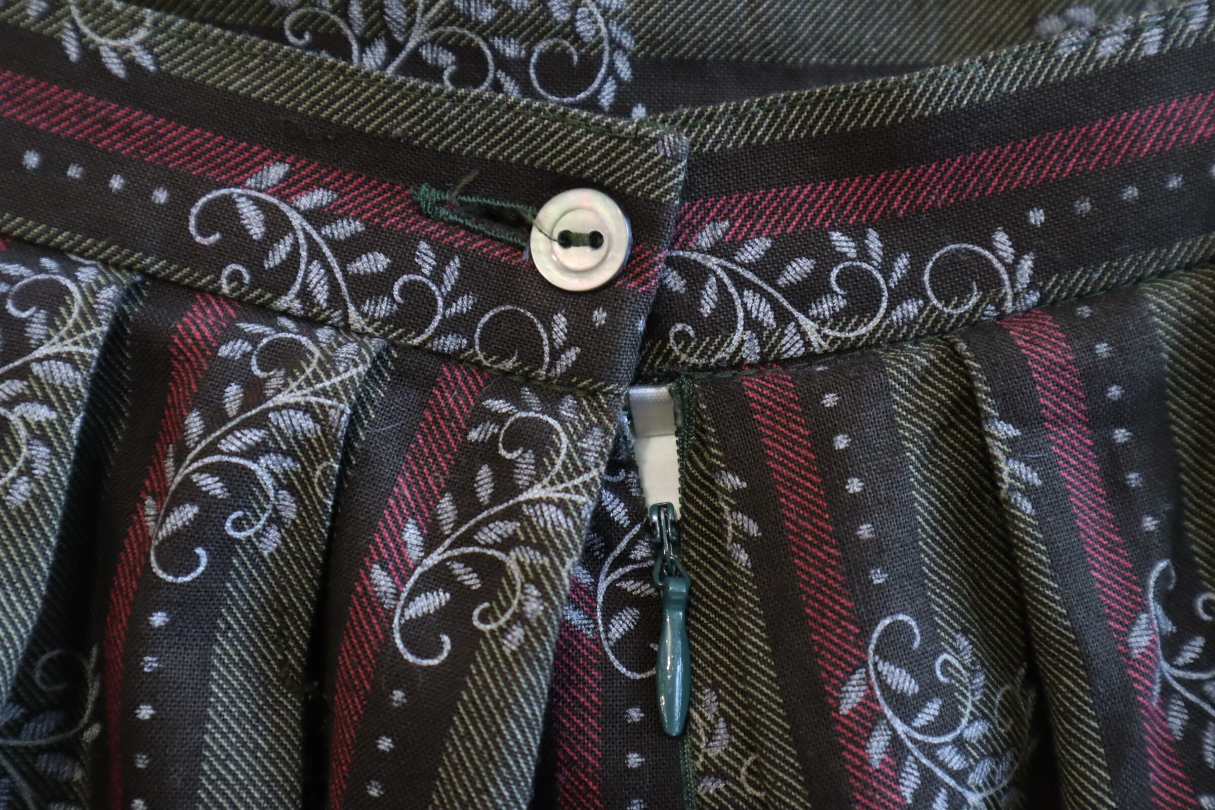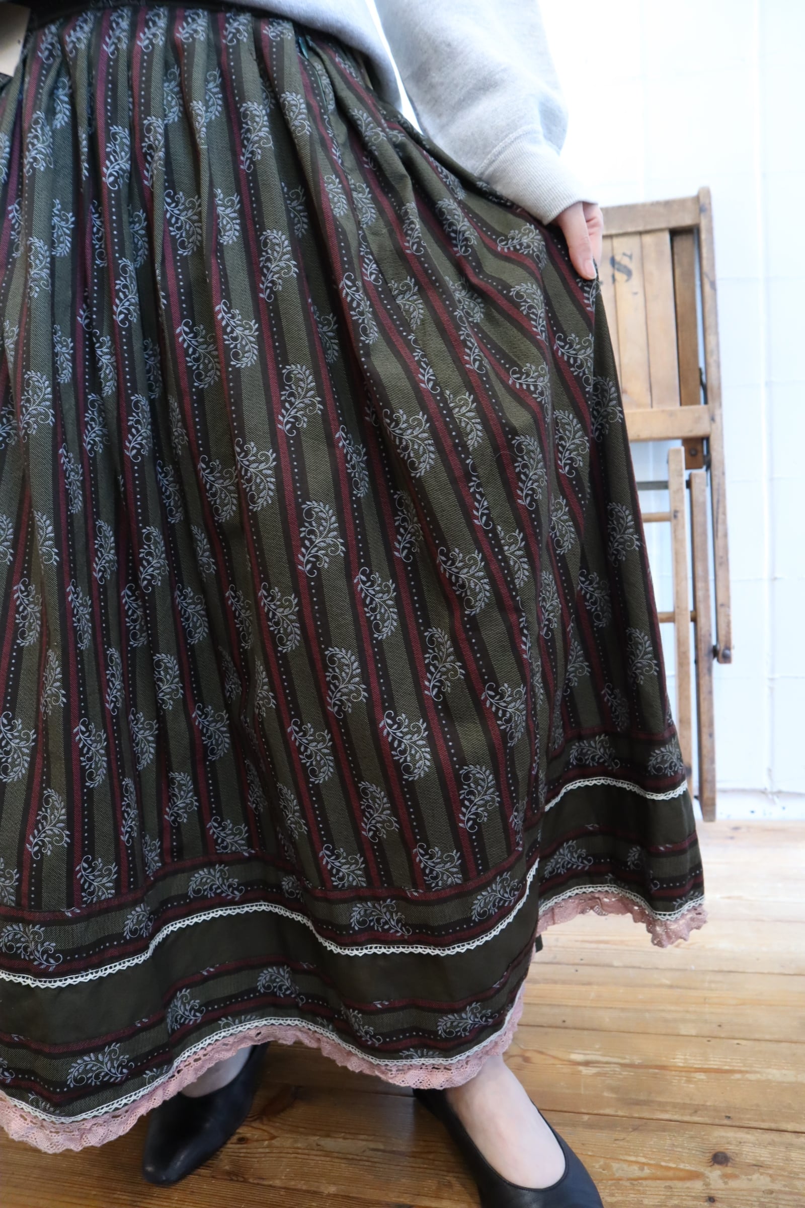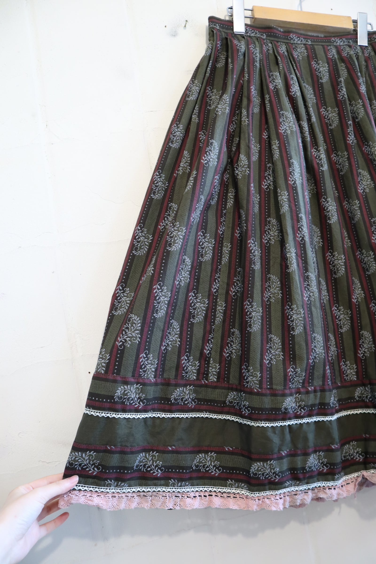olivegreen×dullred×pink stripe & leaf pattern tyrol skirt [l-4279]