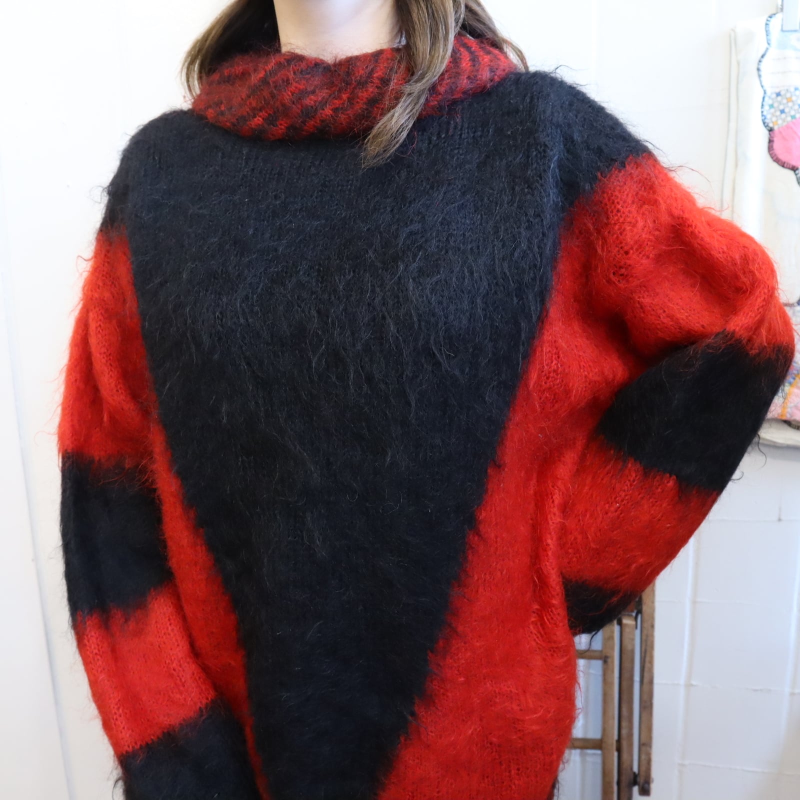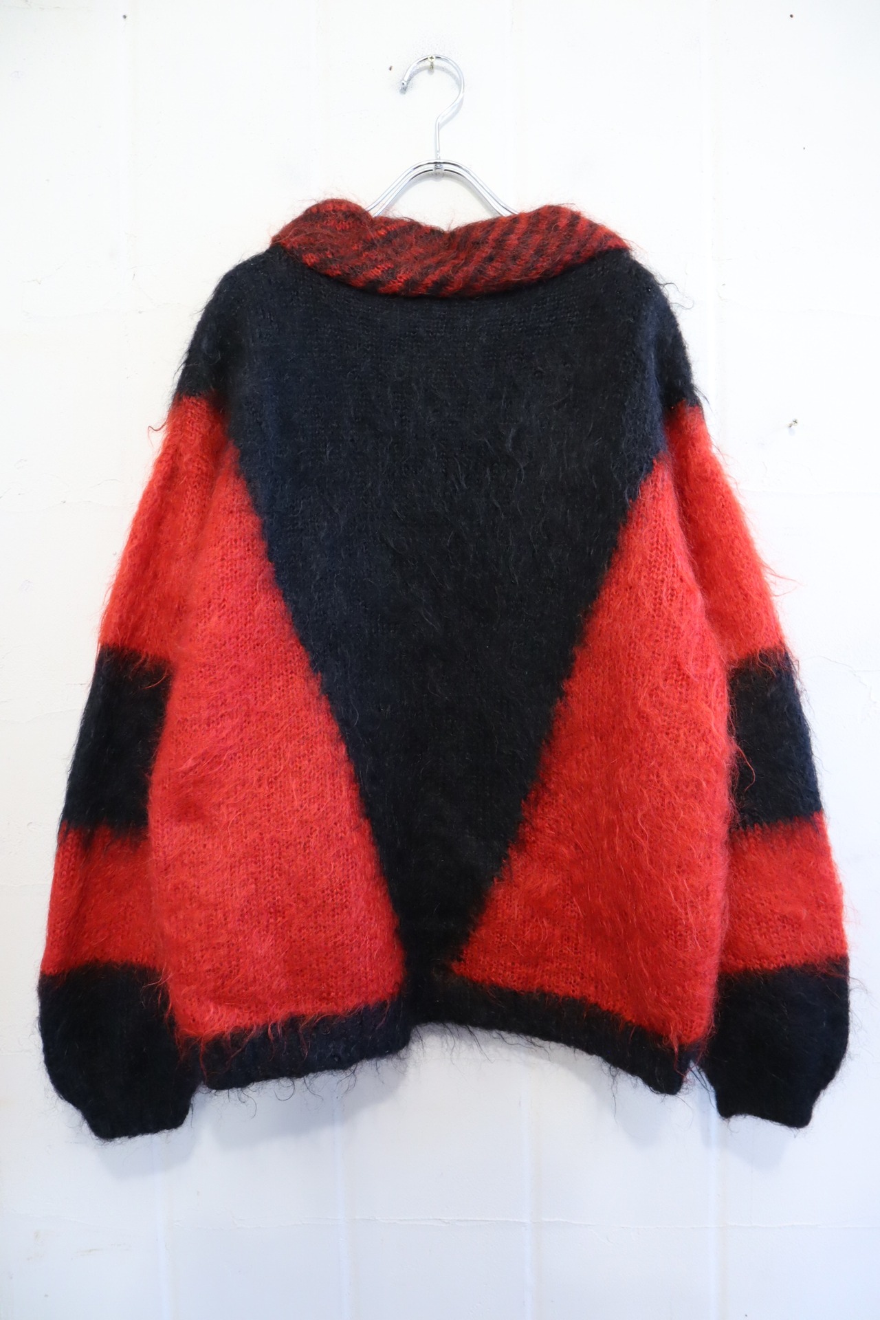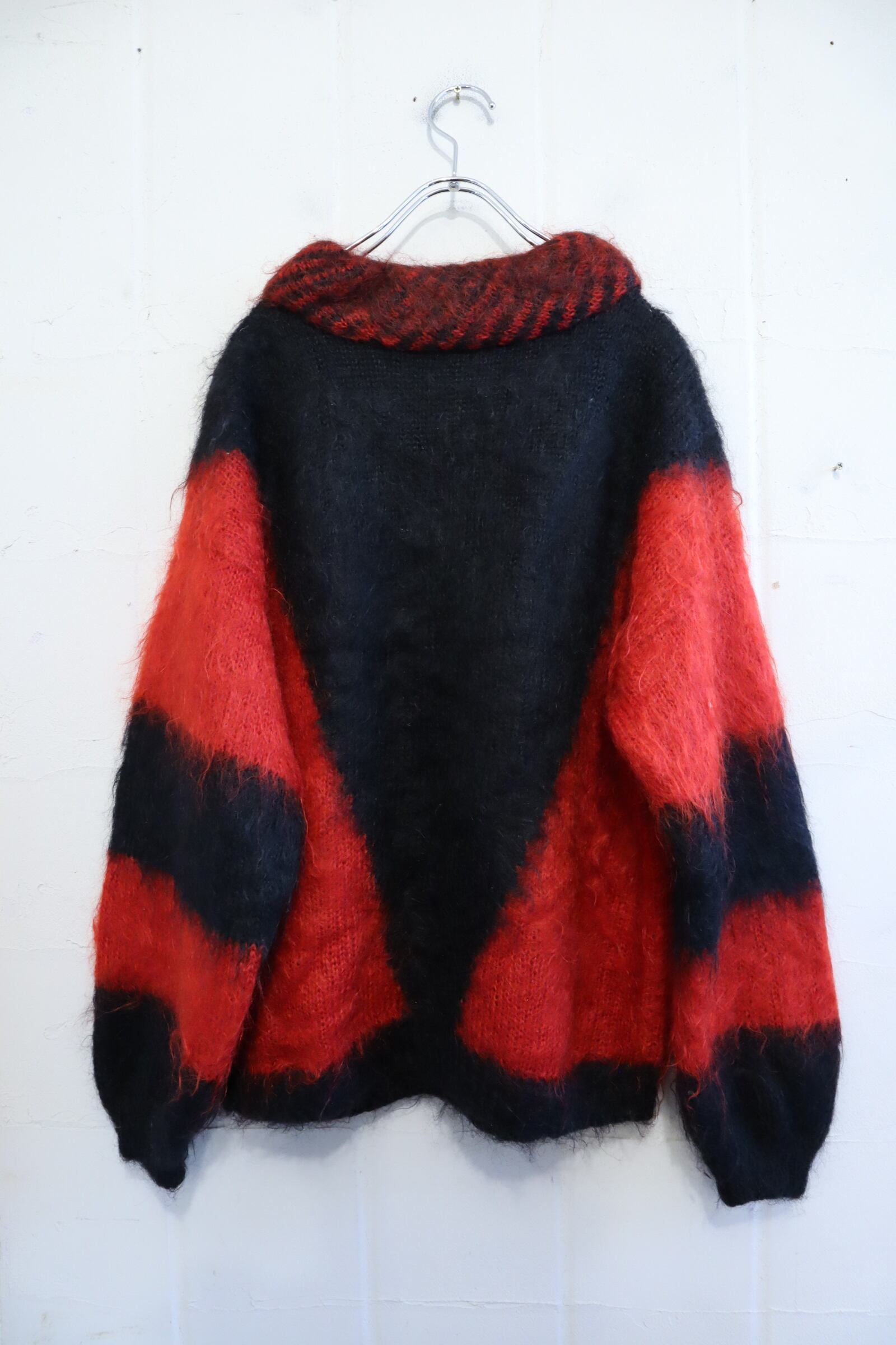 red×black mohair knit pullover [l-4292]