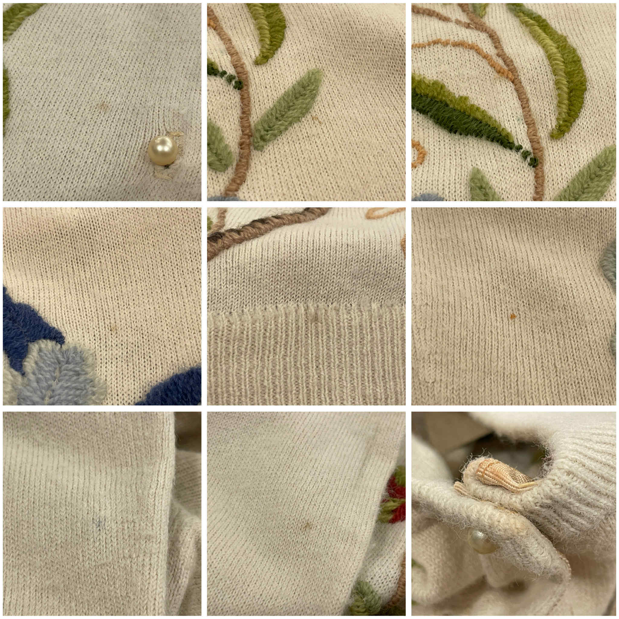 いくつかシミ汚れや汚れ、全体的に糸の毛羽立ちが見受けられますが、古着の味として着て頂けるかと思います。