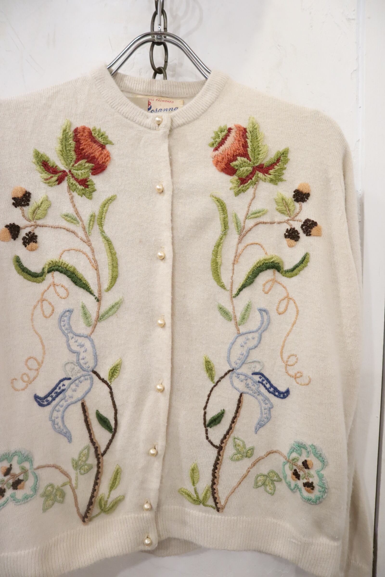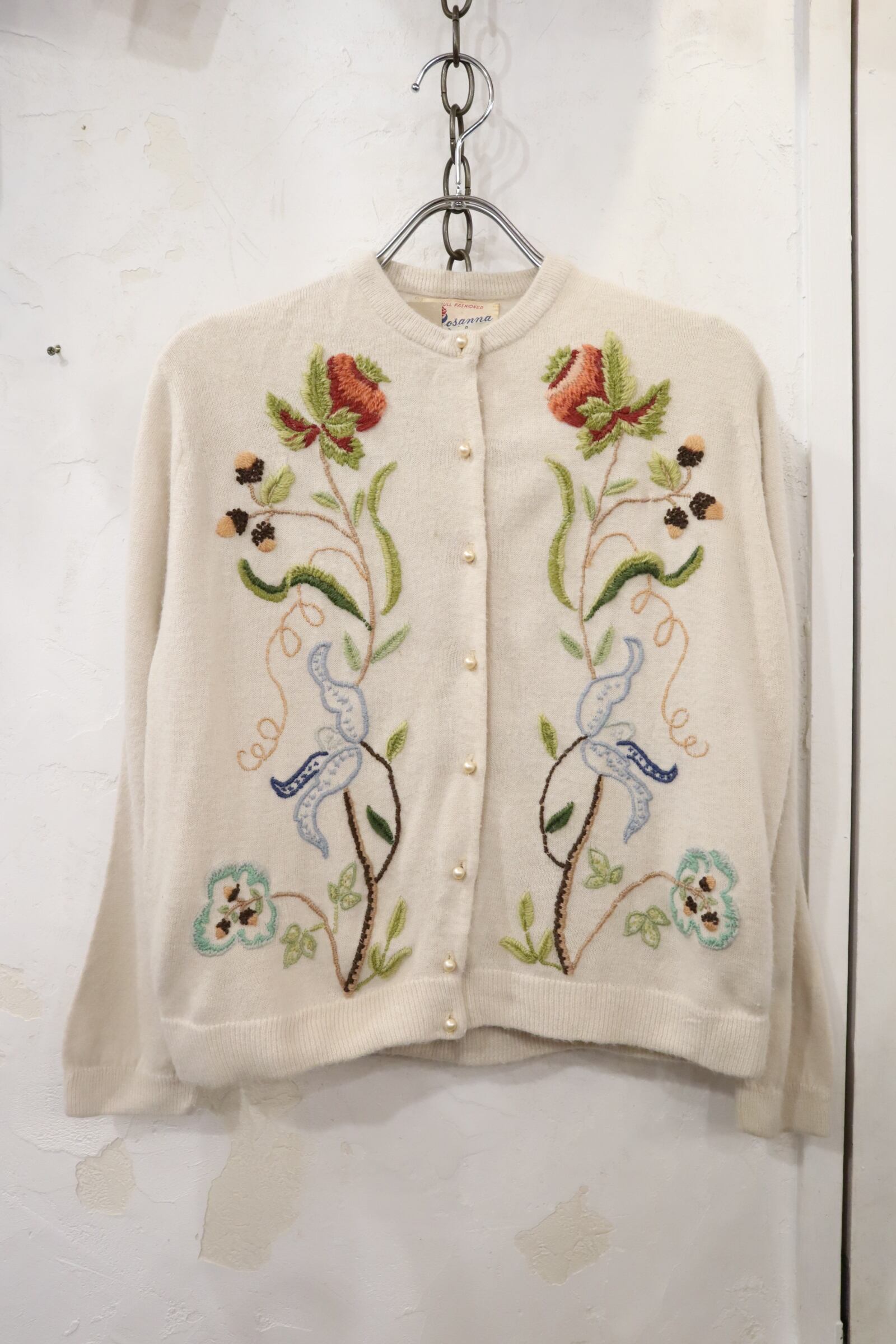 50s offwhite×colorful flower embroidery knit cardigan [l-4295]