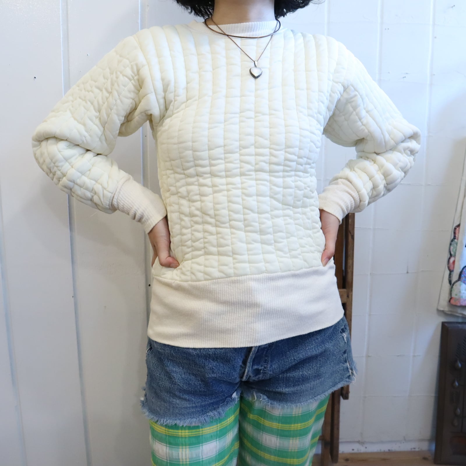 70s TOWNCRAFT white quilting thermal tops [k-4301]