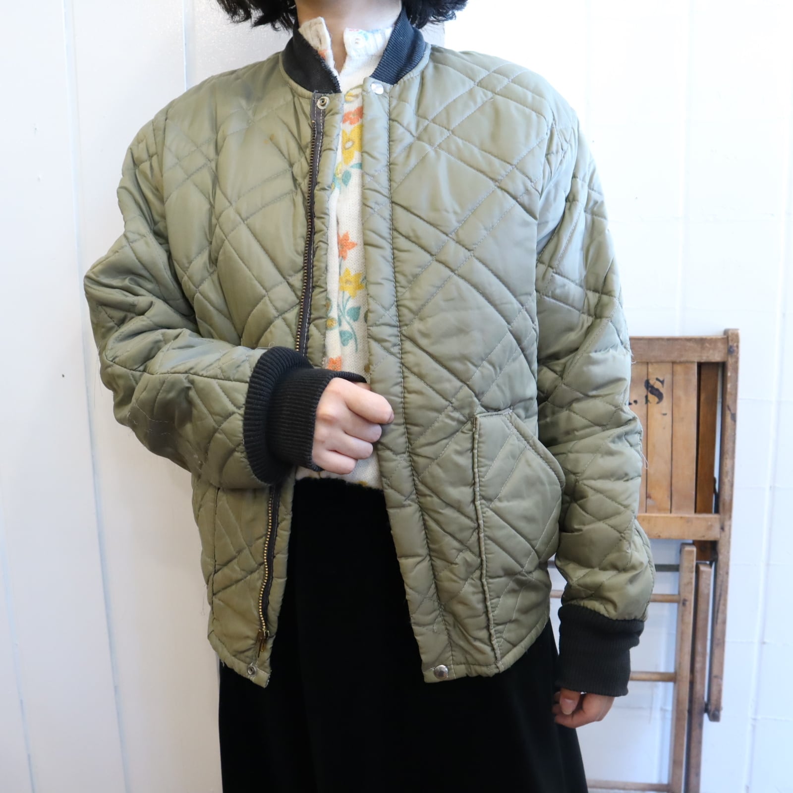 60s TOWNCRAFT khaki plain quilting jacket [l-4303]