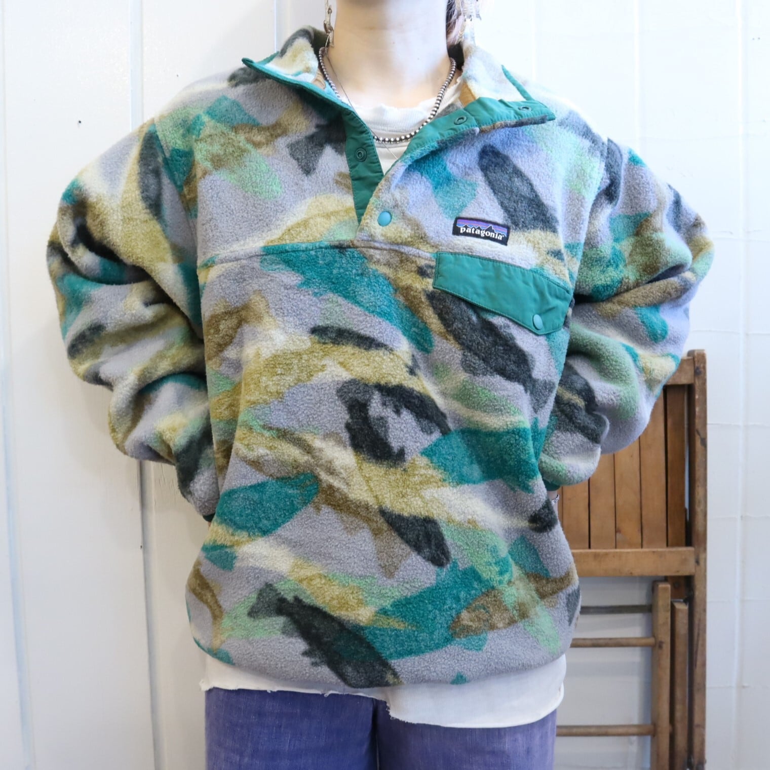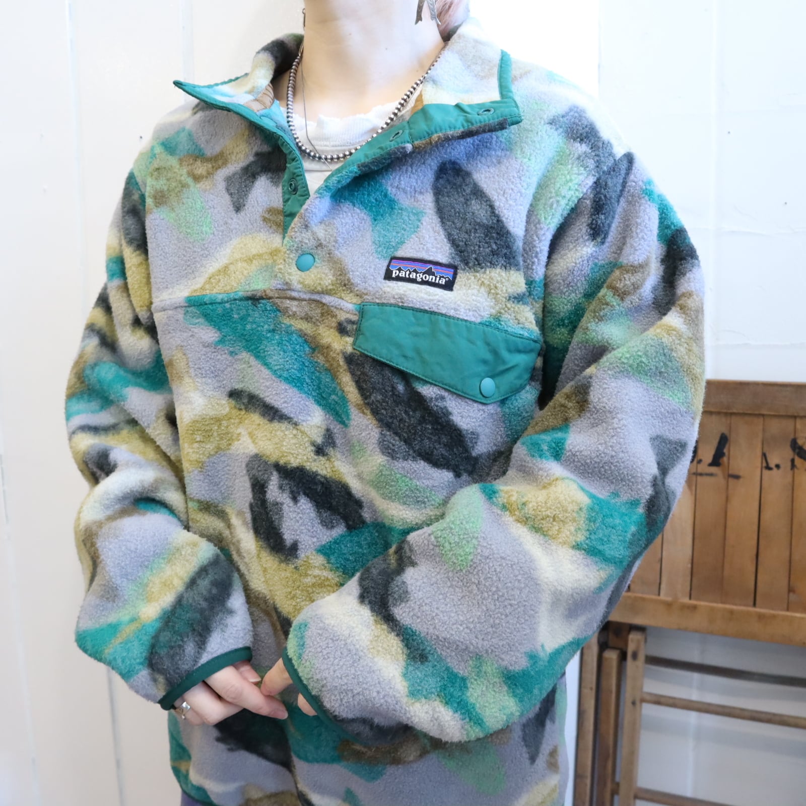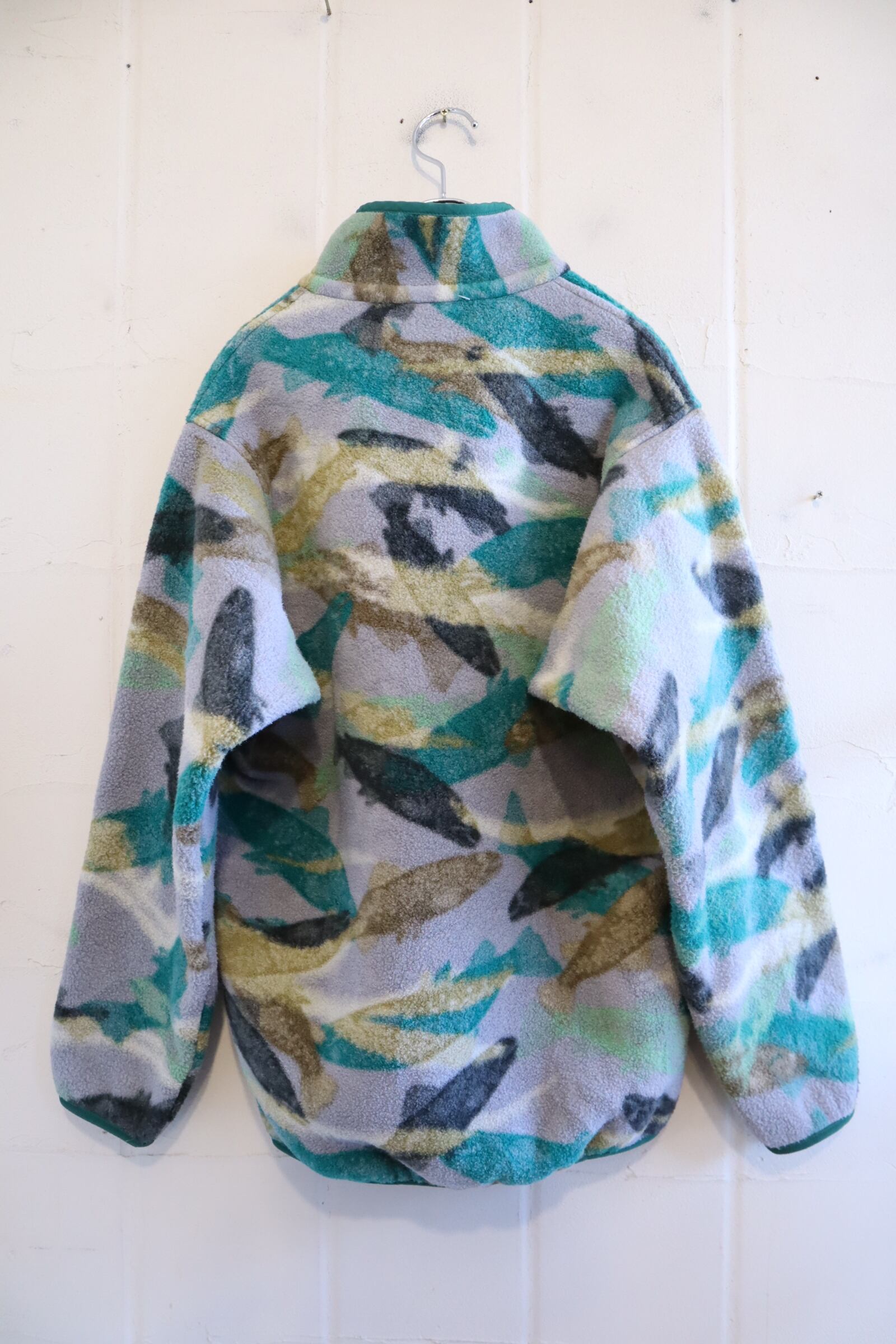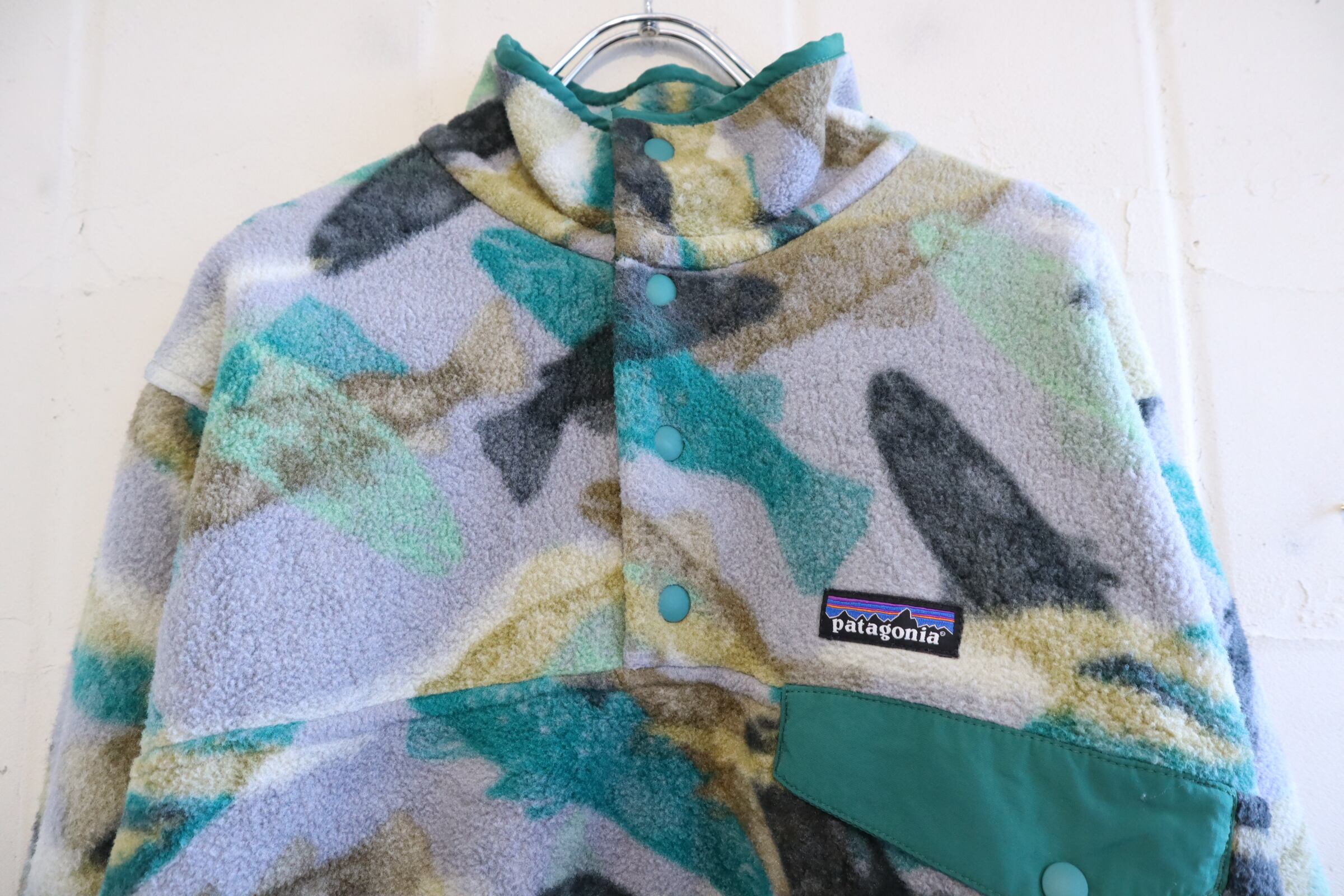 Patagonia lightgray×green fish pullover snap-t fleece [l-4306]