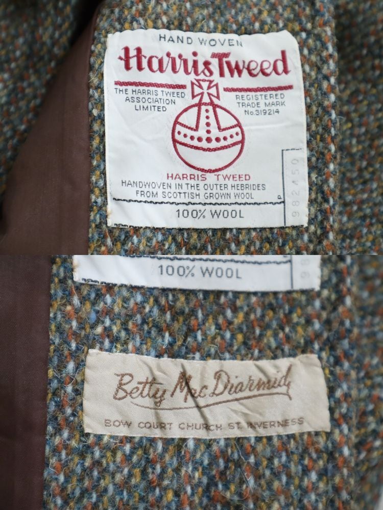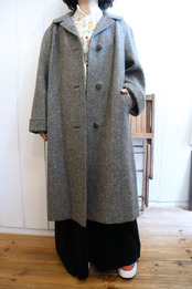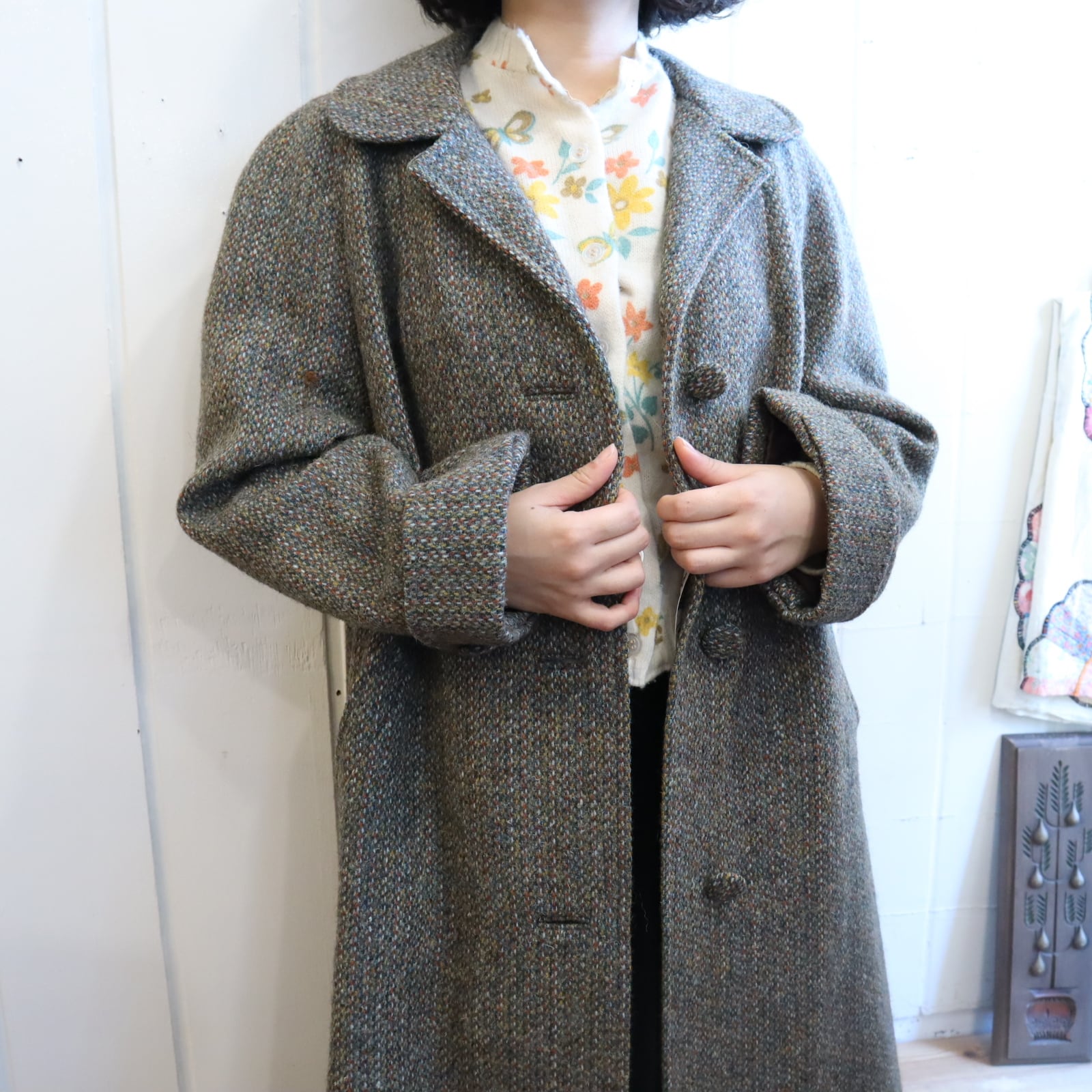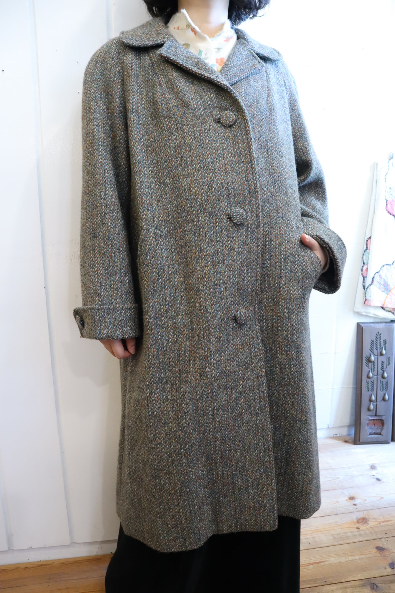 Harris Tweed green×mixcollar wool coat [l-4311]