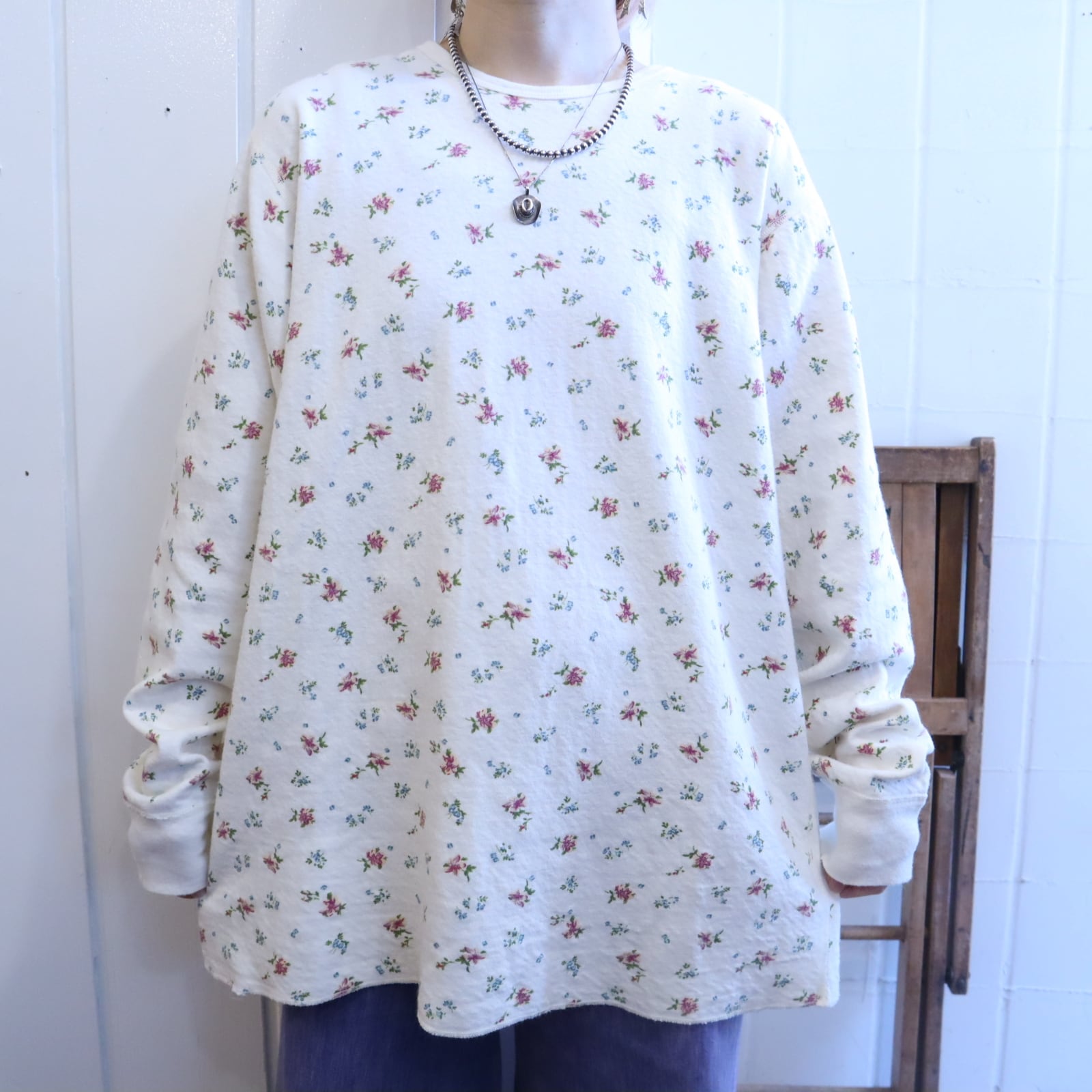 L.L.Bean white×purple×green flower pattern thermal tops [l-4318]