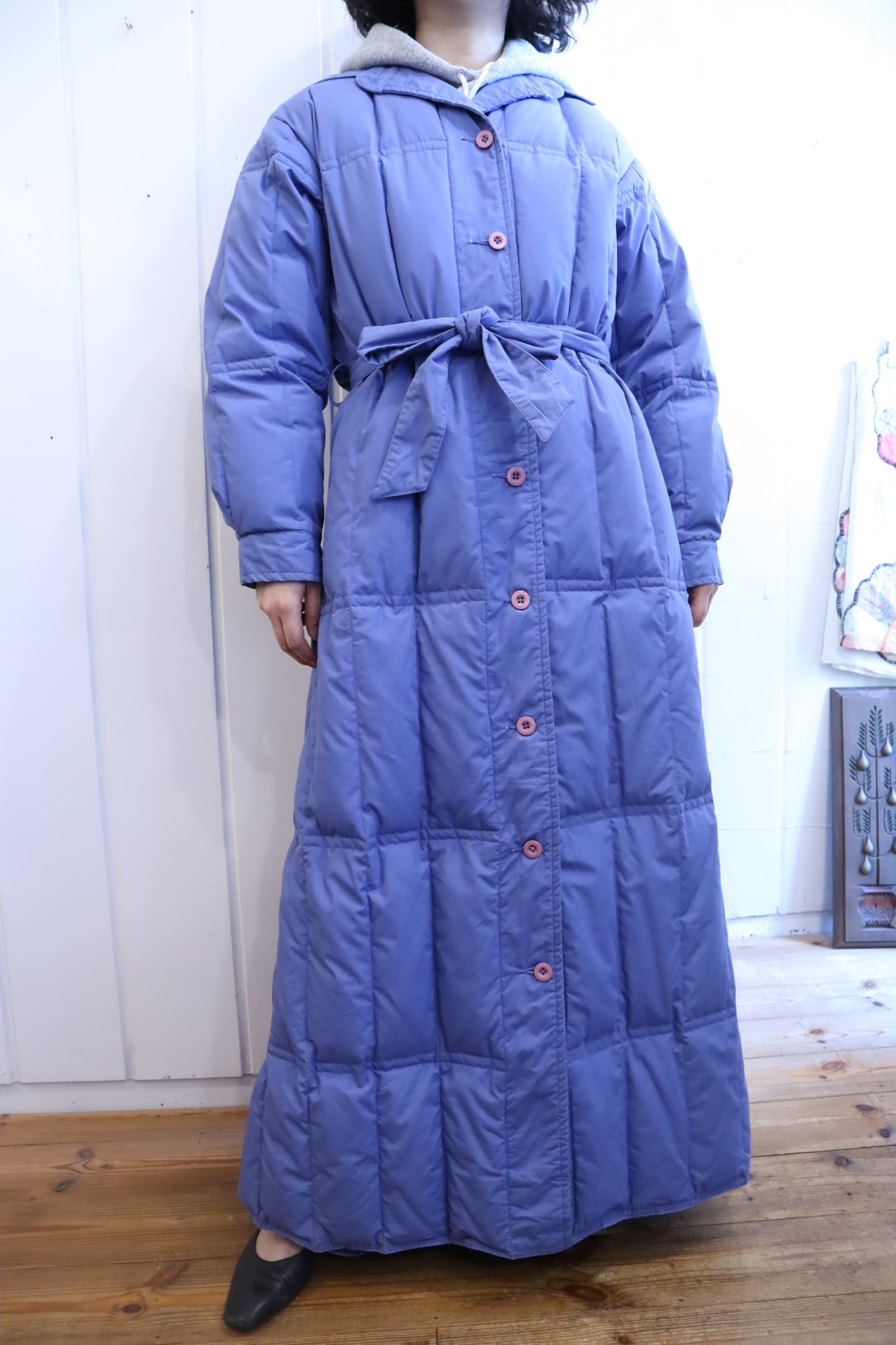 古着らしい絶妙なカラーが素敵な一枚。デザイン性もありながら、足元まで暖かいのが嬉しいポイントです◎