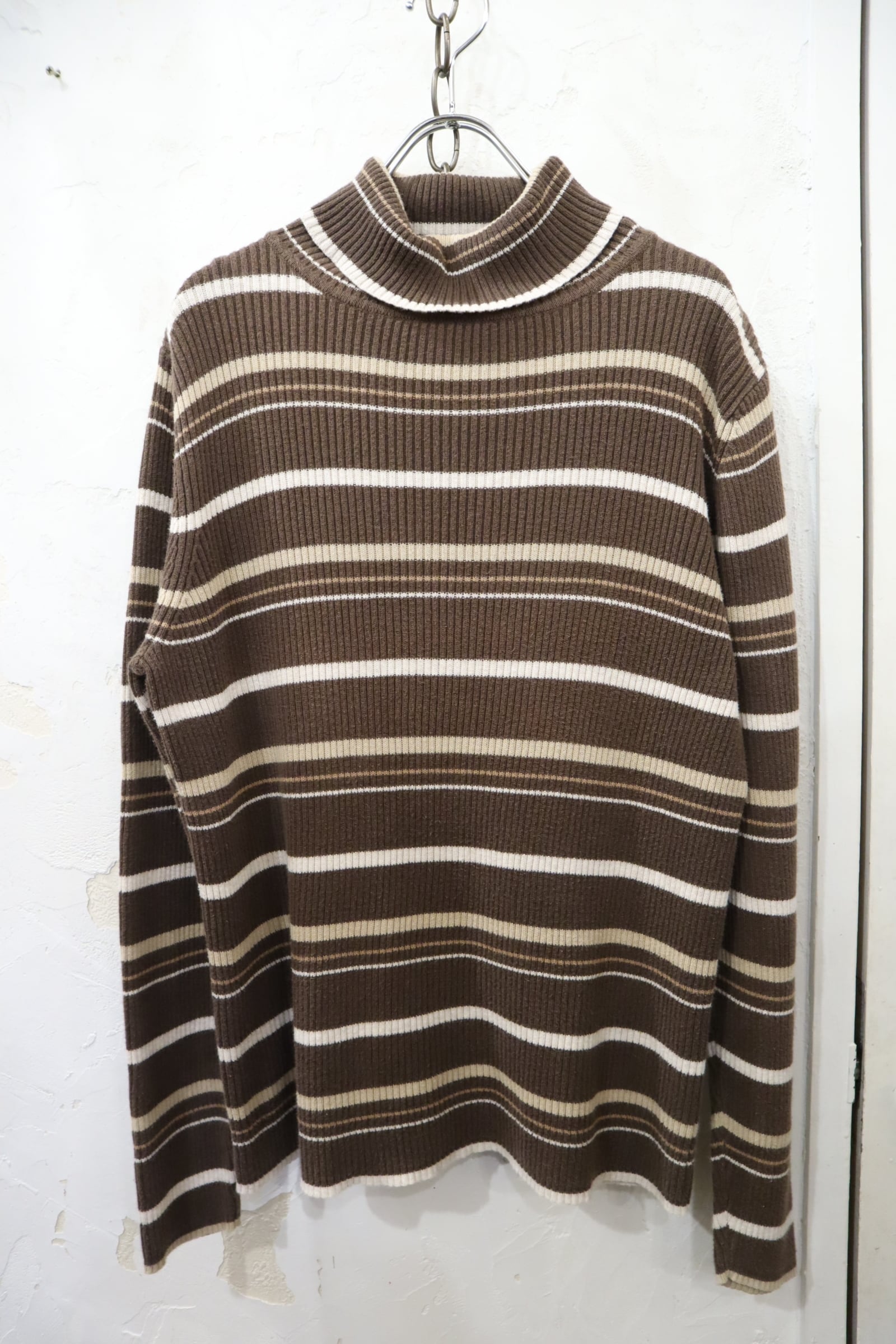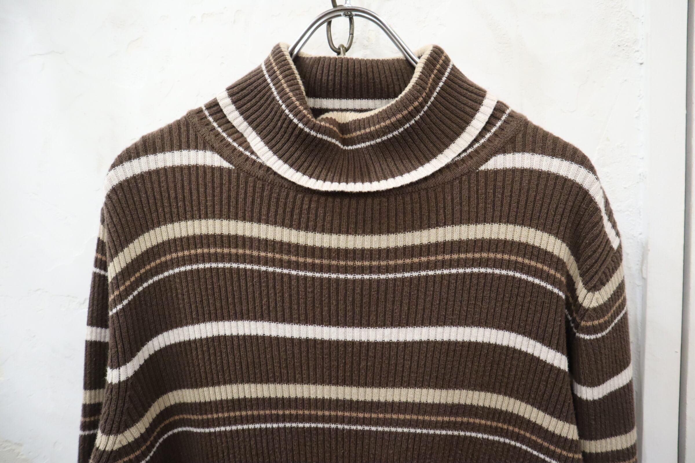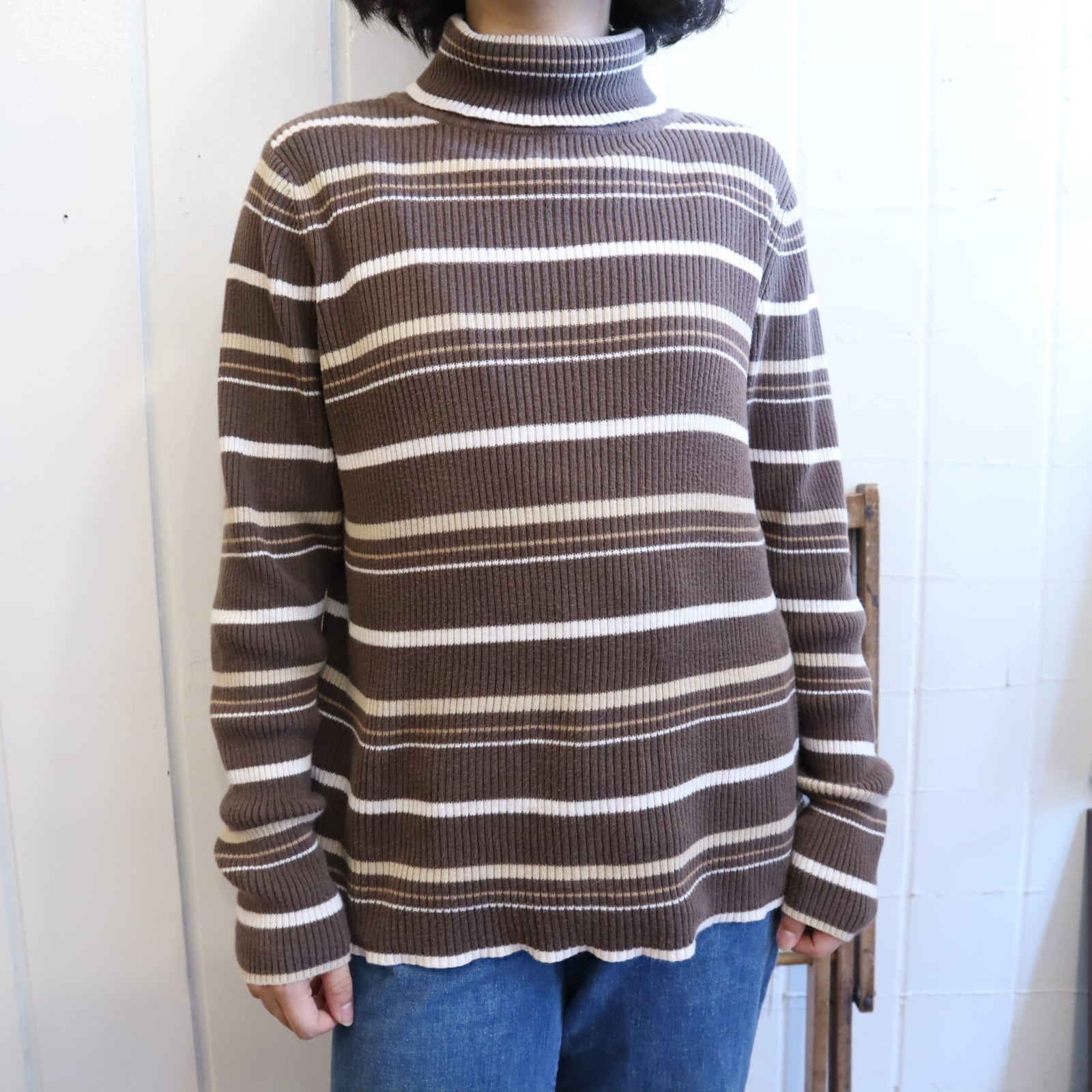 マルチボーダーが可愛いタートルネックプルオーバー。