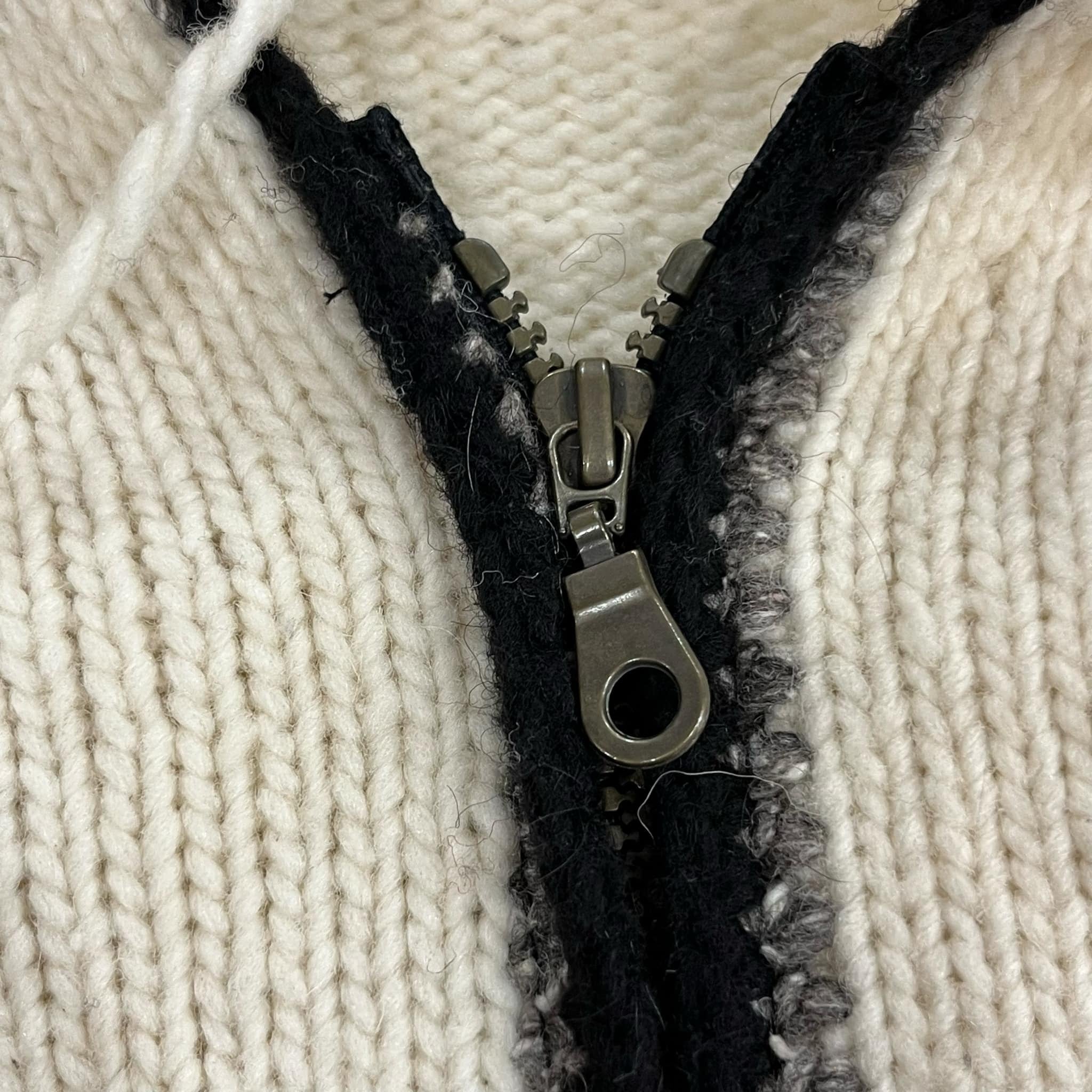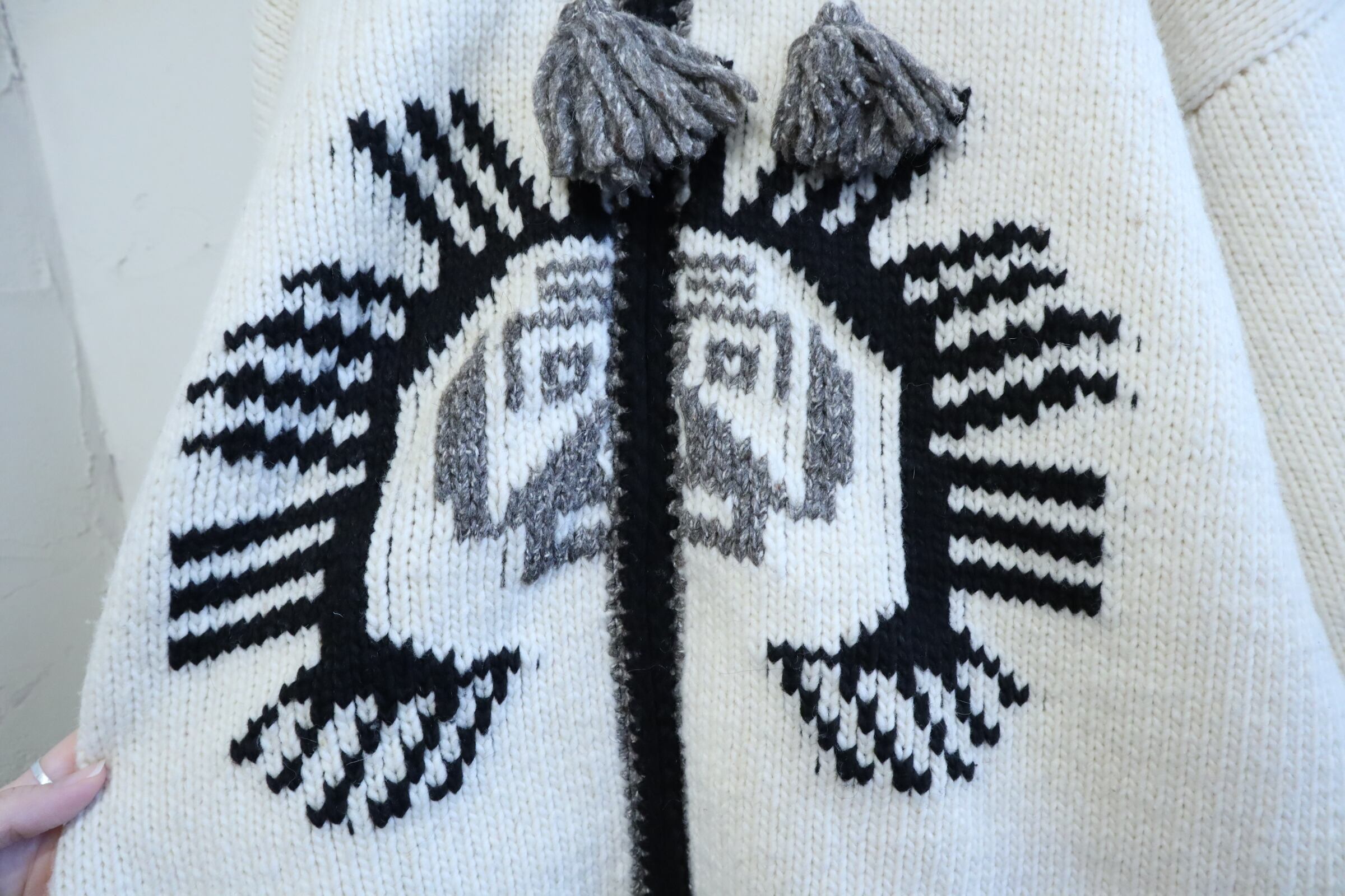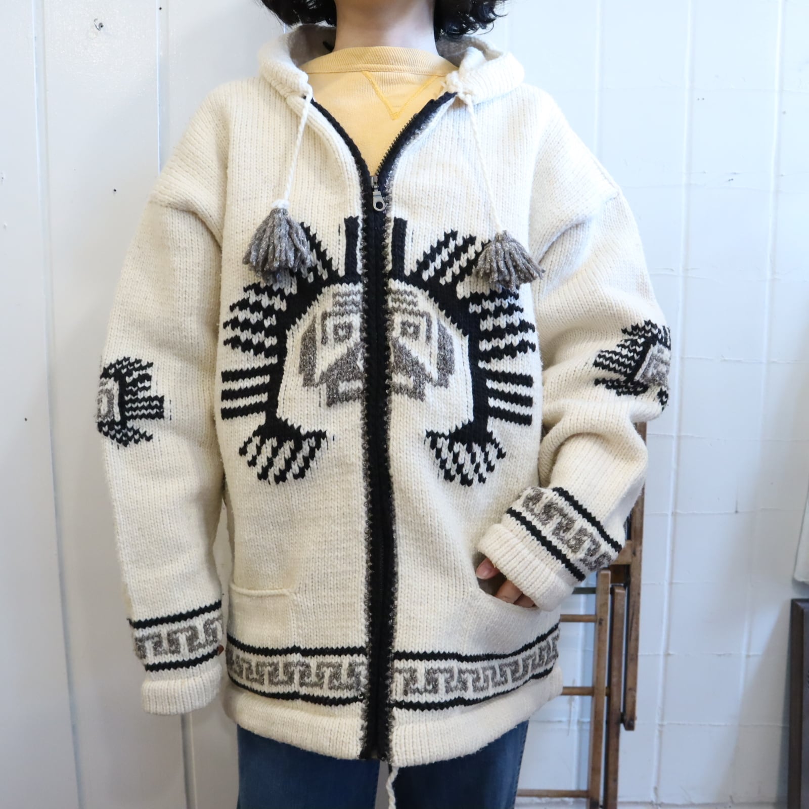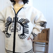 民族モチーフが可愛いフード付きニットカーディガンです。