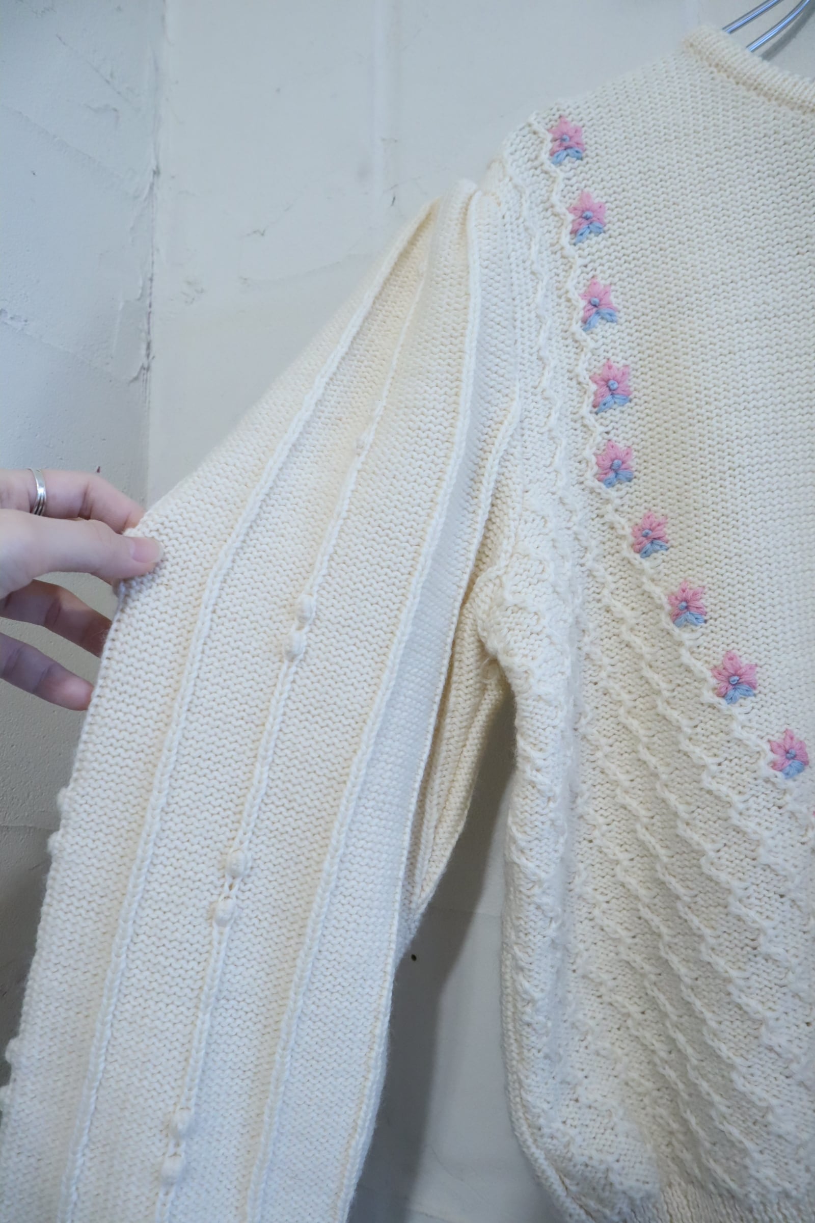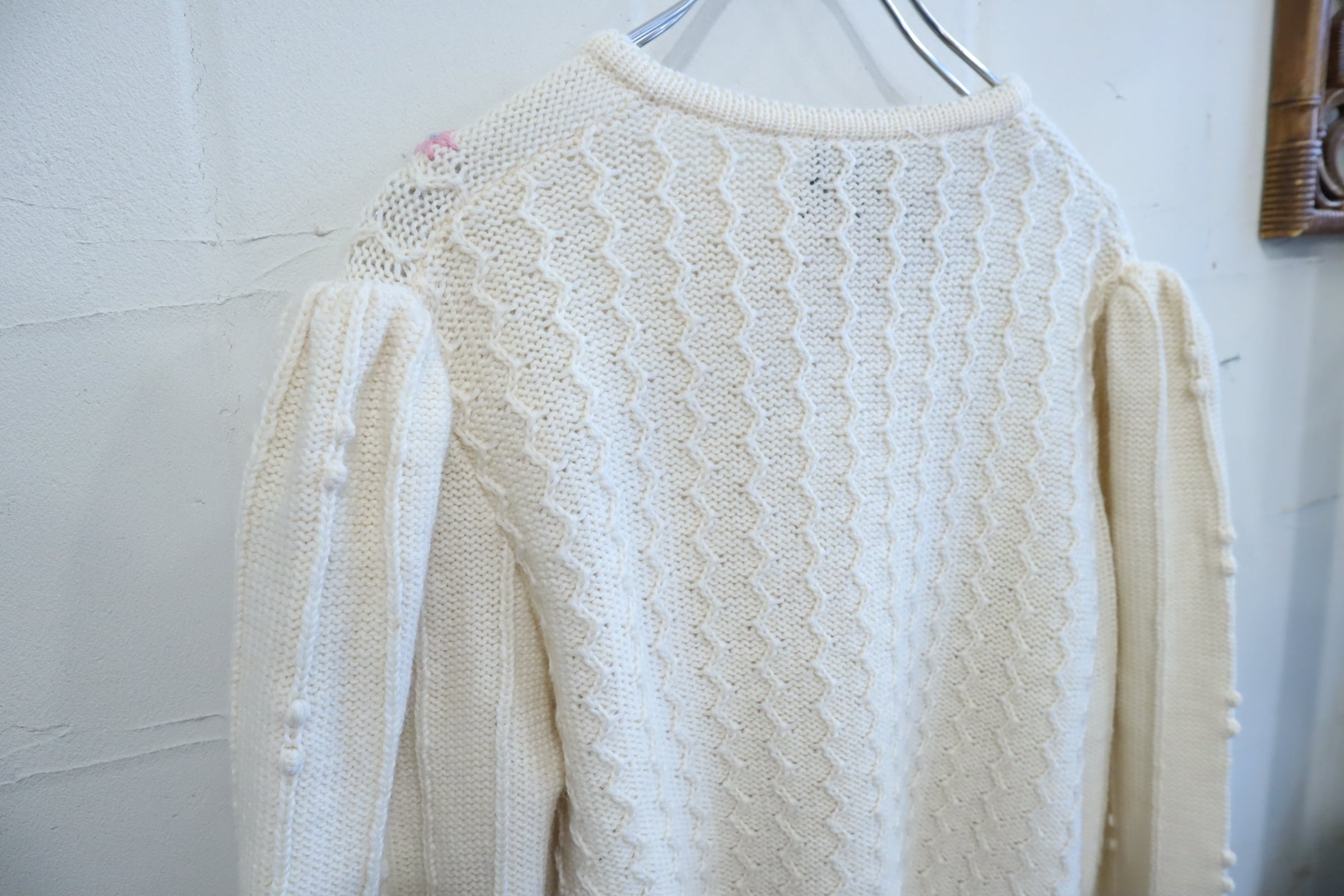 ivory×pink×lightblue flower embroidery tyrol knit cardigan [l-4328]
