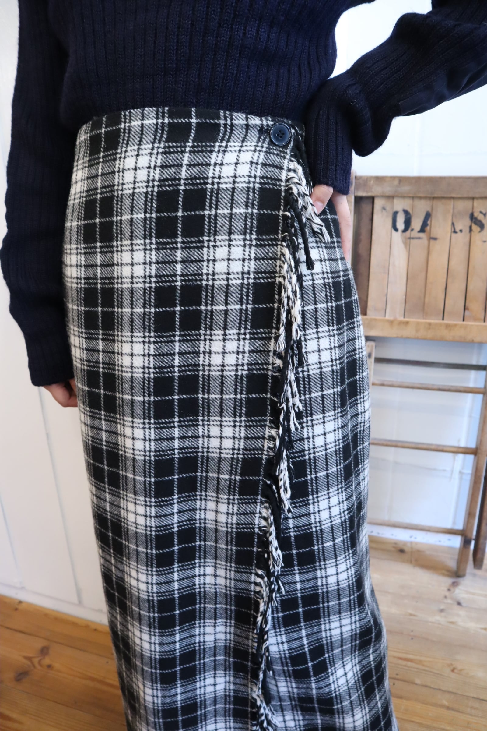 シンプルなシルエットに大きなチェック柄が映えて素敵なラップスカート*