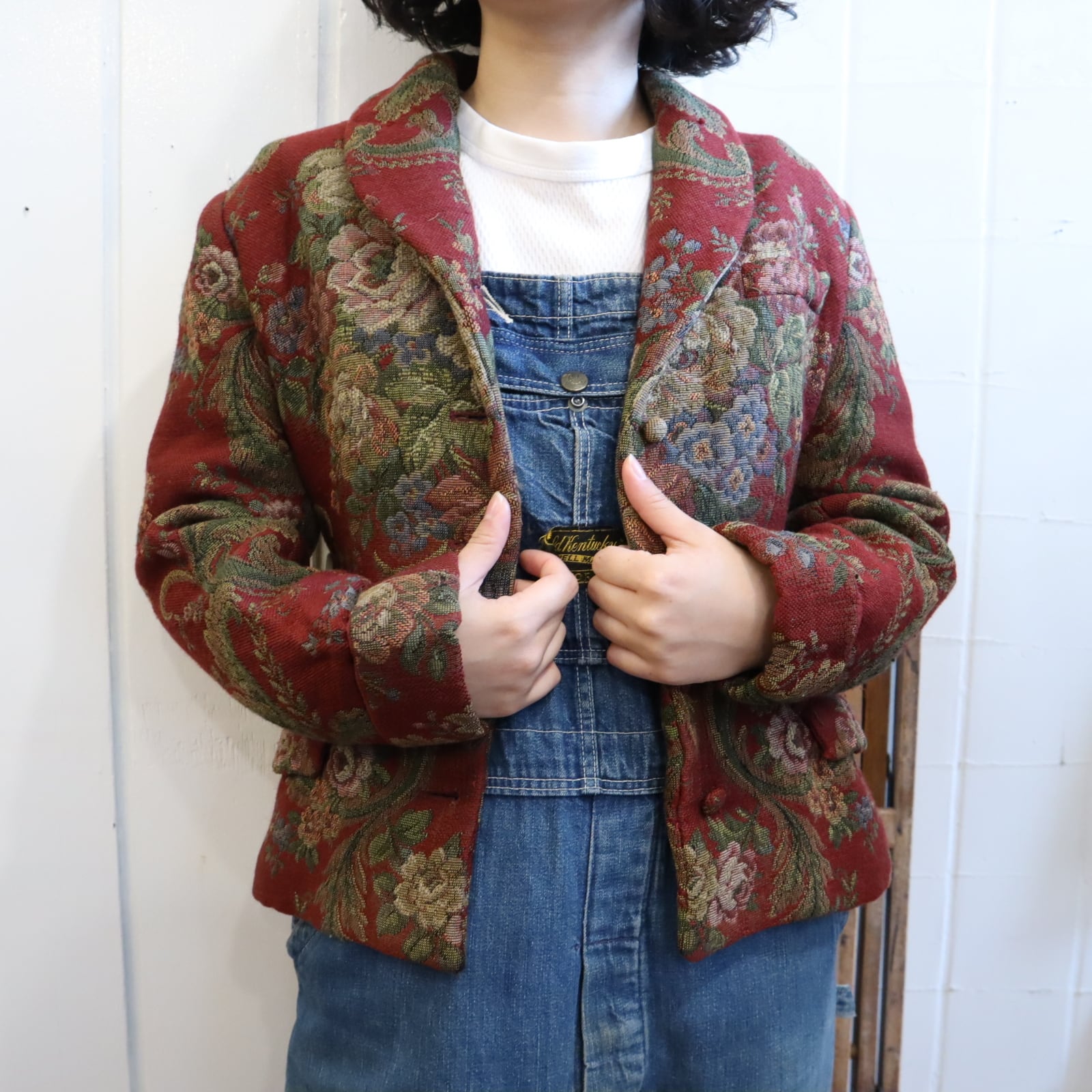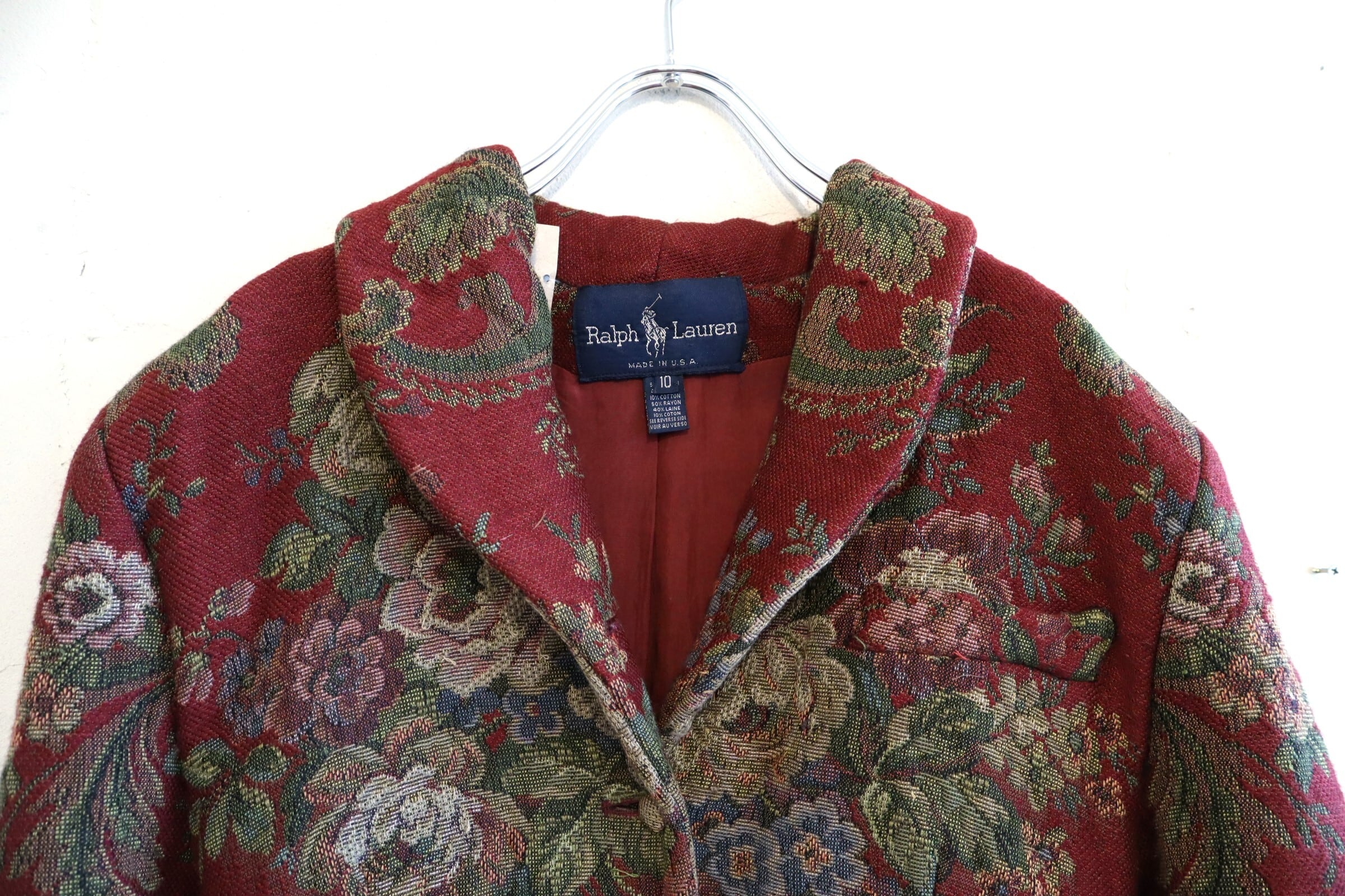 Ralph Lauren dullred×dullgreen flower gobelin jacket [l-4337]