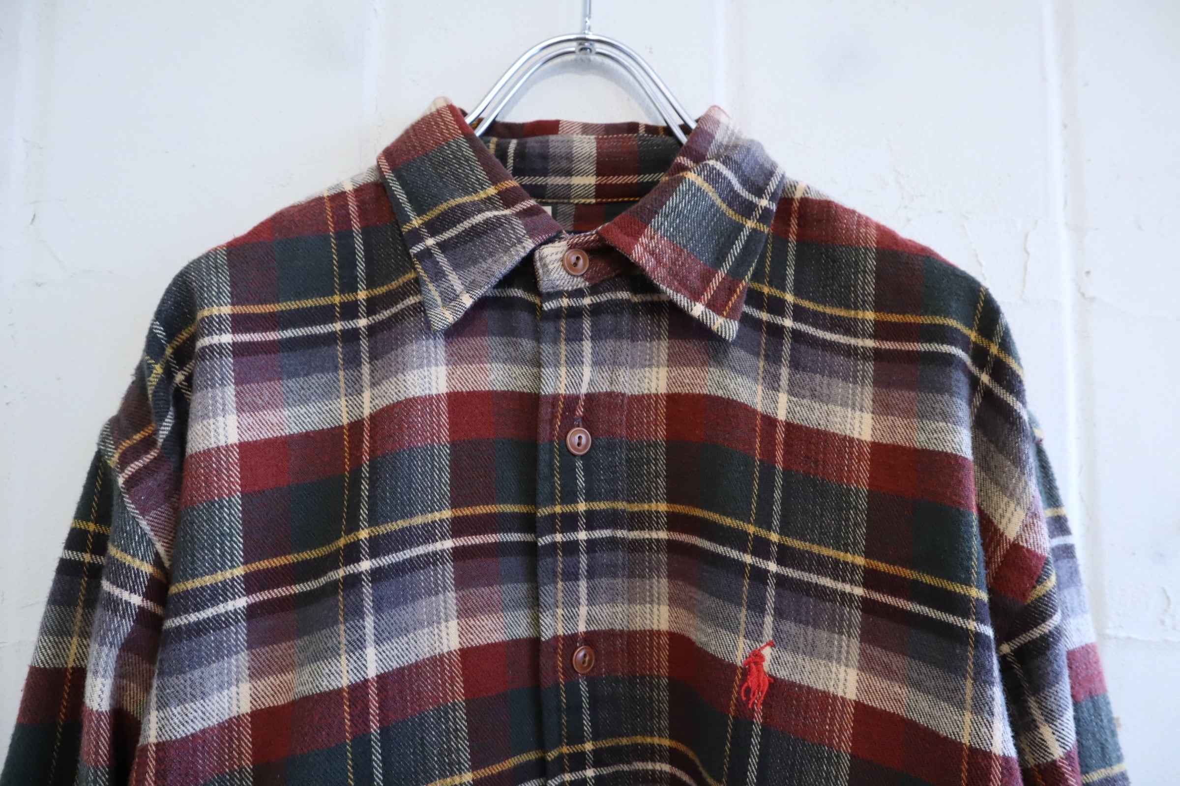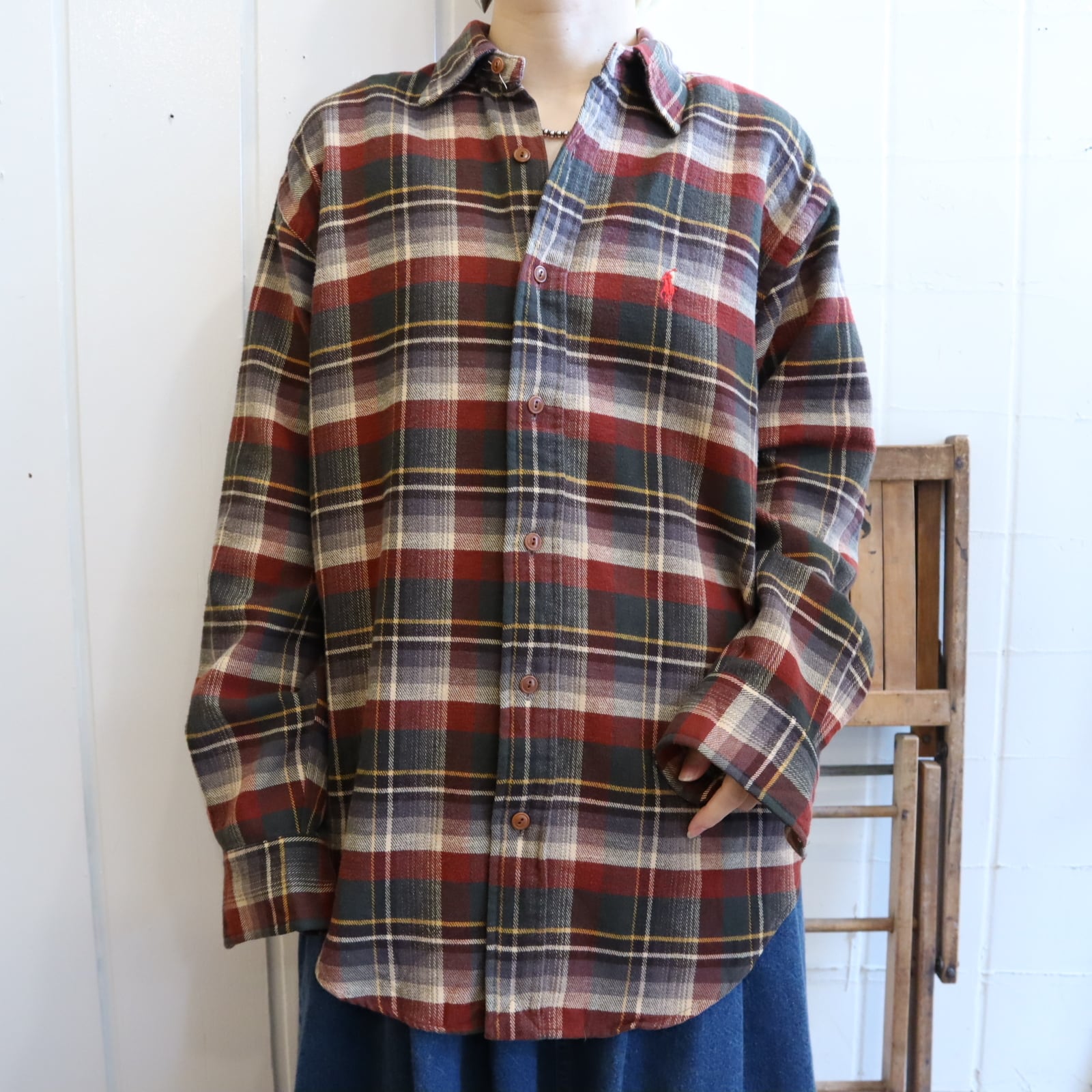 Ralph Lauren dullred×gray plaid shirt [l-4338]