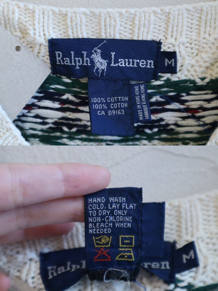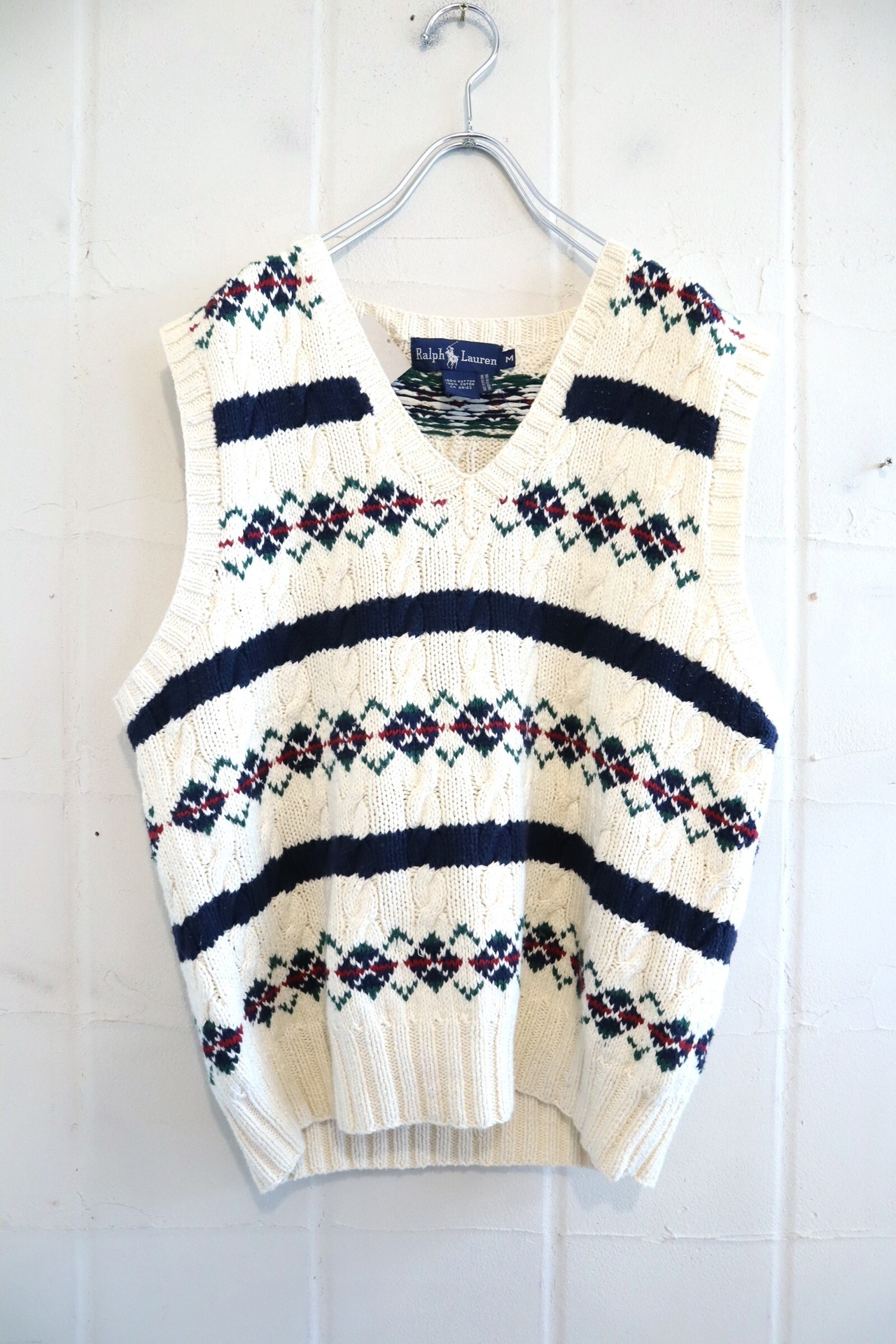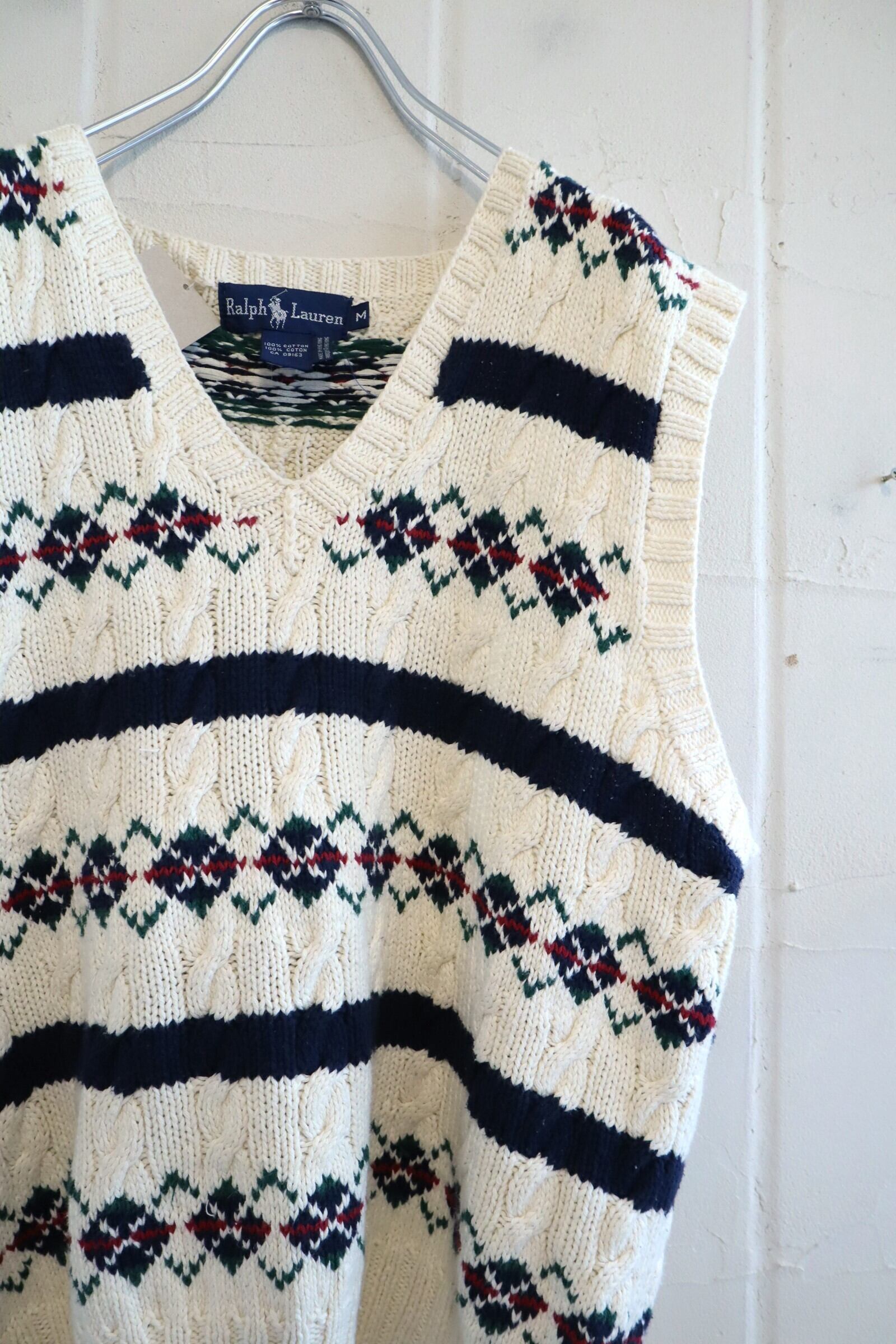 Ralph Lauren white×navy diamond knit vest [l-4339]