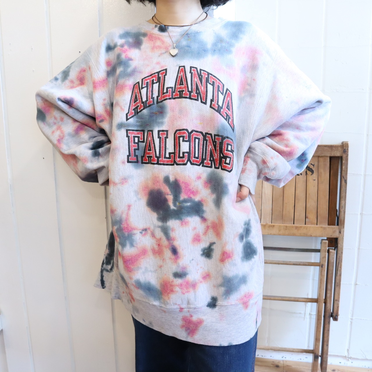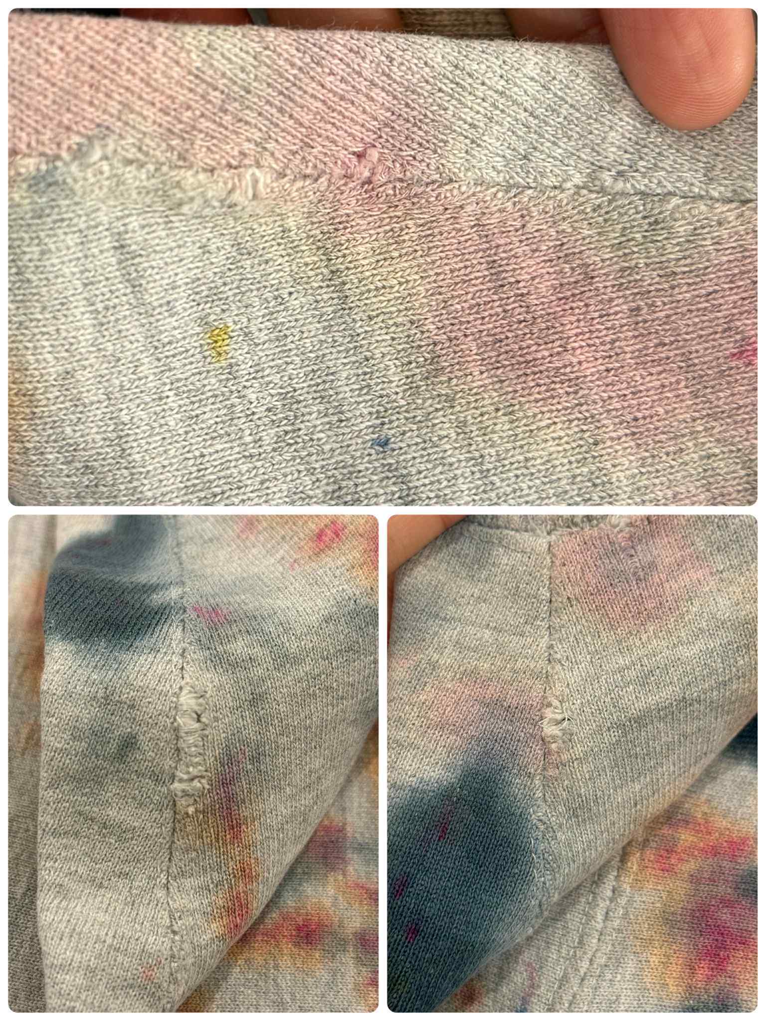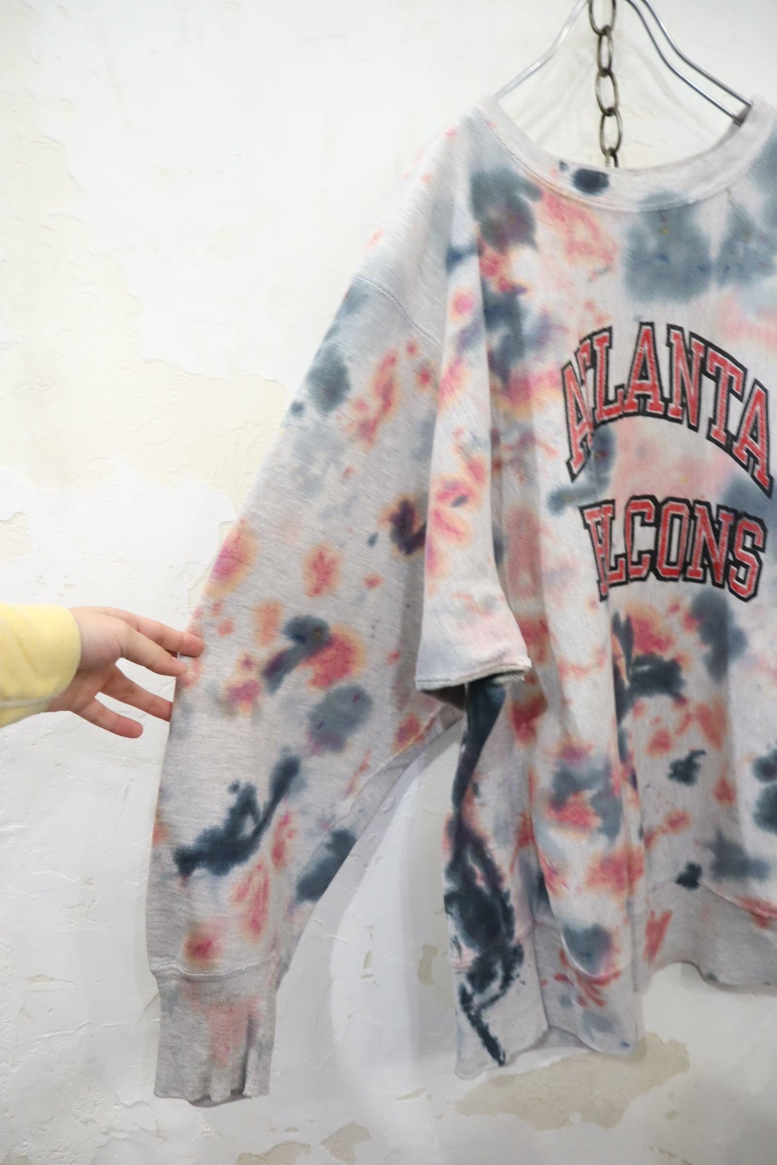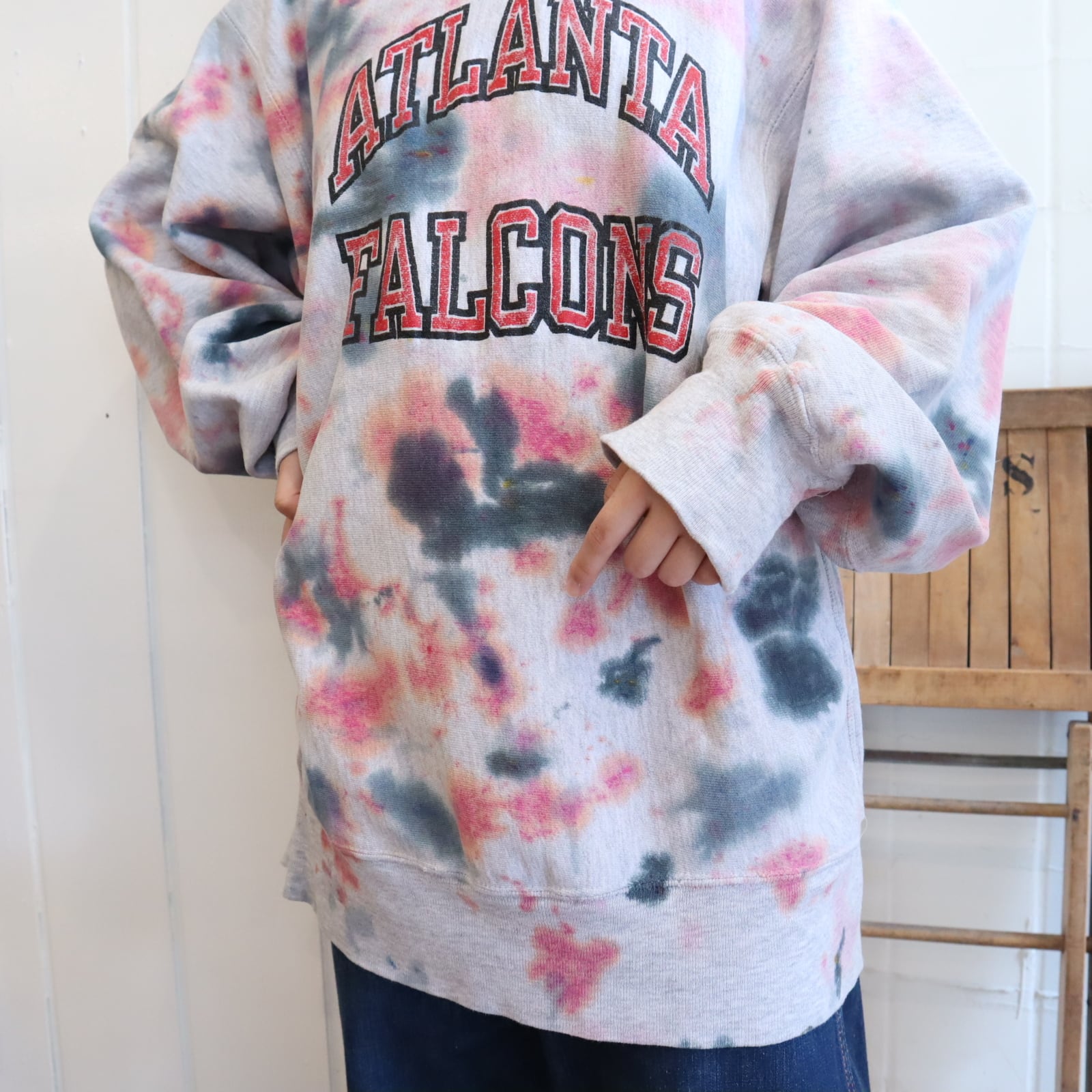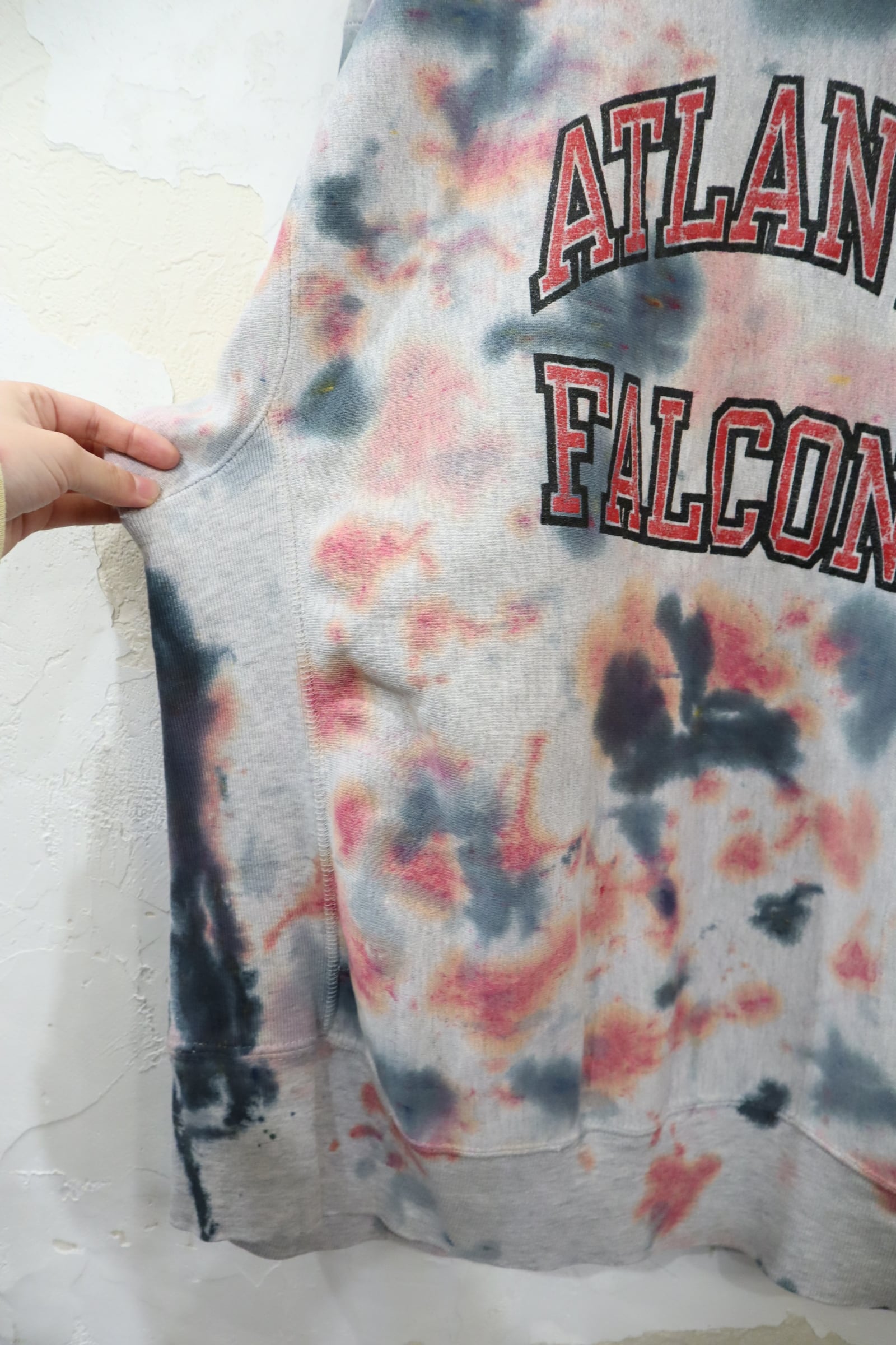 タイダイ柄のように後染めされているリバースウィーブスウェットです。