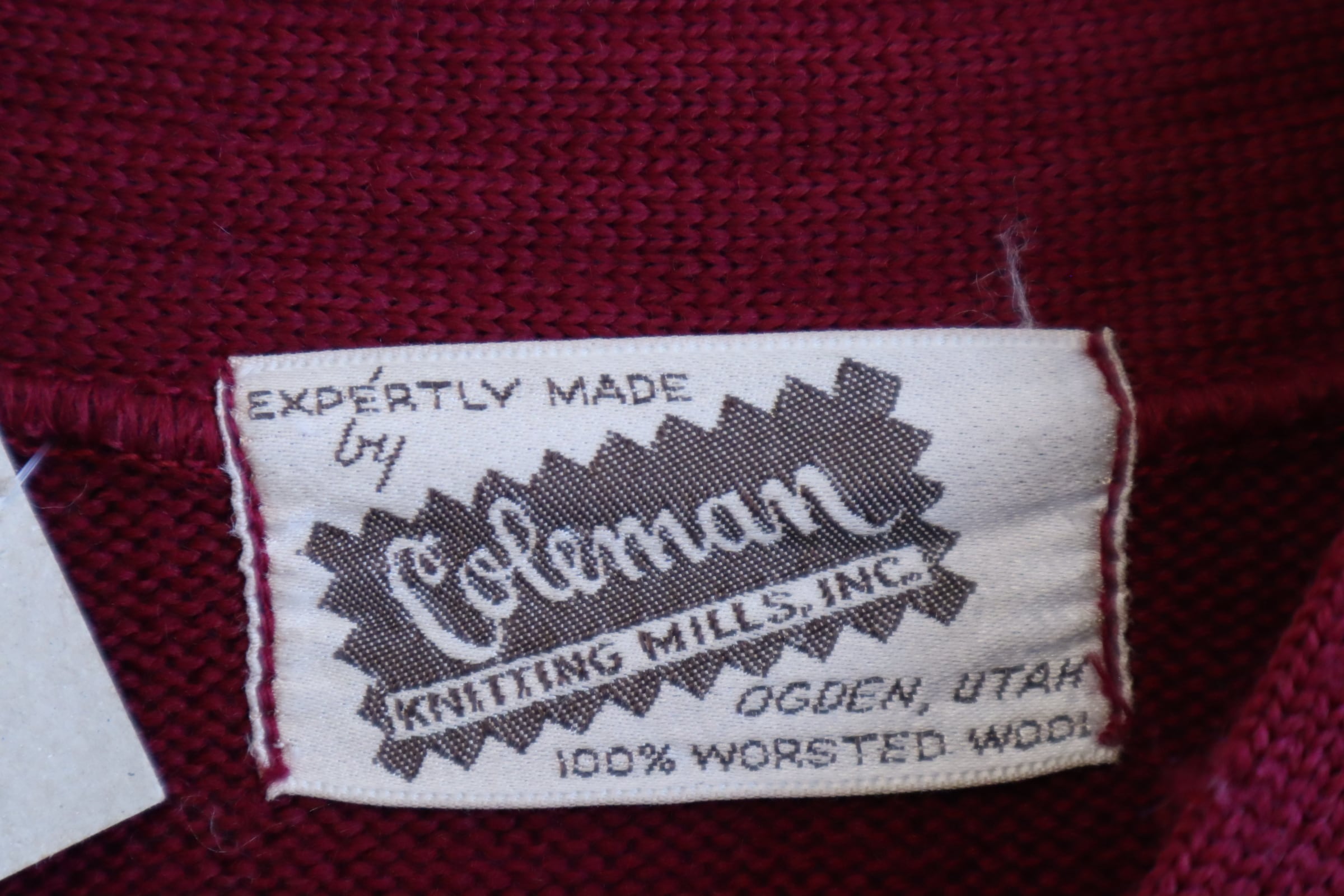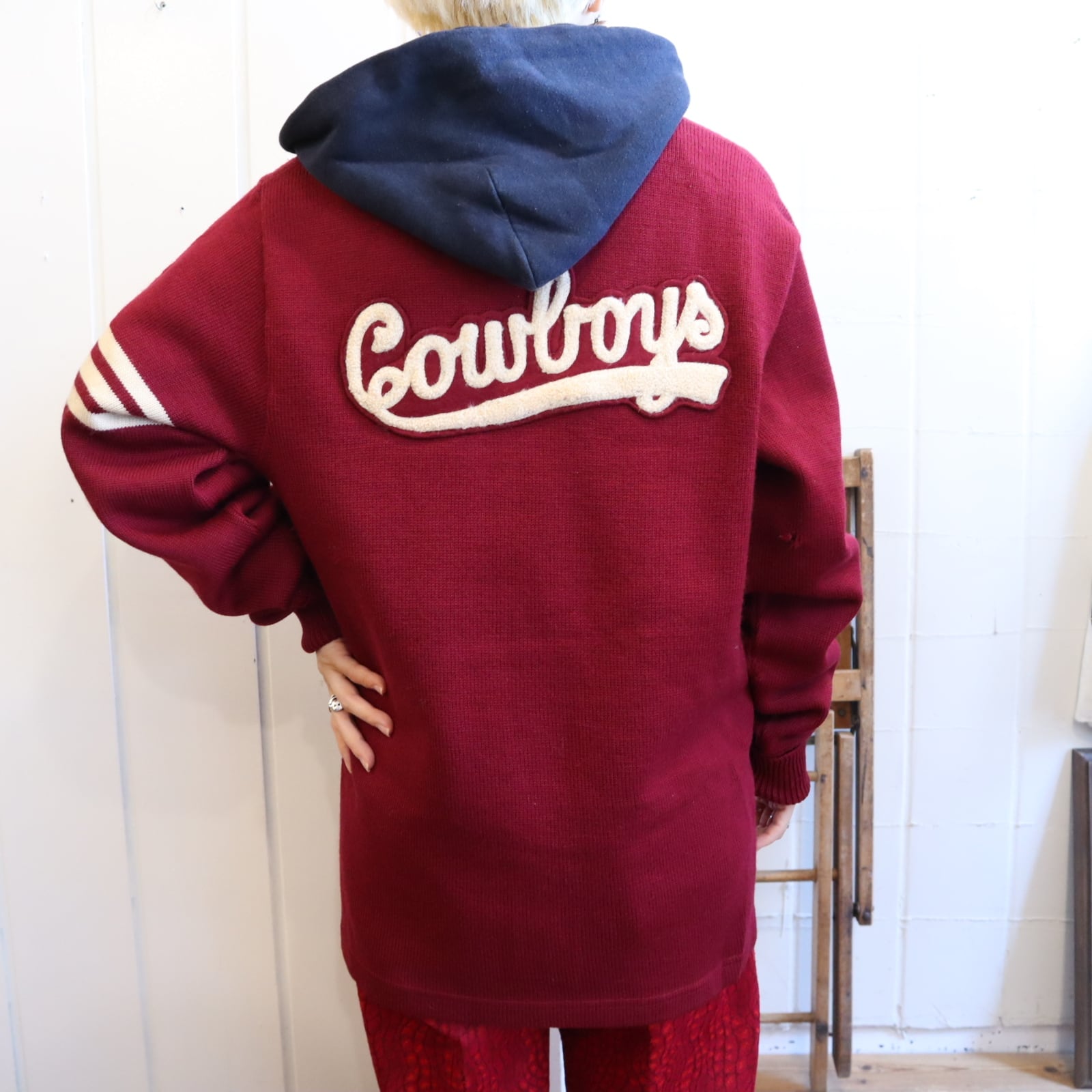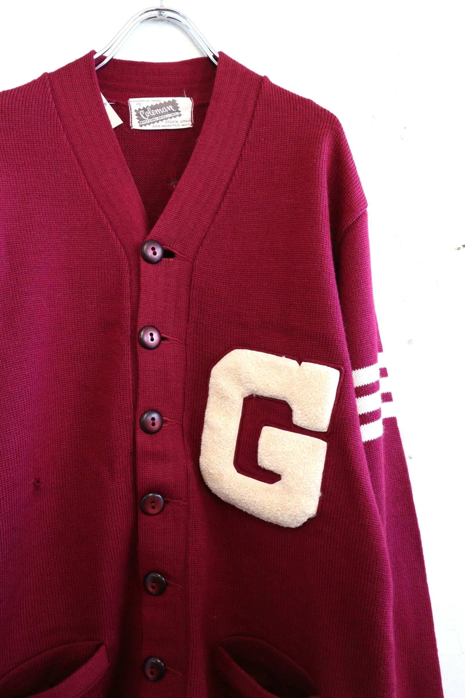60s bordeaux×offwhite lettered wappen knit cardigan [l-4344]