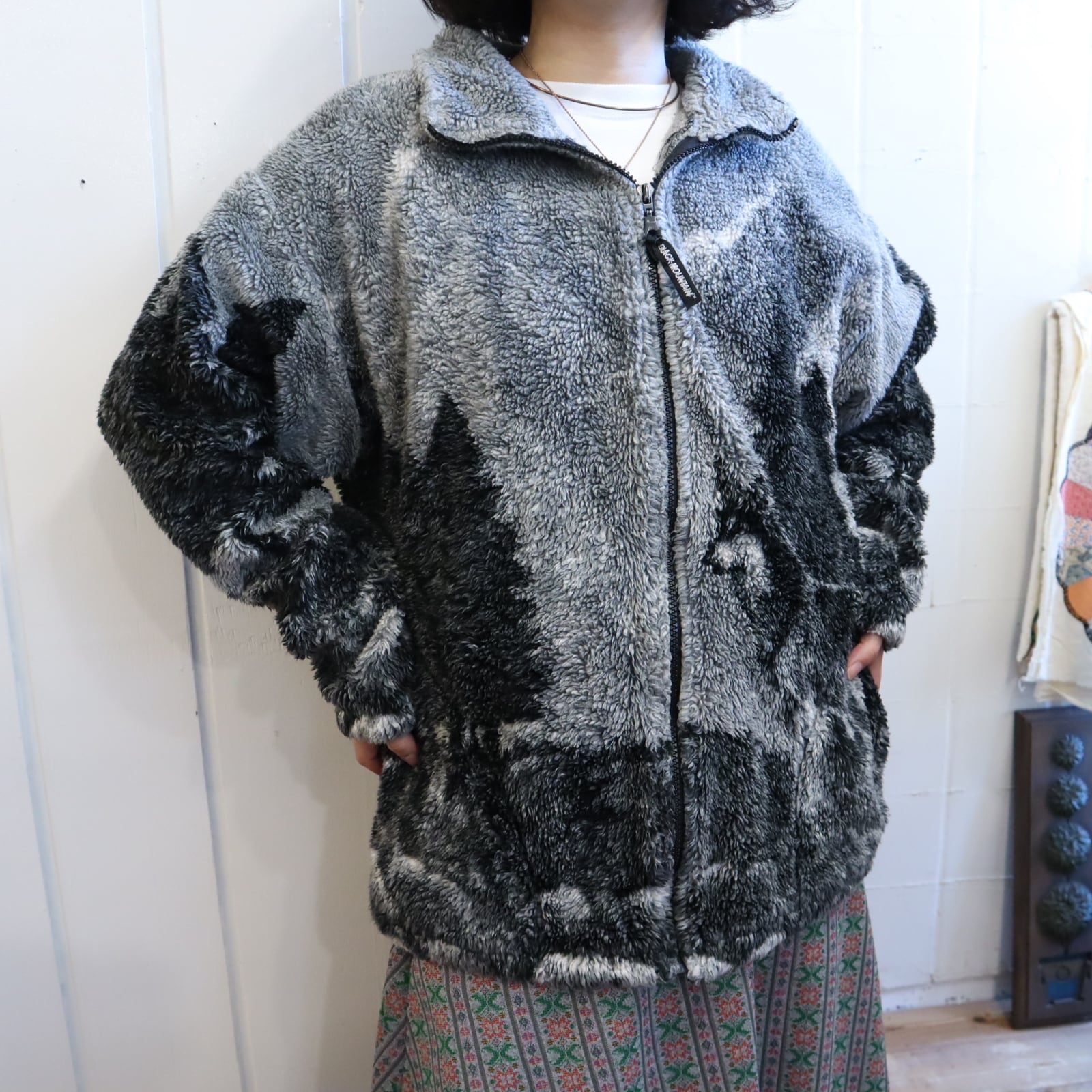 両面の狼デザインに迫力があって可愛いフリースジャケットです。